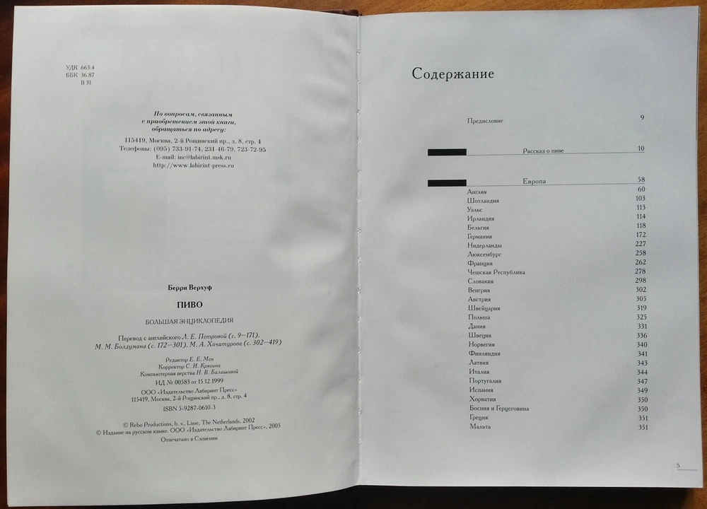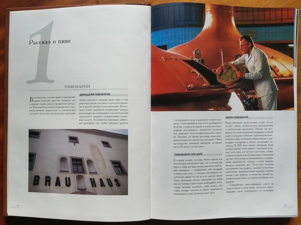 Берри Верхуф. Пиво. Большая энциклопедия. М., Лабиринт Пресс, 2005 г., 448 с. Формат 22 х 30,5 см. Оригинально оформленное подарочное издание с трехсторонним золотым обрезом в кожаном переплете ручной работы. Обложка оформлена имитацией кружки из керамики. Большая энциклопедия "Пиво" - прекрасный справочник и путеводитель по пивоваренным предприятиям всего мира. Это книга для настоящих знатоков, для коллекционеров и любителей пива. Здесь вы найдете: - описания более 1200 разнообразных марок пива; - информацию о прославленных пивных брендах Европы и Америки, а также о менее известных марках из Южной Америки, Японии и других стран; - особый раздел, посвященный пиву России; - секреты пивоварения и подробный рассказ обо всех ингредиентах; - детальное описание процесса производства пива; - характеристики вкуса и аромата различных сортов пива; - рекомендации по выбору типов пива и температур сервировки; - обширный алфавитный указатель; - множество цветных фотографий.