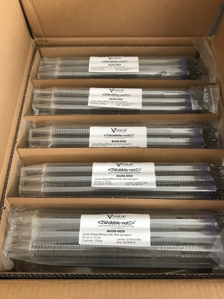 New, case of 100 pipets (10 bags of 10 each bag). Plugged. Purple color code. $5 Maximum Shipping Rate on All Domestic Orders! Use eBay Shopping Cart to combine items from multiple listings. In the case of multiple quantity listings, the pictured item represents the worst condition of available items. Thanks for looking! Visit our store! Biotech Bargains Connecticut Categories Glassware Lab Bench Supplies Lab Equipment Other Plasticware About Us Biotech Bargains specializes in the great prices on new and used laboratory glassware, consumables and equipment. Our inventory is sourced through liquidations and surplus from the biotechnology and pharmaceutical industries. We operate eBay stores out of Bristol, Connecticut (biotechct) and West Sacramento, Calilfornia (biotechca). Thanks for checking us out! _gsrx_vers_1516 (GS 9.3 (1516))