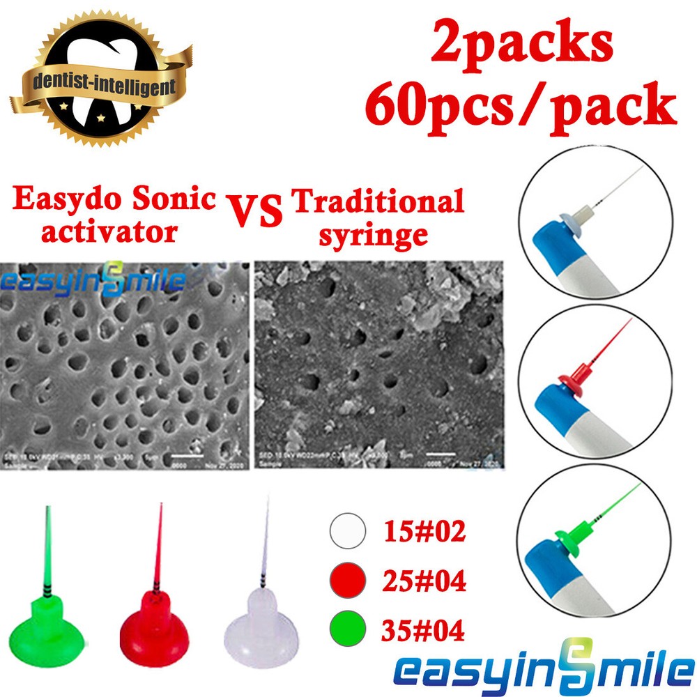Package List: Needle Tips: 2packs,60Pcs/pack Introduction for activitor: 1. Indications For user The Easydo Activator system uses technology of sonic energy for root canal treatment. The driver work with the Hand device, motor and needle tip to provide power for tip oscillation and vibration. Evidence-based endodontics has shown that cavitation and acoustic streaming can improve debridement and the disruption of the smear layer and biofilm. The Activator helps the fluids streaming enter the Pulp Chamber, Root Canal, Lateral canal, Connection of inter-root canal and root apex to ensure deep cleaning and sterilization of root canal. It is beneficial to complete the 3D filling of the root canal and ensures long-term success. Store Home All Items Hot Items Feedback Add to FAVS Contact us STORE CATEGROY Orthodontic Endodontic Handpiece & Equipment Ultrasonic Scaler&Accessories Dental Disposable Dental Medical Lab Clinic Dental Impression&Material Dental Study Model Other HOT SALE EASYINSMILE 1Set Dental Self Ligating Bracket Braces Roth 022 345 Hook with Tool $29.43 EASYINSMILE 10Packs Orthodontic Braces Super Elastic NITI Arch Wires Teeth Wire $15.99 EASYINSMILE 25XDental Mini Orthodontic Metal Bracket Brace Roth 022'' 3-4-5 Hook $78.15 OUR PROMISE Package List: Needle Tips: 2packs,60Pcs/pack Introduction for activitor: 1. Indications For user The Easydo Activator system uses technology of sonic energy for root canal treatment. The driver work with the Hand device, motor and needle tip to provide power for tip oscillation and vibration. Evidence-based endodontics has shown that cavitation and acoustic streaming can improve debridement and the disruption of the smear layer and biofilm. The Activator helps the fluids streaming enter the Pulp Chamber, Root Canal, Lateral canal, Connection of inter-root canal and root apex to ensure deep cleaning and sterilization of root canal. It is beneficial to complete the 3D filling of the root canal and ensures long-term success. 2. Notice 1) Remove the needle tip of EasyDO Activator. If your treatment process is over, please leave it for medical recycling. 2) Please put exhaustively discharged battery into the recycling box. 3 ) Do not submerge the unit in water. 4 ) Do not autoclave the unit. NOTE: The package does not include the endo irrigator in the pictures show. FDA Statement Payment&Return Shipping Feedback FAQ FDA Statement The sale of this item may be subject to regulation by the U.S. Food and Drug Administration and state and local regulatory agencies. If so, do not bid on this item unless you are an authorized purchaser. If the item is subject to FDA regulation, We will verify your status as an authorized purchaser of this item before shipping of the item. COMPANY:Easy Intelligence medical instrument co.,ltd. Manufacturer:EASYINSMILE(USA)INTERNATIONAL CORP. Address:Room1001,Golden Mountain Industrial Park, No. 28 Yinshuang Road, Yuelu District 410000 Changsha China Phone:0086-18373188632 Payment&Return 1.Payment With PayPal, you can pay easily, quickly and securely. Please pay as soon as possible if you like the products, as that will allow us to post your item to you sooner. 2.Return Policy If you receive a defective item which you want to return, please contact us within 2 days from the day you receive the item. All return items must be returned with its original packaging and accessories. If we confirm the damage happened during the shipment, we will bear the shipping cost for return. We will refund the money to you when we get the return items. Or replace the item for you free of charge. Shipping 1.International Shipping to worldwide. 2. The parcel will be posted within 1-2 working days in normal after payment received. 3. The tracking info of your parcel is available. 4. Please be advised that some items aren’t ship-able to P.O.Box because of the size of the package. And please make sure your address matches the Paypal address before you pay. 5. Import duties, taxes, and charges are not included in the item price or shipping charges. These charges are the buyer’s responsibility. 6.USPS, FexEx, UPS for USA warehouse shipping. DHL eCommerce, ePacket, DHL express, China Post, EMS, YANWEN Express for China warehouse. 7. Please contact us first, if you need fast/special shipping methods. 8. 2-5 days for USA shipping. If you didn’t receive the item within 2 weeks, please contact us. We’ll check it for you. 9.About 15-28 days in generally for International shipping. Please check the shipping information online or leave us a message, if you didn’t receive the parcel within 28 days. We’ll check it for you. 10. We have local warehouse in the USA, AU, and UK, you can go to your local website to purchase. Then we'll ship for you from the local warehouse, if they are in stock for local warehouse. Feedback 1. We always go for 100% customer satisfaction. Positive feedback means a lot to us. Please leave me FIVE STAR POSITIVE feedback if you are satisfied with our items. 2. Lease CONTACT me immediately if you have any problem, we will reply to you as soon as possible. 3. We will appreciate it if you please email us before leaving negative feedback. If there is a problem, we will try our best to resolve any problem for you until you are satisfied. FAQ Q: I’m in the US. When does the parcel come? A: About 2-5 days in generally. You can contact us to check the shipping information if you didn’t get it in 2 weeks. (Sometimes will deliver in the mailbox ) Q: I’m an international buyer. How long does the parcel reach my address? A: About 15-28 days in generally. You can leave us a message where you are, we can check it for you. Q: Do you ship the parcel with a tracking number? A: We always ship the items with a tracking number and you can check the shipping information online. Q: Why does the parcel return back to the sender? A: Sometimes the parcel was in the local post office for a long time and unable to delivery, or unclaimed, or an ambig