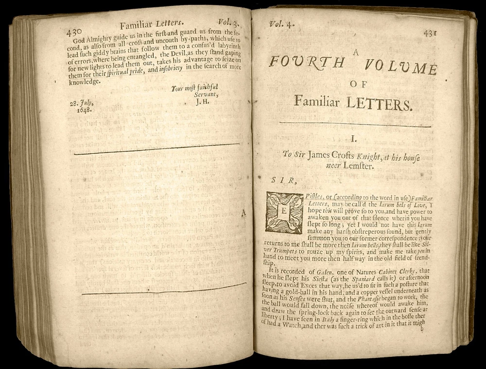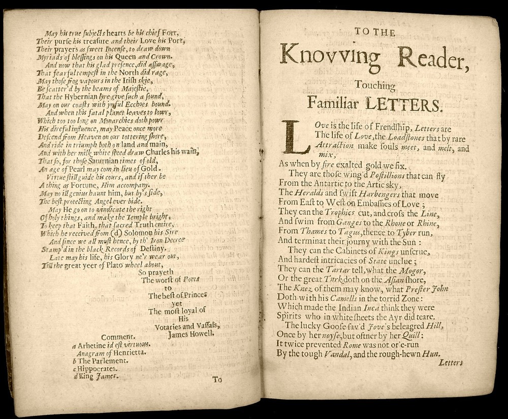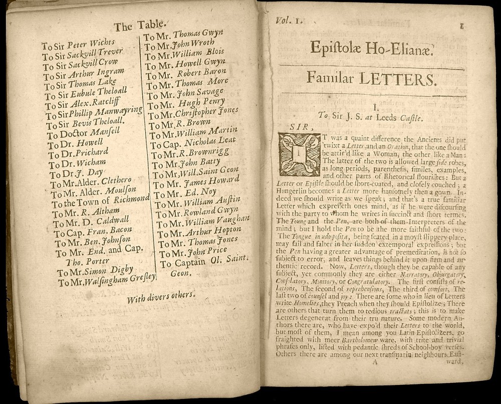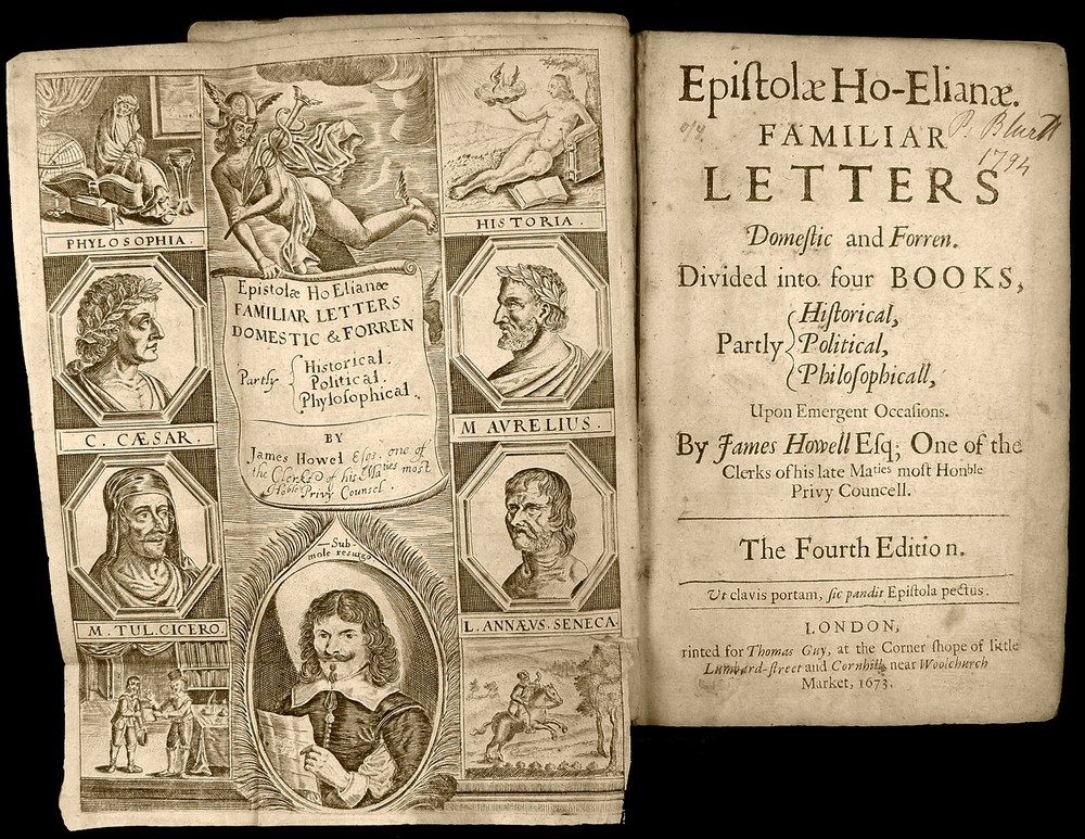 16th - 19th Century Fine and Rare Books, Maps, Manuscripts, and Atlases James Howell (Howel) (1594-1666) Epistolæ Ho-Elianæ Familiar Letters Domestic and Forren Divided Into Four Books Partly Historical, Political, Philosophicall Upon Emergent Occasions by James Howell Esq; One of the Clerks of His Late Maties Most Honble Privy Councell London 1673 James Howell ( Howel ) - (1594-1666) Epistolæ Ho-Elianæ. Familiar Letters Domestic and Forren. Divided Into Four Books, Partly Historical, Political, Philosophicall, Upon Emergent Occasions. by James Howell Esq; One of the Clerks of His Late Maties Most Honble Privy Councell Printed for Thomas Guy, at the corner shope of little Lumbard-street and Cornhill, near Woolchurch Market, 1673. Includes folded fullpage Illustrated Engraved Frontispiece displaying woodcut portraits of King Charles I, Phylosophia, Historia, Julius Caesar, Marcus Aurelius, Marcus Tullius Cicero, Lucius Annaeus Seneca, and others. The words "Historical, Political, Philosophicall," are gathered by a left brace on title page. Contemporary calf binding with professionally restored raised banded spine. It has been collated and is complete with its leaves clean and crisp - [16], 510, [26] pages - 8vo. Early Manuscript Signature Inscriptions on front endpaper of "Benjamin Bulgin 1699" and "Fra: Bluett". Howell's letters were largely written to imaginary correspondents while he was imprisoned in the Fleet, 1643-51, as a Royalist or as an insolvent debtor is not entirely clear. It is the work upon which his reputation rests and may "be credited with an immediate literary influence in making the penning of fictitious correspondence a fashionable art. (DNB) Howell is one of the earliest Englishmen who made a livelihood out of literature, but it is in his Epistolae, that his literary power is displayed at its best. Philosophic reflection, political, social, and domestic anecdote, scientific speculation, are all intermingled with attractive ease in the correspondence which he professes to have addressed to men of all ranks and degrees of intimacy. (Idem) The letters include discussion of language, religion, wine, tobacco, witchcraft, and Sir Walter Raleigh and his expedition to Guiana. PAYMENT - CREDIT CARDS DISCOVER - MASTERCARD - VISA - AMERICAN EXPRESS SHIPPING - USPS / FEDEX