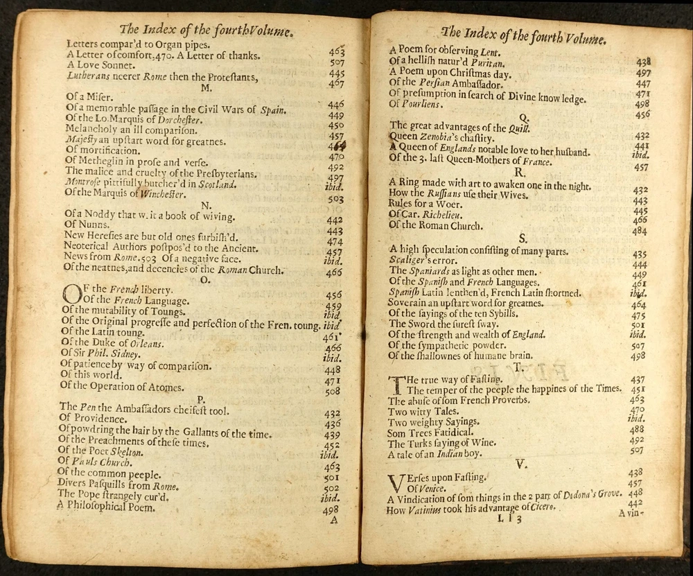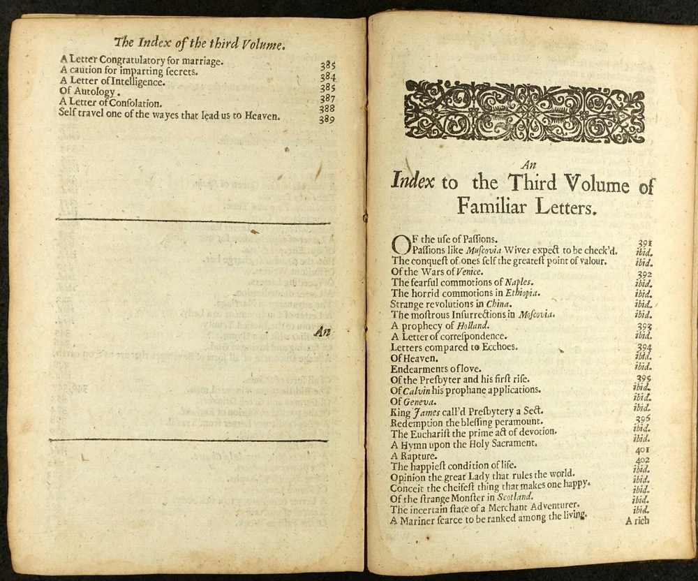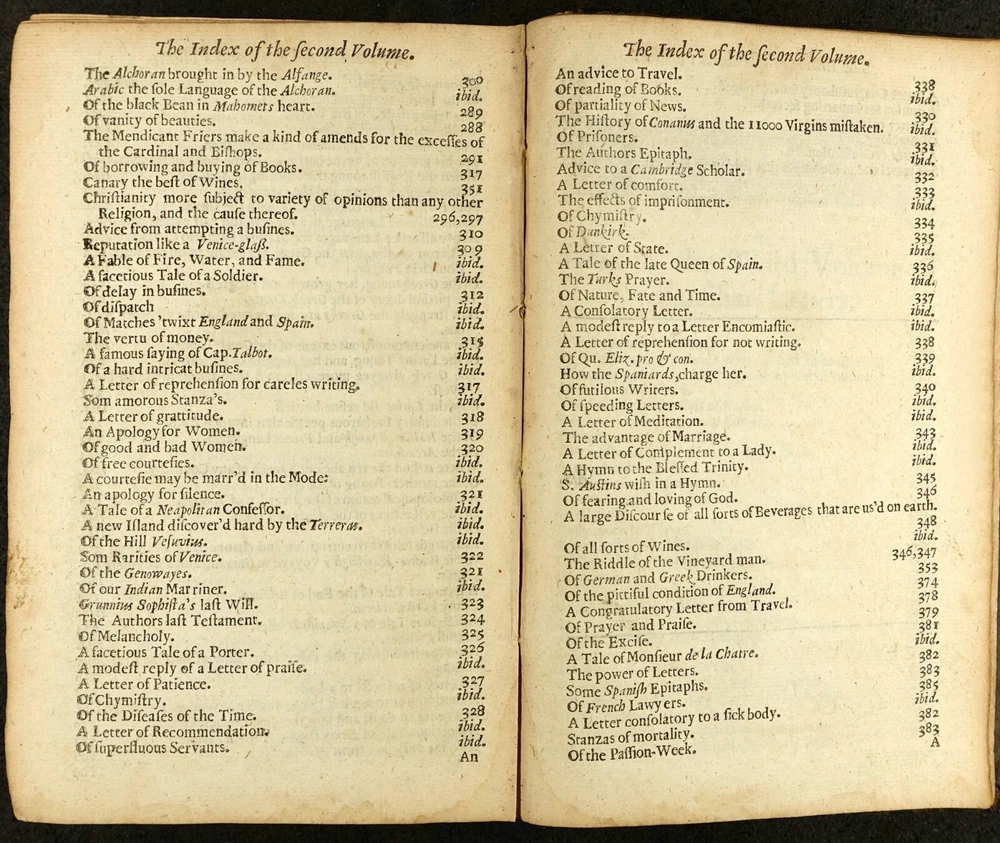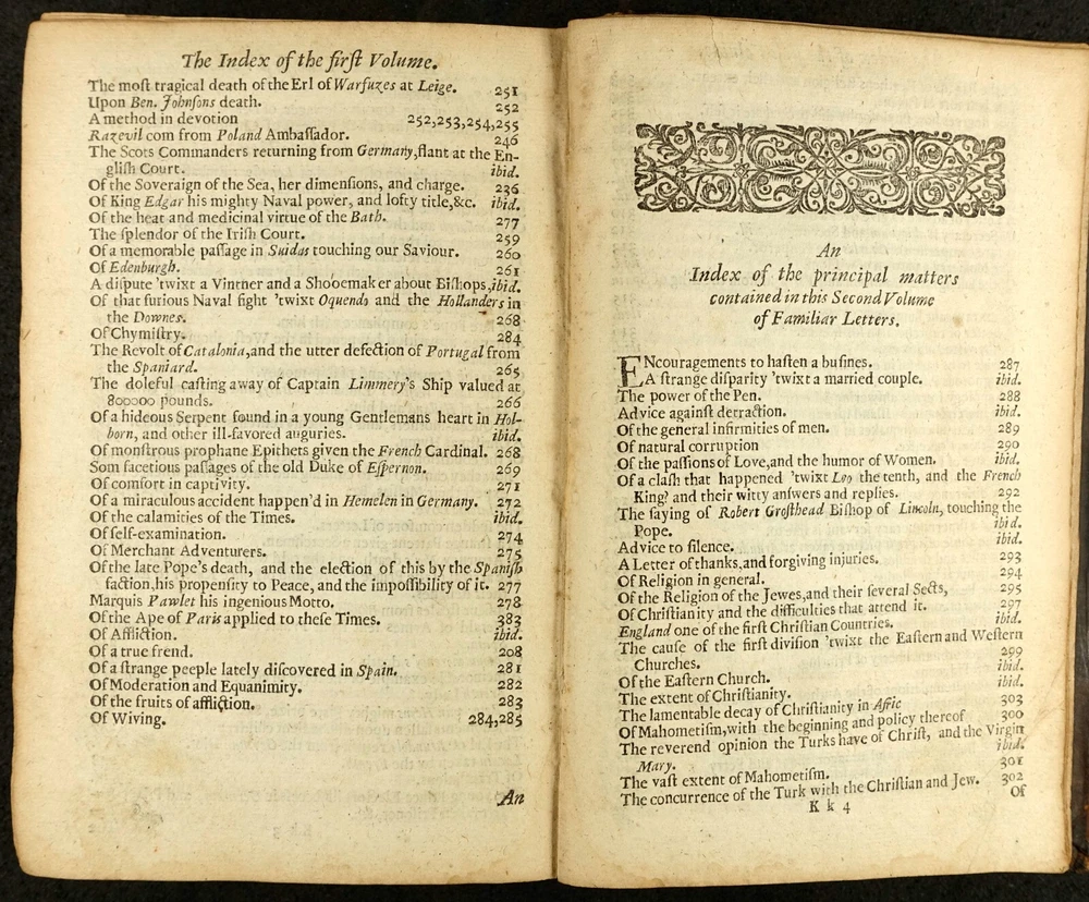16th - 19th Century Fine and Rare Books, Maps, Manuscripts, and Atlases James Howell (Howel) (1594-1666) Epistolæ Ho-Elianæ Familiar Letters Domestic and Forren Divided Into Four Books Partly Historical, Political, Philosophicall Upon Emergent Occasions by James Howell Esq; One of the Clerks of His Late Maties Most Honble Privy Councell London 1673 James Howell ( Howel ) - (1594-1666) Epistolæ Ho-Elianæ. Familiar Letters Domestic and Forren. Divided Into Four Books, Partly Historical, Political, Philosophicall, Upon Emergent Occasions. by James Howell Esq; One of the Clerks of His Late Maties Most Honble Privy Councell Printed for Thomas Guy, at the corner shope of little Lumbard-street and Cornhill, near Woolchurch Market, 1673. Includes folded fullpage Illustrated Engraved Frontispiece displaying woodcut portraits of King Charles I, Phylosophia, Historia, Julius Caesar, Marcus Aurelius, Marcus Tullius Cicero, Lucius Annaeus Seneca, and others. The words "Historical, Political, Philosophicall," are gathered by a left brace on title page. Contemporary calf binding with professionally restored raised banded spine. It has been collated and is complete with its leaves clean and crisp - [16], 510, [26] pages - 8vo. Early Manuscript Signature Inscriptions on front endpaper of "Benjamin Bulgin 1699" and "Fra: Bluett". Howell's letters were largely written to imaginary correspondents while he was imprisoned in the Fleet, 1643-51, as a Royalist or as an insolvent debtor is not entirely clear. It is the work upon which his reputation rests and may "be credited with an immediate literary influence in making the penning of fictitious correspondence a fashionable art. (DNB) Howell is one of the earliest Englishmen who made a livelihood out of literature, but it is in his Epistolae, that his literary power is displayed at its best. Philosophic reflection, political, social, and domestic anecdote, scientific speculation, are all intermingled with attractive ease in the correspondence which he professes to have addressed to men of all ranks and degrees of intimacy. (Idem) The letters include discussion of language, religion, wine, tobacco, witchcraft, and Sir Walter Raleigh and his expedition to Guiana. PAYMENT - CREDIT CARDS DISCOVER - MASTERCARD - VISA - AMERICAN EXPRESS SHIPPING - USPS / FEDEX