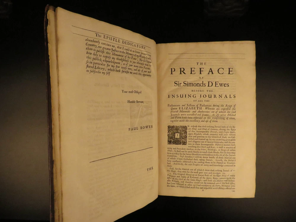 1682 1 ed Journal of British Parliament Queen Elizabeth I England d’Ewes Politics The most valuable source on the British Parliament during the reign of Elizabeth I! Simonds d’Ewes was a 17 th -century English politician who served as a member of Parliament. He was an important historian who is best known for his account of the British parliament and politics in the 16 th -century. This work was a collection of journal entries and anecdotes which were first published in 1682, decades after d’Ewes death. The DNB notes of this book: “a great and very valuable work” Item number: #9543 Price: $950 D’EWES, Simonds The journals of all the parliaments during the reign of Queen Elizabeth, both of the House of Lords and House of Commons London: Printed for John Starkey, 1682. First edition. Details : · Collation: Complete with all pages o [12], 689, [19] · References: Wing D 1250; Arber's Term cat, I 486; ESTC R 303; · Language: English · Binding: Leather; tight & secure · Size : ~14.25in X 9.5in (36cm x 24cm) Our Guarantee: Very Fast. Very Safe. Free Shipping Worldwide. Customer satisfaction is our priority! Notify us with 7 days of receiving, and we will offer a full refund without reservation! 9543