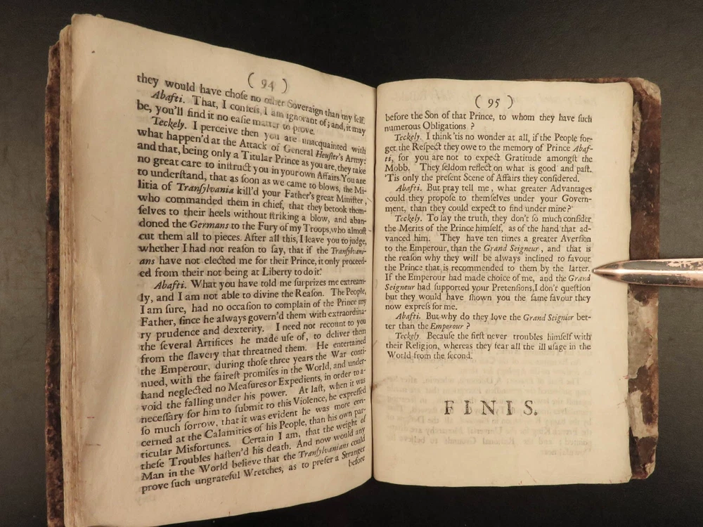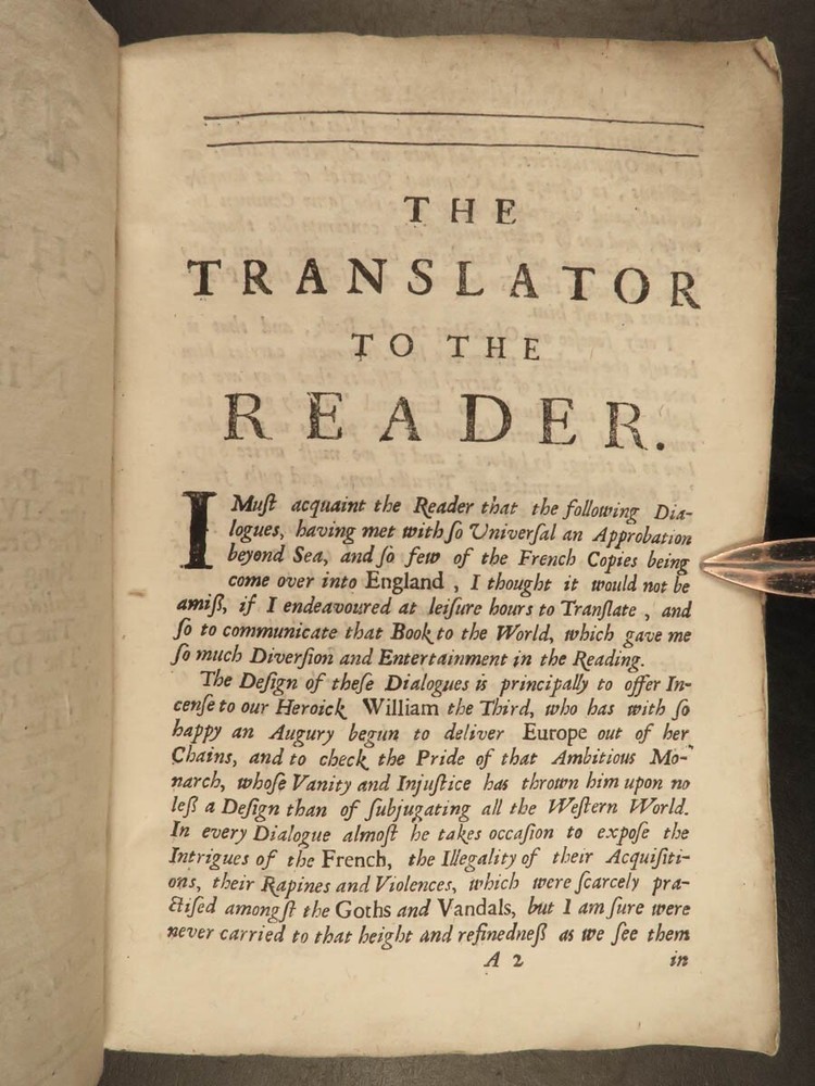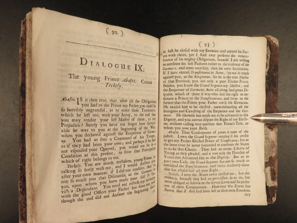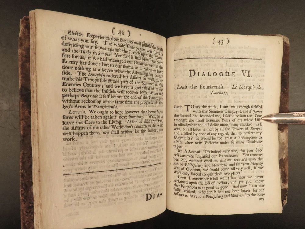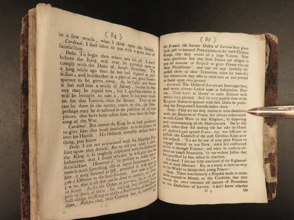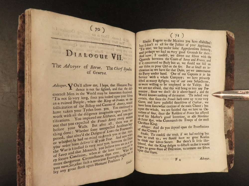 1691 ENGLISH 1 ed Present State of Christendom Louis XIV Alexander Duke Tuscany ‘ The Present State of Christendom’ is a collection of nine dialogues between notable figures of 17 th -century Europe including Pope Alexander VIII, King Louix XIV, dukes of Savoy and Tuscany, the Duke of Lorrain, Cardinal Pietro Ottoboni, Prince Abasti, and others. Each of these works of correspondence discuss the effects of Protestant and Catholic theology on politics, royal crowns, and on churches themselves. Item number: #22214 Price: $599 various The present state of Christendom consider'd : in nine dialogues London : Printed for R. Baldwin ..., 1691. First edition. Details : · Collation: Complete with all pages o [4], 95, [1] · Language: English · Binding: Leather; tight and secure · Size : ~6in X 4.25in (15cm x 10.5cm) Our Guarantee: Very Fast. Very Safe. Free Shipping Worldwide. Customer satisfaction is our priority! Notify us with 7 days of receiving, and we will offer a full refund without reservation! 22214