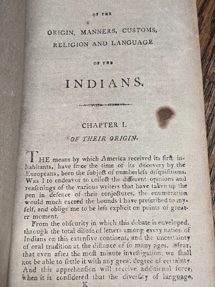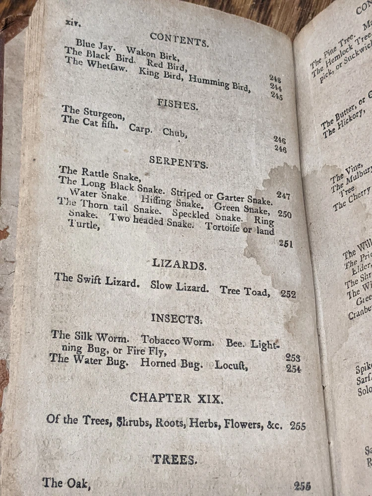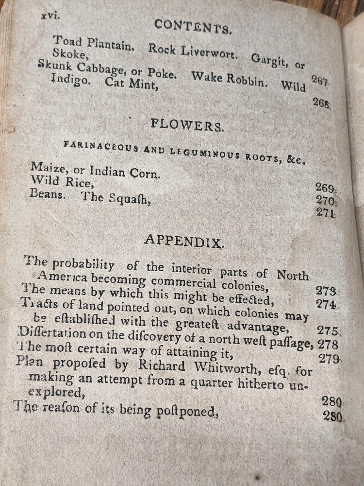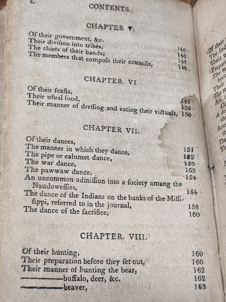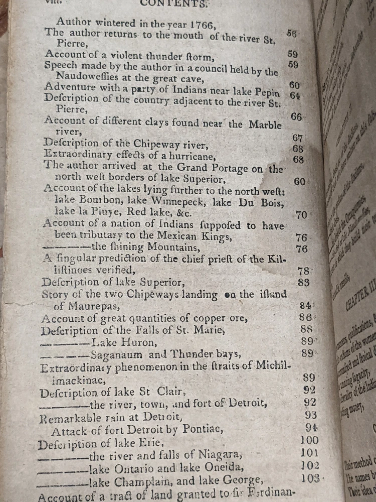 Great antique book "Three Years' Travels Through the Interior Parts of North-America, for More than Five Thousand Miles"; Containing an Account of the Great Lakes, and all the Lakes, Islands, and Rivers, Cataracts, Mountains, Minerals, Soil and Vegetable Productions of the North-West Regions of that Vast Continent; with a Description of the Birds, Beasts, Reptiles, Insects and Fishes Peculiar to the Country. Together with a Concise History of the Genius, Manners, and Customs of the Indians Inhabiting the Lands that Lie Adjacent to the Heads and to the Westward of the Great River Mississippi; and an Appendix, Describing the Uncultivated Parts of America that are the most Proper for Forming Settlements. By Capt. Jonathan Carver, of the Provincial Troops in America. Walpole, N.H. Published by Isaiah Thomas & Co. 1813. Original full leather covered boards. xvi, 280 pp. Measures 6 3/4" x 4 1/4". Rare book. Long out-of-print. Carver penetrated the interior of North America describing insights into the geography, flora, fauna, and Indian customs. He explored the Northwest, Green Bay, Great Lakes, Up the Mississippi River, Northern Minnesota, and back. He traveled for 2 years and 5 months, covering 5,000+ miles. The first part of the book covers his journal and his travels and the second part covers the indigenous people he met, their manners, customs, religion, language, methods of war, hunting, prisoners, etc. Absolutely fabulous accounts. Book is in good condition. Pages display moderate tanning, stain on lower part of about 15 pages. Dark foxing spot on pp. 109-115. Lower corner of pp. 21-22 chipped with loss of a couple words. Otherwise page are generally clean. No musty or loose pages. Chipping on endpaper edges. Corners and spine tips of binding are worn. Rubbing on main boards. Hinges are cracked on inside. Smoke-free home.