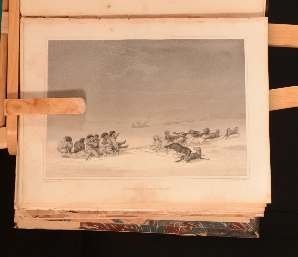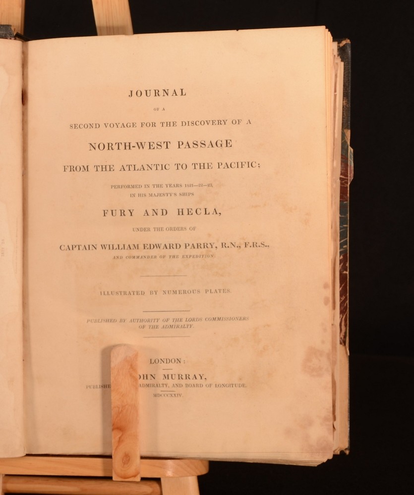 Click here to see our other books! Journal of a Second Voyage for the Discovery of a North-West Passage William Edward Parry 1824 John Murray : London 11.5" by 8.5" [9], ii-xxx, [4], 2-571, [1], [4]pp SUMMARY The first edition of this important travel work regarding Parry's second expedition through Hudson Strait into Hudson Bay. This copy belonged to Parry's daughter, Katharine. First Edition,Illustrated,Leather Binding Overall Condition: Good Only This book weighs 3 KG when packed UK Postage: £ 3.99 US Postage: £ 36.99 EU Postage : £ 25.99 European Postage: £ 27.99 Asia Postage: £ 47.99 Worldwide Postage: £ 69.99 DESCRIPTION With the inscription 'Katharine Brodie Hoare from W H Stene 1885'. Brodie Hoare was Katharine Parry's married name. The bookplate of her husband, Edward Brodie Hoare, is to the front pastedown. Brodie Hoare was a banker and Conservative Party politician. He was a director of Lloyds Bank and a chairman of the Colonial Bank. This work largely forms an ethnographical work, and looks at the indigenous people in the Arctic. He speaks of the 'Eskimos', their culture and way of life, with many illustrations demonstrating this. This is Parry's second expedition of discovery, whereby he sought to discover a North-West passage from the Atlantic to the Pacific. He commanded HMS Fury and was accompanied by HMS Hecla which was under the command of George Francis Lyon. The mission was to find a passage near the northwest end of Hudson Bay. Parry navigated the ice of the Hudson Strait to the Frozen Strait which found him at Repulse Bay which he found land-locked. from there he mapped the coast of the Melville Peninsula and came to the southeast corner of Winter Island. This work is told in chronological order. To the start there is an explanation of technical terms and the official expedition instructions. With publisher's adverts to the rear. With twenty-nine plates (including four folding) and nine maps (four folding). Plates at page 267, 271, 275, 295, 419, 437, 499, 531, 549, 551, are detached but present. Collated, lacking one plate. A first edition copy of this work, with an important association. CONDITION In a half morocco binding with paper covered boards. Externally, worn with lifting to the paper covered boards. Leather is lifting to the rear board. Front hinge is strained but firm. Bookplate to the front pastedown, Edward Brodie Hoare. Inscription to the recto of front endpaper. Rear hinge has failed with the textblock detached from binding. Internally, Plates at page 267, 271, 275, 295, 419, 437, 499, 531, 549, 551, are detached but present. Pages are generally bright. Heavy damp staining to the extremities of 'Takkeelikkeeta', 'Groupe of Eskimaux', 'Nakahu and his wife', 'Eskimaux Building a Snow-Hut', 'Eskimaux Killing Deer in a Lake', and 'Eskimaus Children Dancing' plates. Damp staining to the extremities of most pages, heavier to the rear of the work, particularly the adverts. Chips to the extremities of 'Groupe of Eskimaux' plate. Loss to the 'Esimaux Implements weapons &c' plate, affecting the image. Occasional scattered spots to pages. Overall Condition: Good Only GLOSSARY OF TERMS Overall Condition (Dustwrapper condition rating is shown after that for the book itself, where a dustwrapper is present) Fine - Very well preserved copy showing very little wear Very Good Indeed - Only one or two minor faults, really a very attractive copy Very Good - Quite a wide term meaning no major faults but probably several smaller ones often expected given the age of the book, but still a respectable copy Good - Meaning not very good. Some more serious faults as will be described in the condition report under 'condition' Good Only - Meaning one or more faults that could really do with repair Fair - As with good only above but with other faults leaving a compromised copy even after repair Poor - Really bad and possibly seriously incomplete. We only sell books in this condition where their rarity or value makes them attractive none the less. Major defects will be described. GUARANTEE We offer a full money back guarantee on our descriptions. Please ask for details and conditions. We prefer PAYPAL. If you pay via PAYPAL we will post the item off the same or the next working day with the postage you have selected. Please note we cannot accept USD cheques