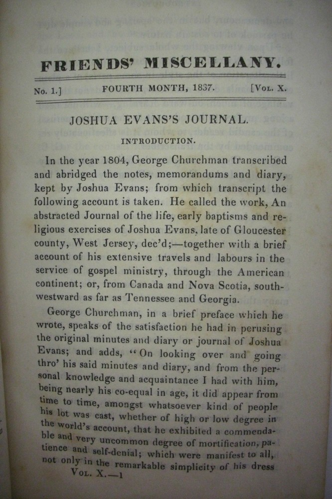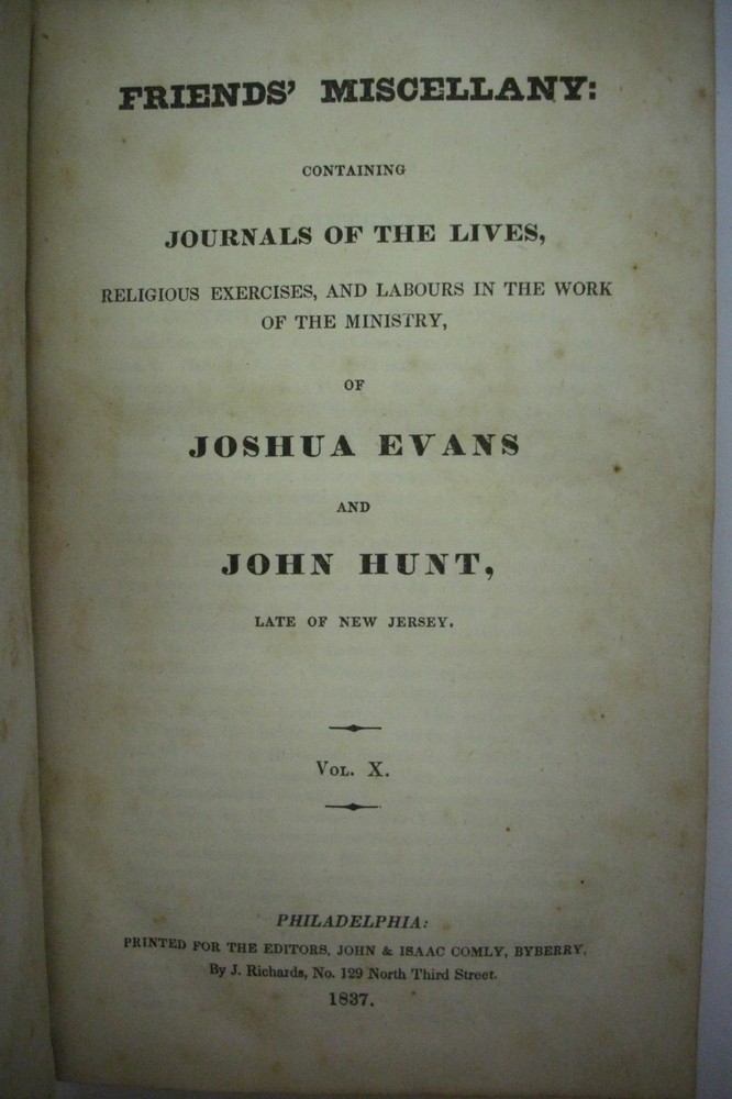 You are bidding on a rare antique hardcover book titled Friends' Miscellany: Containing Journals of the Lives, Religious Exercises, and Labours in the Work of the Ministry, of Joshua Evans and John Hunt, Late of New Jersey. This is Volume X. The book was printed in Philadelphia for the Editors, John & Isaac Comly, Byberry, by J. Richards, 1837. This is a very scarce book! I conducted a search and could not find another book like this one. From Wikipedia: Quakers, or Friends, are members of a family of religious movements collectively known as the Religious Society of Friends. Friends' central doctrine is the priesthood of all believers, a doctrine derived from a verse in the New Testament, 1 Peter 2:9. Most Quakers view themselves as a Christian denomination. They include those with evangelical, holiness, liberal, and traditional conservative Quaker understandings of Christianity. Today, around 89% of Friends worldwide practice programmed worship—that is, worship with singing and a prepared message from the Bible, often coordinated by a pastor. Around 11% of Friends practice waiting worship (also known as unprogrammed worship)—that is worship where the order of service is not planned in advance, which is predominantly silent, and which may include unprepared vocal ministry from anyone present, so long as it is credible to those assembled that the speaker is moved to speak by God. Some meetings of both styles have Recorded Ministers in their meetings - these are Friends who have been recognised for their gift of vocal ministry. The first Quakers, known as the Valiant Sixty, lived in mid-17th century England. The movement arose from the Legatine-Arians and other dissenting Protestant groups, breaking away from the established Church of England. These Quakers attempted to convert others to their understanding of Christianity, travelling both throughout Great Britain and overseas, preaching the gospel of Jesus Christ. Some of the early Quaker ministers were women. They based their message on the religious belief that "Christ has come to teach his people himself," stressing the importance of a direct relationship with God through Jesus Christ, and a direct religious belief in the universal priesthood of all believers. They emphasized a personal and direct religious experience of Christ, acquired through both direct religious experience and the reading and studying of the Bible. Quakers focused their private life on developing behavior and speech reflecting emotional purity and the light of God. In the past, Quakers were known for their use of thou as an ordinary pronoun, refusal to participate in war, plain dress, refusal to swear oaths, opposition to slavery, and teetotalism – the opposition to alcohol. Some Quakers have founded banks and financial institutions including Barclays, Lloyds, and Friends Provident; manufacturing companies including Clarks, Cadbury, Rowntree, and Fry's; and philanthropic efforts, including abolition, prison reform, and social justice projects. Book is bound in full leather binding. Titling is in gold on a leather label on spine. Leather has wear and some tears with some missing at top area of spine. Covers remain fairly well attached. All pages are tightly bound with some light scattered foxing. Foxing/toning to endpages. No writing in book and no signs of previous ownership. Quite a rare book! Would make a super addition to a collection. Great gift idea! (Inventory: 490) Track Page Views With Auctiva's FREE Counter