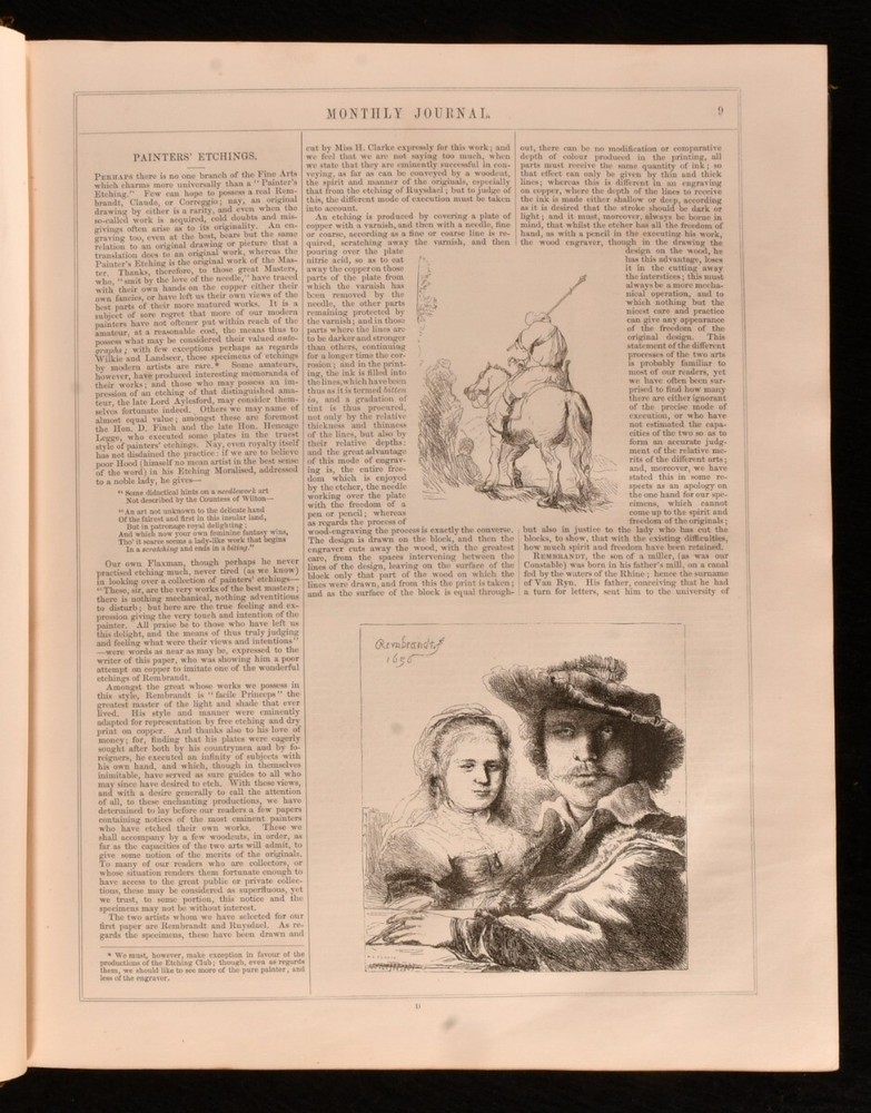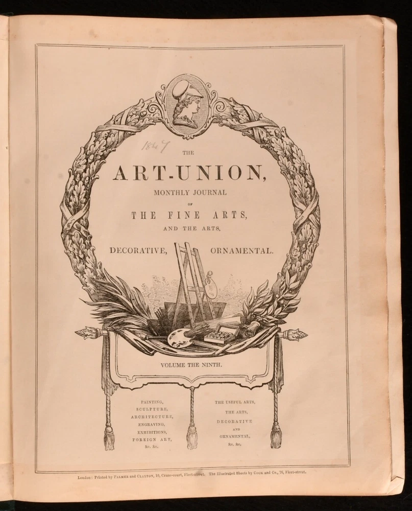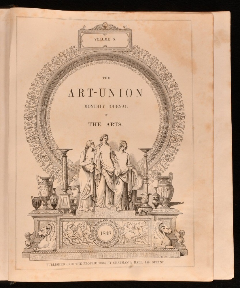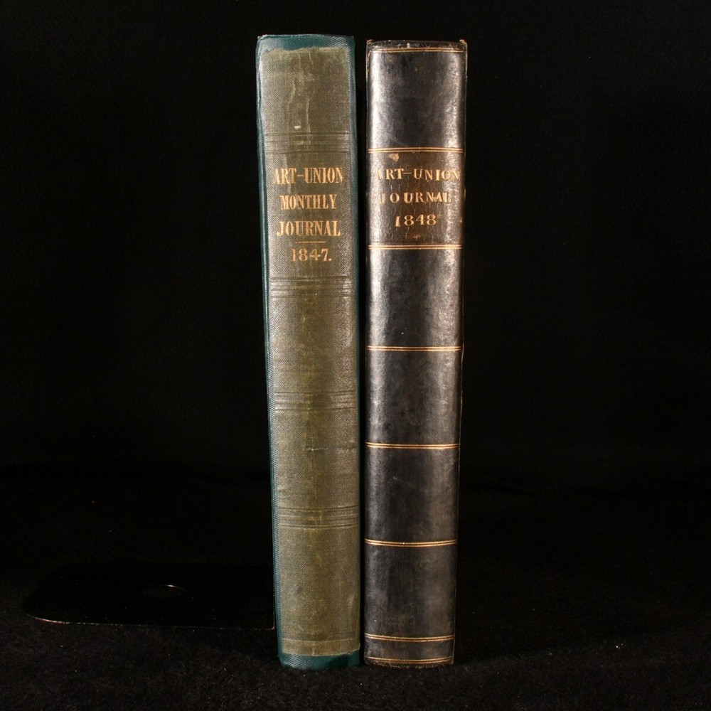 Click here to see our other books! The Art-Union Monthly Journal of the Arts Samuel Carter Hall 1847-1848 Chaman & Hall : London 12" by 10" [6], 416; vi, 370pp SUMMARY Two volumes of The Art-Union Monthly Journal of the Fine Arts which are richly illustrated. Illustrated,Leather Binding,Rebound Overall Condition: Very Good This book weighs 6 KG when packed UK Postage: £ 4.49 US Postage: £ 47.99 EU Postage : £ 28.99 European Postage: £ 49.99 Asia Postage: £ 79.99 Worldwide Postage: £ 159.99 DESCRIPTION The ninth and tenth volumes of The Art-Union monthly journal of the fine arts and the art, decorative and ornamental. The Art Journal was the most important British 19th Century monthly art magazine with articles and portrayals of the fine arts. The ninth journal includes the monthly volumes from 1847 and the tenth from 1848. With a colour decorative calendar to the front of the ninth volume and twenty eight plates. With thirty five plates to volume ten. Collated, complete. Volume nine has been re-backed with the original cloth restored and volume ten has been rebound in half calf with marbled covered boards. CONDITION Volume nine has been re-backed with the original cloth restored and volume ten has been rebound in half calf with marbled covered boards. Externally, smart with rubbing to the cloth and extremities of volume nine and marks to the boards. Some marks to the boards of volume ten. Front and rear hinges are starting to volume ten and remain generally firm. Internally, firmly bound with generally bright pages that are generally clean with some scattered spots. Overall Condition: Very Good GLOSSARY OF TERMS Overall Condition (Dustwrapper condition rating is shown after that for the book itself, where a dustwrapper is present) Fine - Very well preserved copy showing very little wear Very Good Indeed - Only one or two minor faults, really a very attractive copy Very Good - Quite a wide term meaning no major faults but probably several smaller ones often expected given the age of the book, but still a respectable copy Good - Meaning not very good. Some more serious faults as will be described in the condition report under 'condition' Good Only - Meaning one or more faults that could really do with repair Fair - As with good only above but with other faults leaving a compromised copy even after repair Poor - Really bad and possibly seriously incomplete. We only sell books in this condition where their rarity or value makes them attractive none the less. Major defects will be described. GUARANTEE We offer a full money back guarantee on our descriptions. Please ask for details and conditions. We prefer PAYPAL. If you pay via PAYPAL we will post the item off the same or the next working day with the postage you have selected. Please note we cannot accept USD cheques