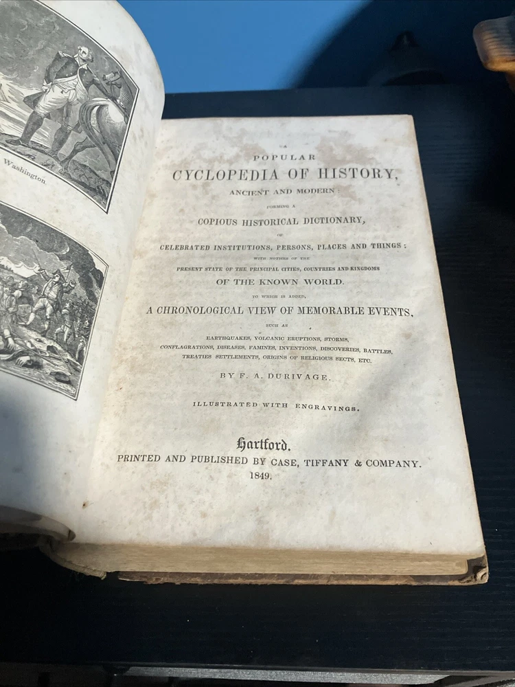 This 1849 Popular Cyclopedia of History by F.A. Durivage is a fascinating piece of literature that provides a comprehensive overview of historical events. The book is bound in leather and features beautifully illustrated engravings that bring to life the stories of the past. Published by Case, Tiffany & Burnham in Hartford, this original edition is a must-have for any history enthusiast. The book is written in English and covers a range of historical topics. It is an ideal addition to any collection of antique and collectible books. The country/region of manufacture is the United States, and the year printed is 1849. This book is a true gem for anyone interested in history, and it is sure to be a valuable addition to any collection.