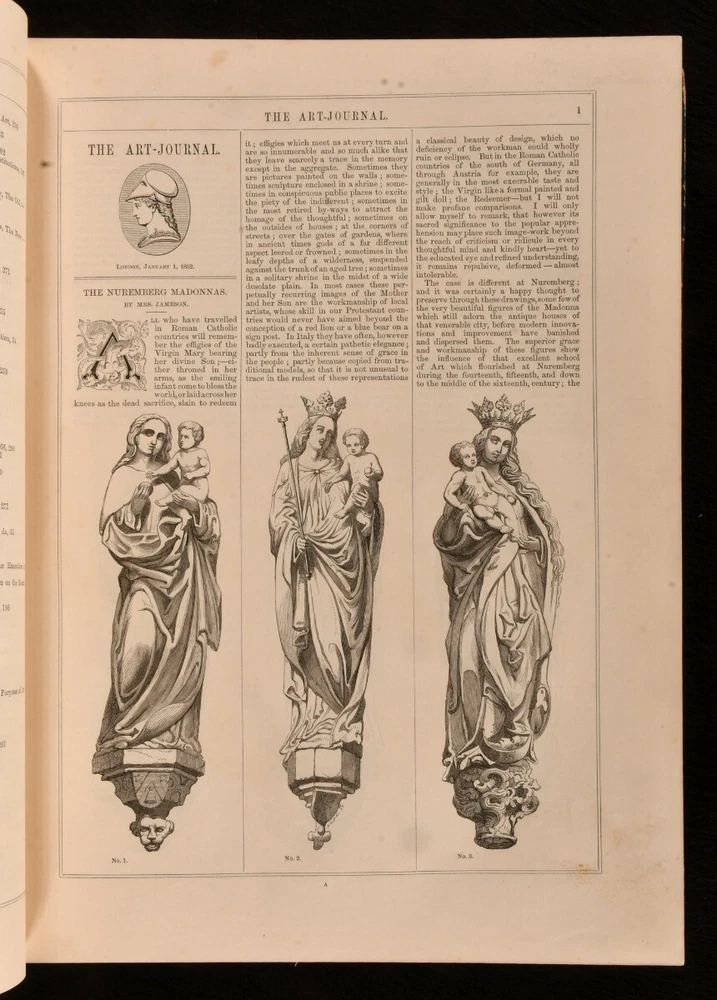 Click here to see our other books! The Art-Journal Anonymous 1852 George Virtue : London 13" by 9.5" viii, 384pp. SUMMARY A beautifully illustrated guide to art history and theory in handsome half leather binding. Illustrated,Leather Binding,Rebound Overall Condition: Good This book weighs 3 KG when packed UK Postage: £ 3.99 US Postage: £ 36.99 EU Postage : £ 25.99 European Postage: £ 27.99 Asia Postage: £ 47.99 Worldwide Postage: £ 69.99 DESCRIPTION An early edition. Volume IV from the new series. In a half calf binding with marbled boards and gilt detail. A fascinating and comprehensive guide to art history and theory. With details on notable artists, art around the world, ornament and design. With an engraved title page, all eleven full page illustrations, and twenty-five out of the thirty-seven engraved plates, from the Vernon Gallery and sculpture. Printers label to the front paste-down for 'Mead, Corney & Co., Ltd'. CONDITION In half calf binding. Externally, smart with shelf wear to the edges and a few marks to the boards. Fading to the front board and spine. Crack to the lower spine. Printers label to the front paste-down and some loss to the top of the front free endpaper. Hinges strained but firm. Internally, binding slightly worn on page 157 but otherwise firmly bound. Pages generally bright and clean with some spotting, particularly around the plates. Some offsetting to page 180. Overall Condition: Good GLOSSARY OF TERMS Overall Condition (Dustwrapper condition rating is shown after that for the book itself, where a dustwrapper is present) Fine - Very well preserved copy showing very little wear Very Good Indeed - Only one or two minor faults, really a very attractive copy Very Good - Quite a wide term meaning no major faults but probably several smaller ones often expected given the age of the book, but still a respectable copy Good - Meaning not very good. Some more serious faults as will be described in the condition report under 'condition' Good Only - Meaning one or more faults that could really do with repair Fair - As with good only above but with other faults leaving a compromised copy even after repair Poor - Really bad and possibly seriously incomplete. We only sell books in this condition where their rarity or value makes them attractive none the less. Major defects will be described. GUARANTEE We offer a full money back guarantee on our descriptions. Please ask for details and conditions. We prefer PAYPAL. If you pay via PAYPAL we will post the item off the same or the next working day with the postage you have selected. Please note we cannot accept USD cheques