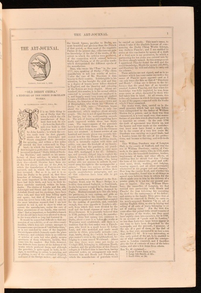 Click here to see our other books! The Art Journal New Series Volume I Illustrated Catalogue of the International Exhibition Samuel Carter Hall (eds.) 1862 James S. Virtue : London and New York 13.5" by 10" viii, 244, 220, 20pp SUMMARY The first edition of the new series of The Art Journal with the catalogue of the 1862 International Exhibition. First Edition,Illustrated,Leather Binding Overall Condition: Good This book weighs 4 KG when packed UK Postage: £ 4.49 US Postage: £ 39.99 EU Postage : £ 26.99 European Postage: £ 36.99 Asia Postage: £ 65.99 Worldwide Postage: £ 99.99 DESCRIPTION First edition of The Art Journal New Series Volume I with the Illustrated Catalogue of the International Exhibition. Bound in half calf and marbled boards. The Art Journal was a significant art magazine for art in the nineteenth century. Its editor at the time was Samuel Carter Hall. It was admired for its honest portrayal of the fine arts. This edition includes the catalogue for the International Exhibition of 1862 and the first issue of 1863. Densely illustrated throughout with engravings from pictures and works of art by various artists and engravers. CONDITION In half calf bindings and marbled boards. Externally, sound. There is some bumping to the head and tail of the spine and to the extremities There is some wear to the head and tail of the spine. The boards are slightly worn. The hinges are starting but firm, and the front joint is working loose to the top. Internally, generally firmly bound. The pages are bright and clean with the occasional spot and a few tide marks. Overall Condition: Good GLOSSARY OF TERMS Overall Condition (Dustwrapper condition rating is shown after that for the book itself, where a dustwrapper is present) Fine - Very well preserved copy showing very little wear Very Good Indeed - Only one or two minor faults, really a very attractive copy Very Good - Quite a wide term meaning no major faults but probably several smaller ones often expected given the age of the book, but still a respectable copy Good - Meaning not very good. Some more serious faults as will be described in the condition report under 'condition' Good Only - Meaning one or more faults that could really do with repair Fair - As with good only above but with other faults leaving a compromised copy even after repair Poor - Really bad and possibly seriously incomplete. We only sell books in this condition where their rarity or value makes them attractive none the less. Major defects will be described. GUARANTEE We offer a full money back guarantee on our descriptions. Please ask for details and conditions. We prefer PAYPAL. If you pay via PAYPAL we will post the item off the same or the next working day with the postage you have selected. Please note we cannot accept USD cheques