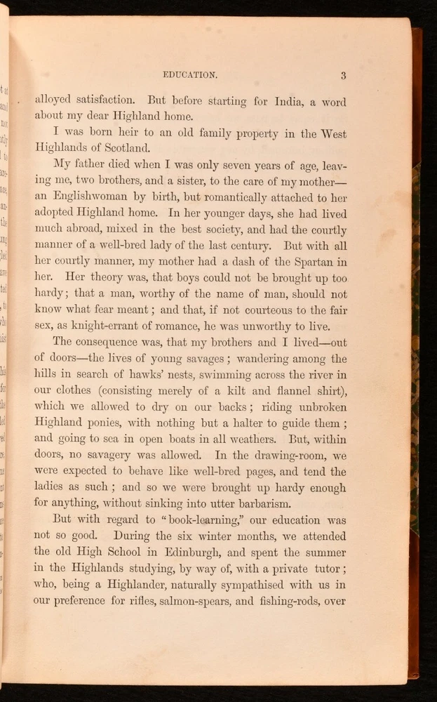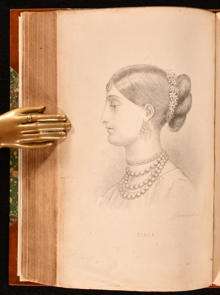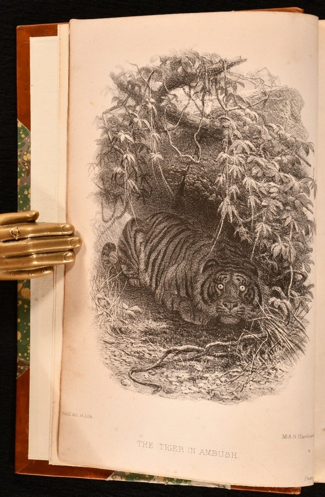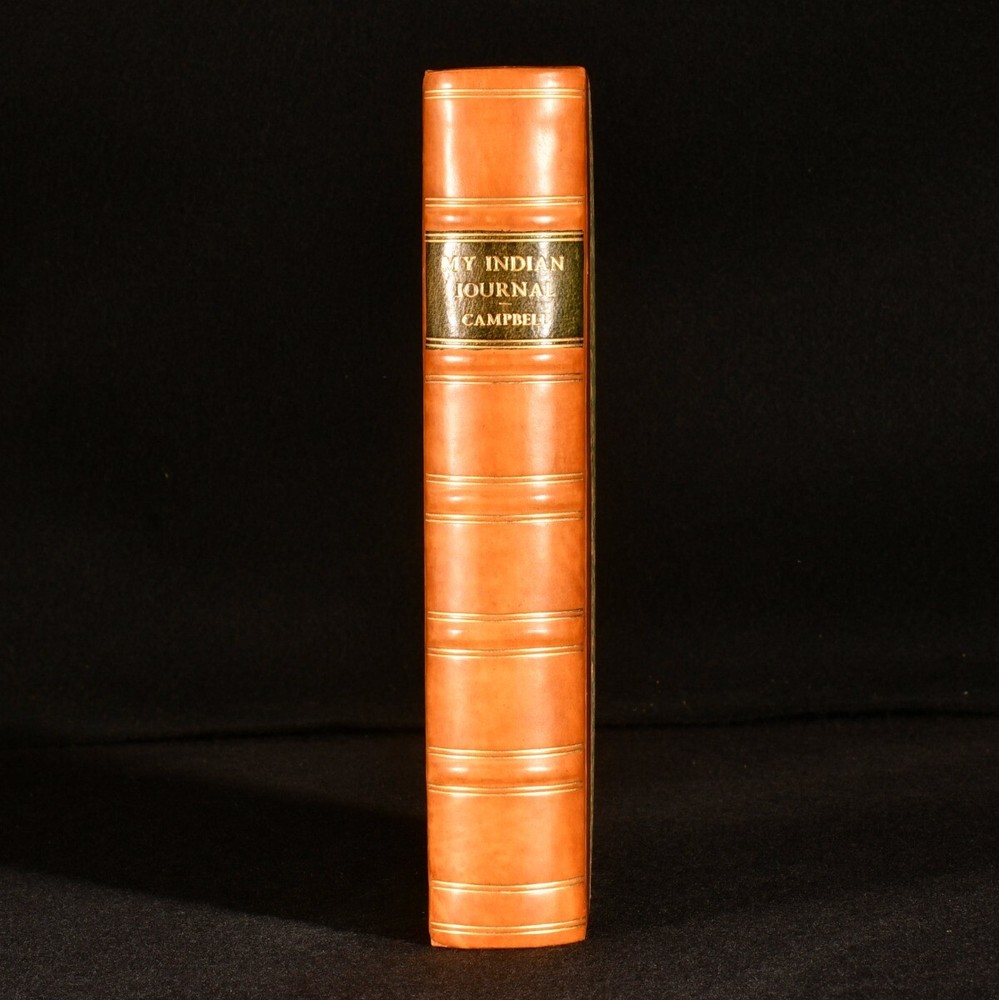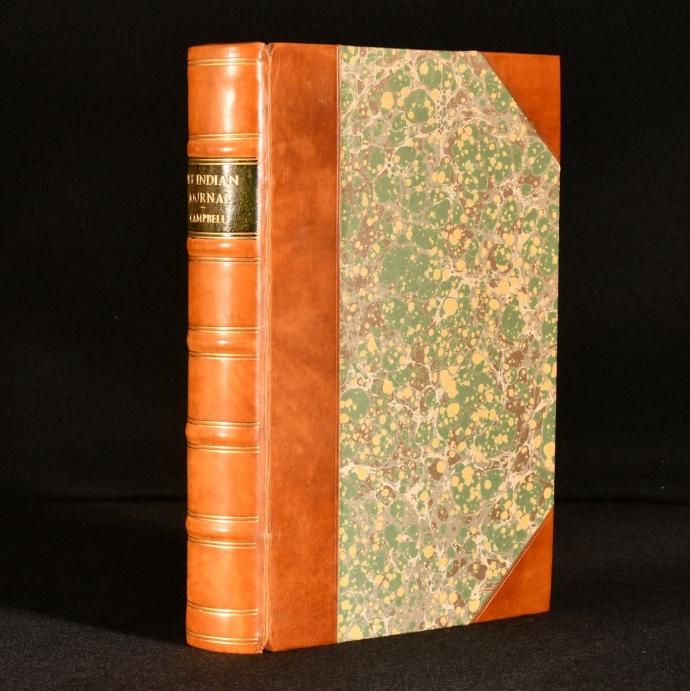 Click here to see our other books! My Indian Journal Colonel Walter Campbell 1864 Edmonston & Douglas : Edinburgh 8" by 5.5" xix, [1], 484pp SUMMARY A smartly bound first edition of this interesting travel work on India in the 1830s, complete with plates. First Edition,Illustrated,Leather Binding,Uncommon Overall Condition: Near Fine This book weighs 1.5 KG when packed UK Postage: £ 3.99 US Postage: £ 23.99 EU Postage : £ 18.99 European Postage: £ 19.99 Asia Postage: £ 31.99 Worldwide Postage: £ 32.99 DESCRIPTION The first edition of this uncommon work. Half-title is present. Illustrated with a frontispiece, engraved title, and six plates. Collated, complete. Colonel Walter Campbell's travel work recounting his time spent exploring India in the 1830s. This work was edited from Campbell's original journals written during his travels, with tales of his adventures, including a child being board upon his ship to India, his first impressions on the country, and many notices on natural history and wildlife - including a chapter on tigers, and chapters dedicating to bison shooting and hog hunting. Campbell also describes his excursions to Goa, Dharwar, Bangalore, the Neilgherry Hills, Machilipatnam, and more. Illustrated by Noel Paton and 'Wolf'. CONDITION In a half calf binding with marbled paper to the boards, with new endpapers. Externally, fine. Spine is very lightly faded. Internally, firmly bound. Pages are bright and clean with the occasional scattered spot. Small closed tear to the plate facing page 213. Overall Condition: Near Fine GLOSSARY OF TERMS Overall Condition (Dustwrapper condition rating is shown after that for the book itself, where a dustwrapper is present) Fine - Very well preserved copy showing very little wear Very Good Indeed - Only one or two minor faults, really a very attractive copy Very Good - Quite a wide term meaning no major faults but probably several smaller ones often expected given the age of the book, but still a respectable copy Good - Meaning not very good. Some more serious faults as will be described in the condition report under 'condition' Good Only - Meaning one or more faults that could really do with repair Fair - As with good only above but with other faults leaving a compromised copy even after repair Poor - Really bad and possibly seriously incomplete. We only sell books in this condition where their rarity or value makes them attractive none the less. Major defects will be described. GUARANTEE We offer a full money back guarantee on our descriptions. Please ask for details and conditions. We prefer PAYPAL. If you pay via PAYPAL we will post the item off the same or the next working day with the postage you have selected. Please note we cannot accept USD cheques