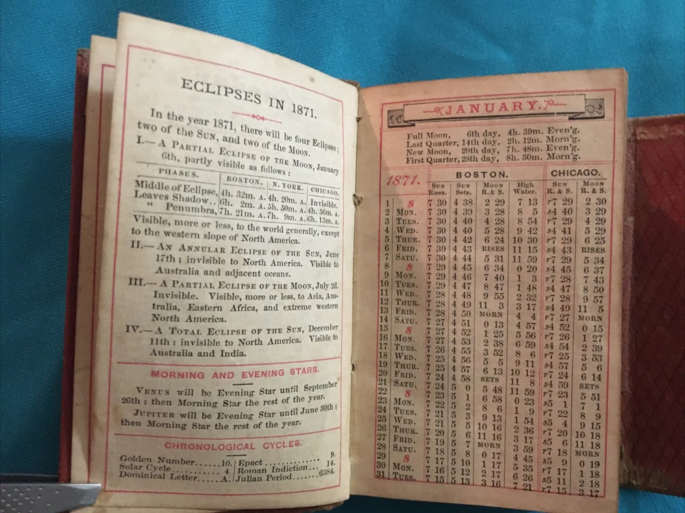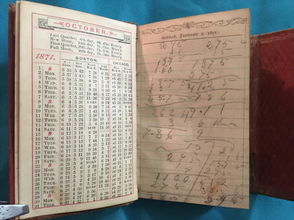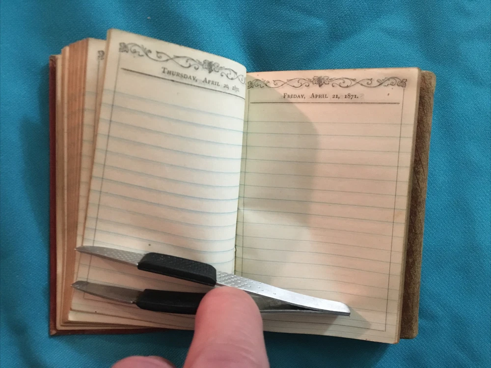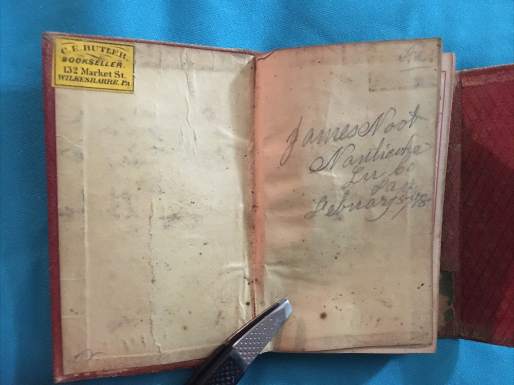 1871 Leather Bound Trade Diary CE Butler Wilkes-Barre PA. Leather Bound 1871 Trade Diary sold by C.E. Butler Booksellers, Wilkes-Barre PA is in good overall condition. Trade notes and entries on first several pages. Diary is 4" X 2 5/8" X 3/4". Pages are tight and appears complete. Leather is worn, but has no rips or tears.