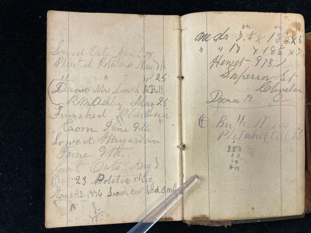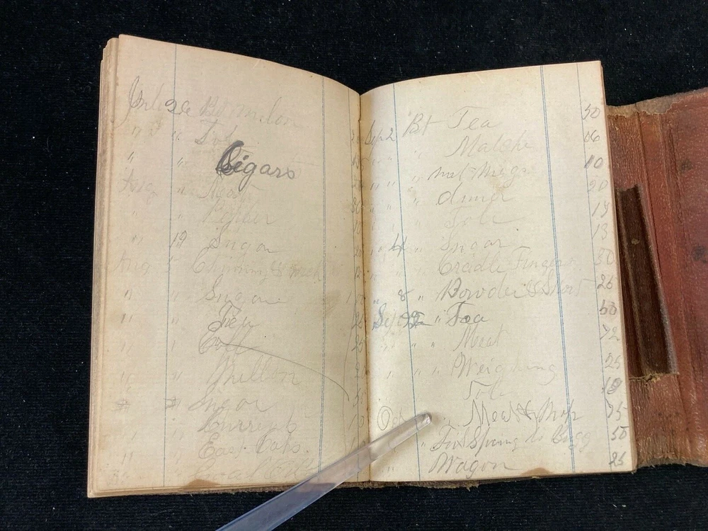 1875-1894 LEATHER PURCHASE ACCOUNTING NOTEBOOK AND DIARY FULL OF ENTRIES. GOOD CONDITION FOR 145 YEARS OLD. ENJOY!!! (CABINET 4, SHELF 2)...