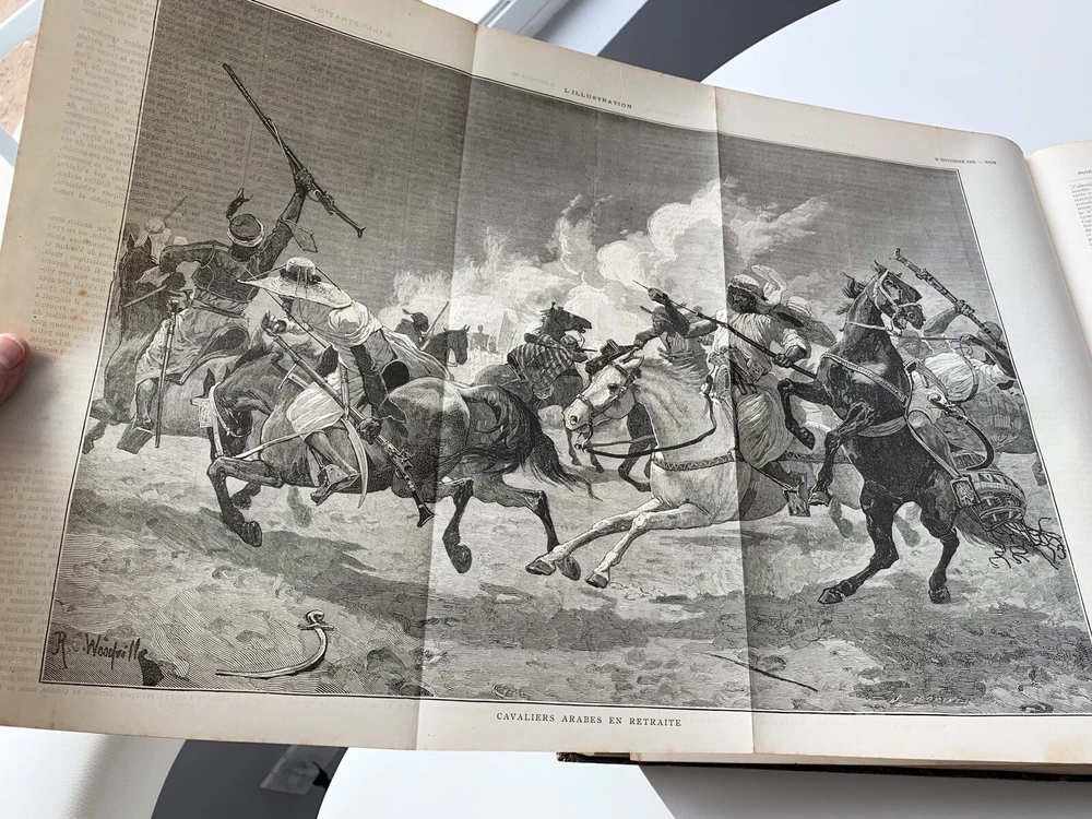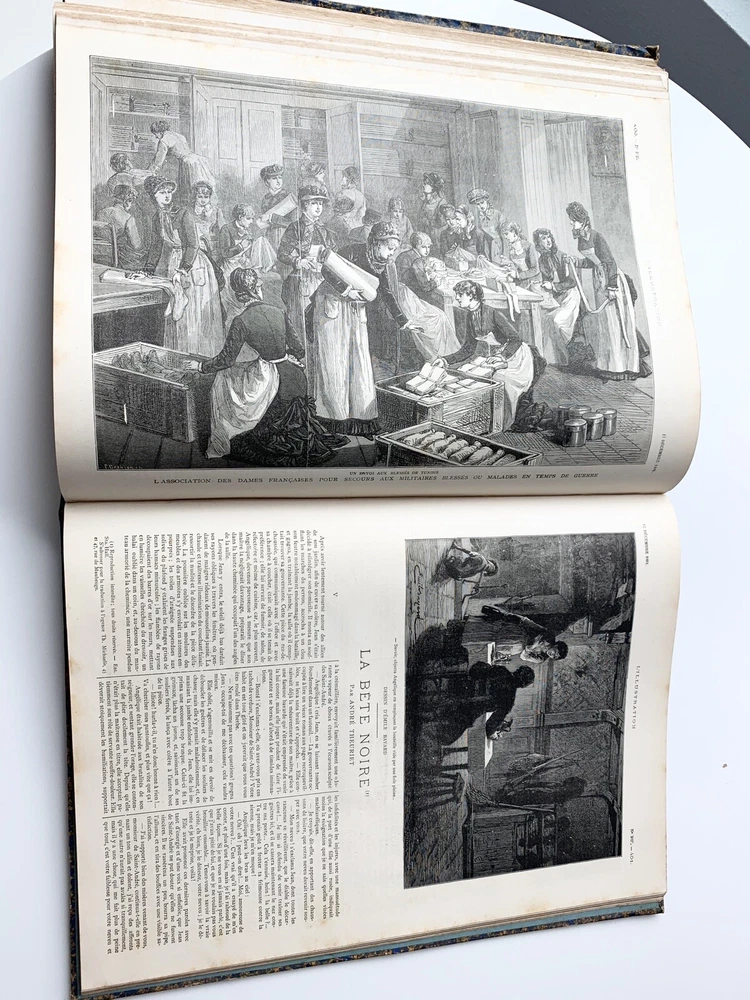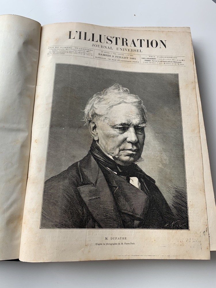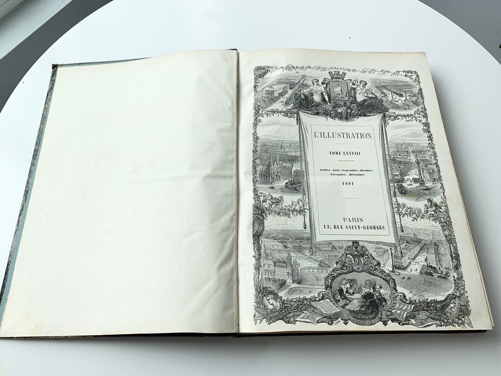 1881 L’Illustration journal 3-18 universal tome LXXVIII some Fold Out Etchings. French language. San Francisco Bay Area Estate Find. Measurement Approx 11 x 15 inches Condition is as is and Condition is as shown in the many photos, view and angles in this listing. Please refer to the photos for further visual condition and description. Not returnable so please ask questions if needed. Shipping/ Packaging $15.00 includes insurance No International Shipping. Thanks for looking!