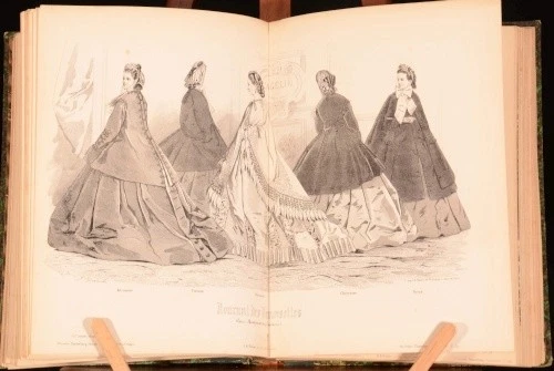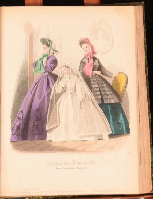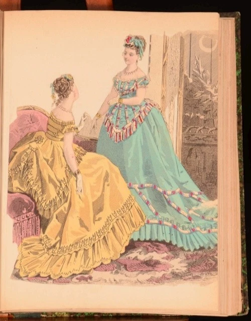 Click here to see our other books! Gravures De Mode 1863-83 Carrache, Paul Lacouriere, A. Preval, Etc. 1883 S. B. Fuller : London 11" by 8" 63 Plates SUMMARY A beautiful collection of engraved plates depicting French fashions of the late Nineteenth Century. Colour Plates,Folding Plates,Illustrated Overall Condition: Very Good This book weighs 1.5 KG when packed UK Postage: £ 3.99 US Postage: £ 23.99 EU Postage : £ 18.99 European Postage: £ 19.99 Asia Postage: £ 31.99 Worldwide Postage: £ 32.99 DESCRIPTION Containing 63 plates, of which 49 are hand-coloured, 11 are black and white, and 3 are black, white and sepia. Plates date from 1863 to 1883 and most are from the Journal des Demoiselles, with the eight remaining plates being from La Poupee Modele. Many plates are double-page or fold-out. Two of the coloured plates appear twice in the book, and one double-page black and white plate appears three times. This is a valuable resource for those interested in Eighteenth Century costume. CONDITION In a quarter calf binding with marbled boards. Externally, a trifle worn. The top portion of the backstrip is lifting. Internally, three plates detached but present with many further plates starting. Generally bright with occasional spotting and handling marks. Overall Condition: Very Good GLOSSARY OF TERMS Overall Condition (Dustwrapper condition rating is shown after that for the book itself, where a dustwrapper is present) Fine - Very well preserved copy showing very little wear Very Good Indeed - Only one or two minor faults, really a very attractive copy Very Good - Quite a wide term meaning no major faults but probably several smaller ones often expected given the age of the book, but still a respectable copy Good - Meaning not very good. Some more serious faults as will be described in the condition report under 'condition' Good Only - Meaning one or more faults that could really do with repair Fair - As with good only above but with other faults leaving a compromised copy even after repair Poor - Really bad and possibly seriously incomplete. We only sell books in this condition where their rarity or value makes them attractive none the less. Major defects will be described. GUARANTEE We offer a full money back guarantee on our descriptions. Please ask for details and conditions. We prefer PAYPAL. If you pay via PAYPAL we will post the item off the same or the next working day with the postage you have selected. Please note we cannot accept USD cheques