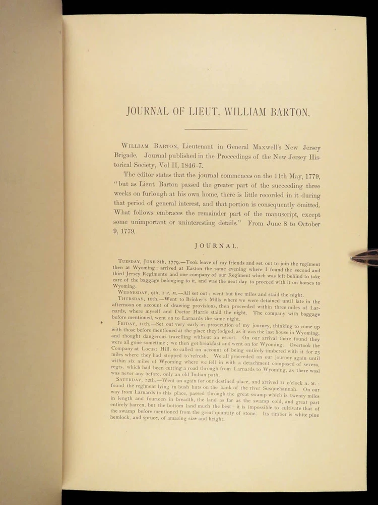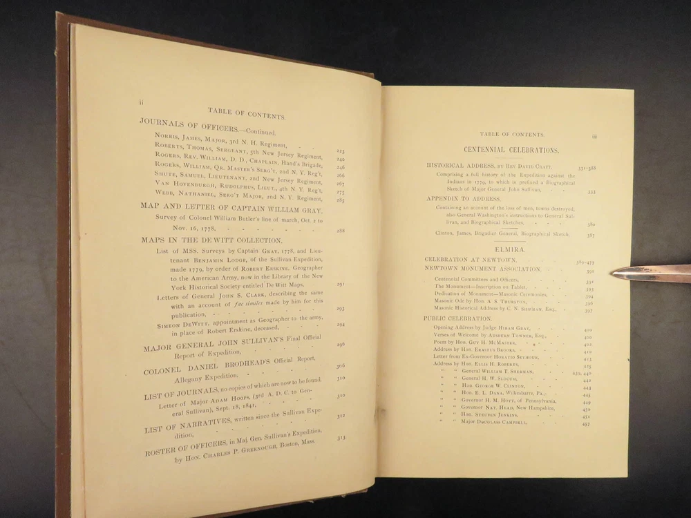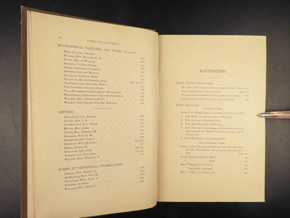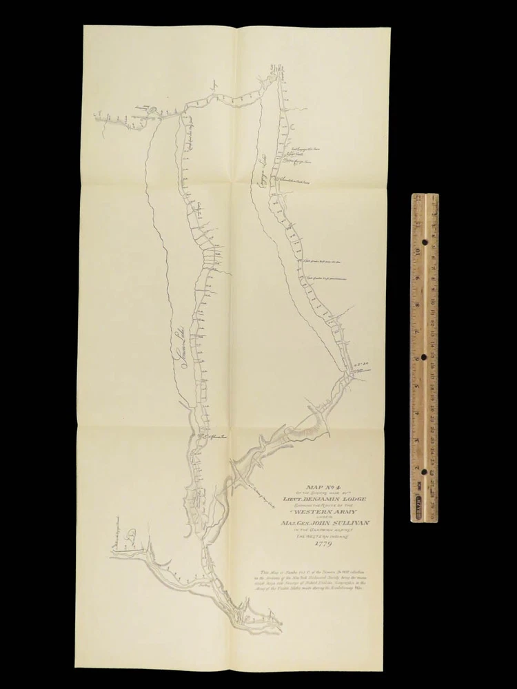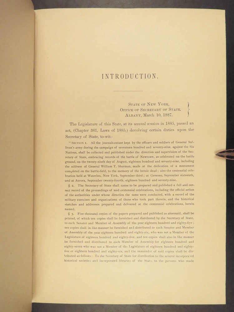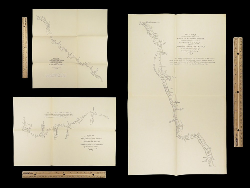 1887 American Revolution 1 ed Sullivan Expedition Journals Iroquois INDIAN War In 1779, General George Washington ordered a military campaigned against the Indian nations of Haudenosaunee – native tribes that had sided with the British in the American Revolution. This campaign was led by General John Sullivan who carried out a scorched earn regime that destroyed dozens of Iroquois villages in New York. The devastation was one of the most notable contributors to Native American hardships following the Revolutionary War. The events of this campaign were written by Frederick Cook, who published a thorough account of the expedition. This first edition features folding maps, including those in the inner-cover pockets. Item number: #24638 Price: $499 COOK, Frederick Albert Journals of the Military Expedition of Major General John Sullivan against the Six Nations of Indians in 1779 Auburn, NY: Knapp, 1887. First edition. Details : · Collation: Complete with all pages o [2], xv, [1], 579, [3] o Illustrated throughout o 4 steel-engraved portraits o 5 folding maps in front and rear board pockets o 6 folding and in-text illustrations · Language: English · Binding: Hardcover; tight and secure · Brown cloth · Size : ~10.25in X 7.25in (26cm x 18cm) Our Guarantee: Very Fast. Very Safe. Free Shipping Worldwide. Customer satisfaction is our priority! Notify us with 7 days of receiving, and we will offer a full refund without reservation! 24638