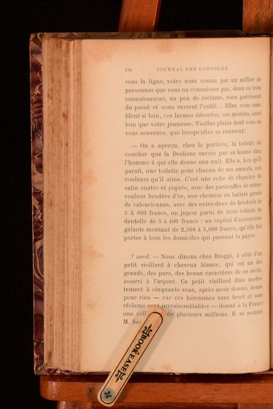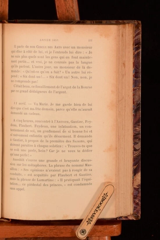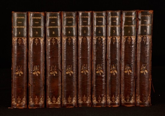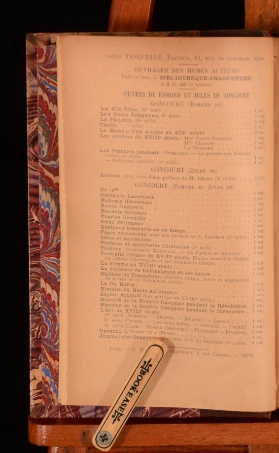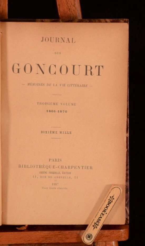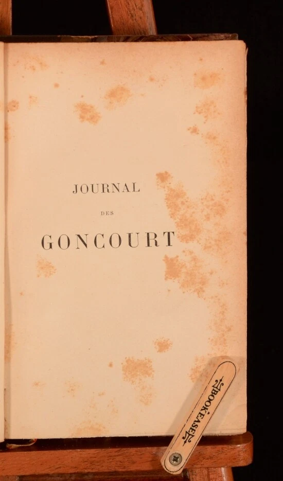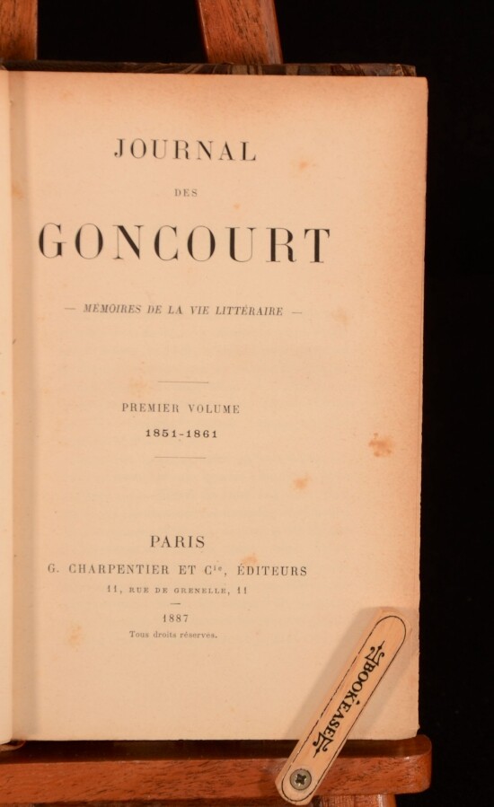 Click here to see our other books! Journal des Goncourt; Memoires de la Vie Litteraire Edmond and Jules Goncourt 1895-1896 Bibliotheque Charpentier : Paris 7.5" by 5" viii, 402; 340; 369; 373; 355; 356; 336; 300; 428pp. SUMMARY The comprehensive journals of the Goncourt brothers, Edmond and Jules de Goncourt, both French naturalism writers and collaborative sibling authors, complete in nine volumes. Early Edition,Leather Binding,Rebound Overall Condition: Good This book weighs 1 KG when packed UK Postage: £ 3.99 US Postage: £ 22.99 EU Postage : £ 16.99 European Postage: £ 17.99 Asia Postage: £ 22.99 Worldwide Postage: £ 28.99 DESCRIPTION The Goncourt brothers formed a partnership that is often viewed as unique in literary history. The brothers wrote their books together and did not spend time apart during their adult lives. They were only parted by the death of Jules in 1870. They are known for their literary work and for their diaries, which offer an intimate view into the French literary society of the later 19th century. The Goncourt brothers' career as writers began with an account of a sketching holiday together. They published books on aspects of 19th century French art and society, dismissing the vulgarity of the Second Empire in favour of a more refined age. They also published six novels of which one was based on the true case of their own maidservant, Rose Malinger, whose lived a double life. On his death, Edmond de Goncourt bequeathed his entire state for the foundation and maintenance of the Academie Goncourt which still awards one of the most important literary prizes in French Literature. This is the first edition of the small paper general issue. Collated: complete. CONDITION In quarter morocco with marbled boards, with gilt detailing and titles to the spines. Externally a little worn, particularly around the spines. The titles, however, have suffered no loss. Internally, volumes one, two, and four are age toned towards the edges and foxed, with some spotting here and there as well. Volumes three, five, six, seven, eight, are heavily age toned, but are otherwise generally clean. Firmly bound. Overall Condition: Good GLOSSARY OF TERMS Overall Condition (Dustwrapper condition rating is shown after that for the book itself, where a dustwrapper is present) Fine - Very well preserved copy showing very little wear Very Good Indeed - Only one or two minor faults, really a very attractive copy Very Good - Quite a wide term meaning no major faults but probably several smaller ones often expected given the age of the book, but still a respectable copy Good - Meaning not very good. Some more serious faults as will be described in the condition report under 'condition' Good Only - Meaning one or more faults that could really do with repair Fair - As with good only above but with other faults leaving a compromised copy even after repair Poor - Really bad and possibly seriously incomplete. We only sell books in this condition where their rarity or value makes them attractive none the less. Major defects will be described. GUARANTEE We offer a full money back guarantee on our descriptions. Please ask for details and conditions. We prefer PAYPAL. If you pay via PAYPAL we will post the item off the same or the next working day with the postage you have selected. Please note we cannot accept USD cheques
