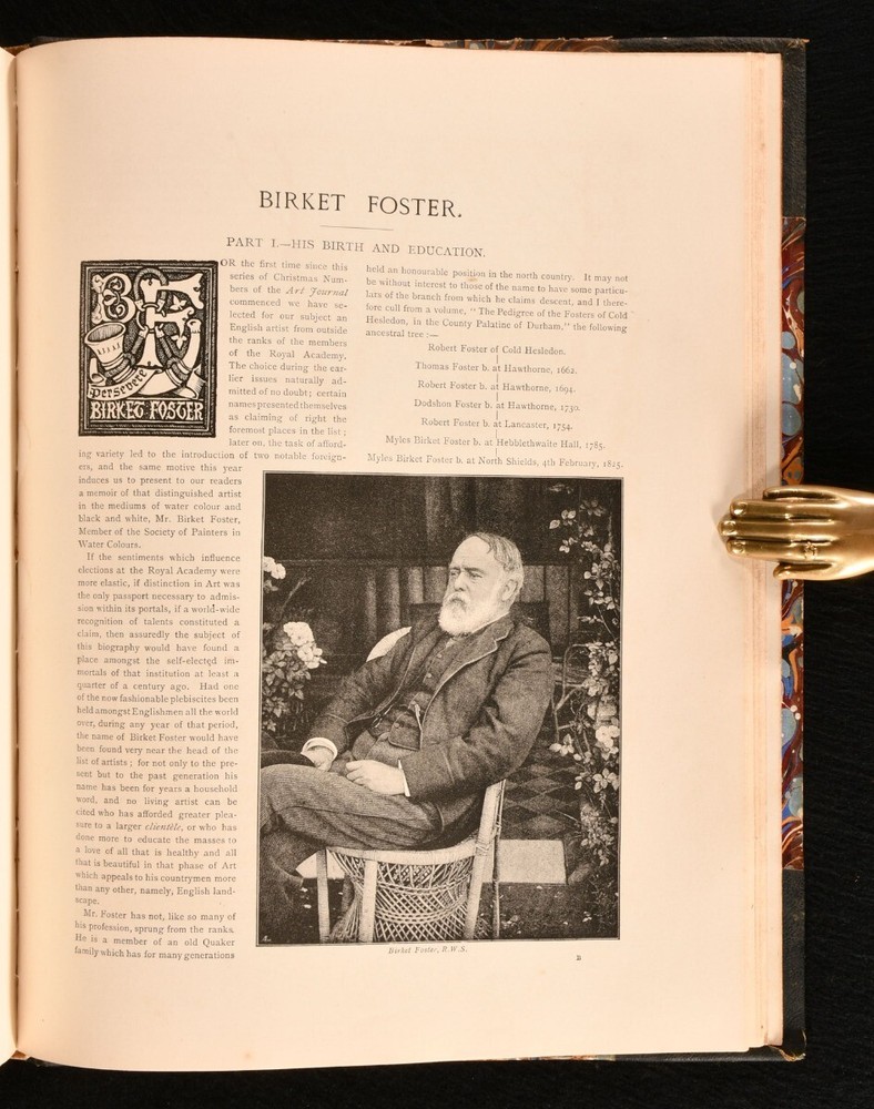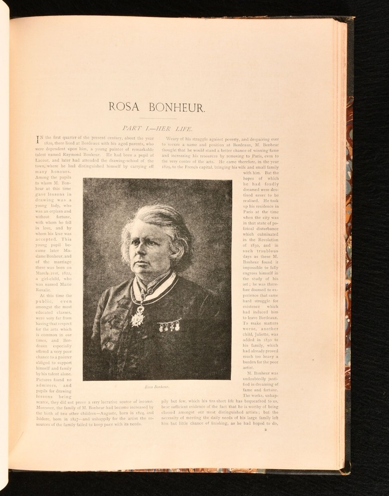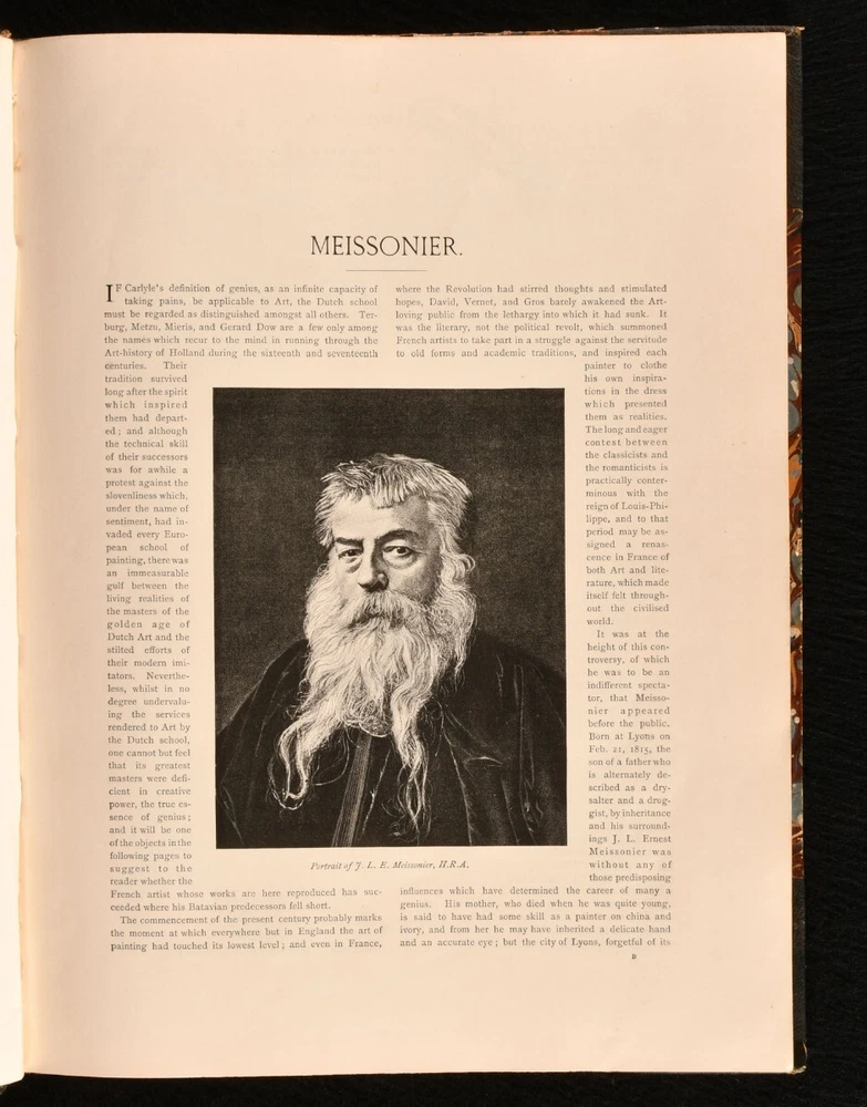 Click here to see our other books! The Art Annual Various 1888-90 Art Journal Office : London 13" by 10" 32, 32, 32, 32pp SUMMARY A collection of four illustrated biographies on Meissonier, Hook, Bonheur, and Birket Foster, illustrated with examples of their art throughout. Illustrated,Leather Binding Overall Condition: Good This book weighs 2 KG when packed UK Postage: £ 3.99 US Postage: £ 29.99 EU Postage : £ 21.99 European Postage: £ 23.99 Asia Postage: £ 37.99 Worldwide Postage: £ 38.99 DESCRIPTION Bound without title pages. Title and publishing information taken from Jisc from a copy held at the Tate Library. A collection of four brief biographies on prominent artists, from 'The Art Annuals', bound into one volume. Containing; 'J. L. E. Meissonier, His Life and Work', by Lionel Robinson, published in 1888. Illustrated with three plates, four full paged engravings, and in-text engravings. 'J. C. Hook, His Life and Work', by F. G. Stephens, published in 1889. Illustrated with three plates, three full paged engravings, and in-text engravings. 'Rosa Bonheur, Her Life and Work', by Rene Peyrol, published in 1890. Illustrated with three plates, four full paged engravings, and in-text engravings. 'Birket Foster, His Life and Work', by Marcus B Huish, published in 1890. Illustrated with three plates, three full paged engravings, and in-text engravings. CONDITION In a half morocco binding with marbled paper to the boards. Externally, with some loss of paper to the boards. Light marks to the boards and spine. Minor bumping to the extremities. Spine is a little faded. Institutional stamp and presentation ink inscription to the front pastedown. Internally, firmly bound. Pages are bright and clean with some spots. Overall Condition: Good GLOSSARY OF TERMS Overall Condition (Dustwrapper condition rating is shown after that for the book itself, where a dustwrapper is present) Fine - Very well preserved copy showing very little wear Very Good Indeed - Only one or two minor faults, really a very attractive copy Very Good - Quite a wide term meaning no major faults but probably several smaller ones often expected given the age of the book, but still a respectable copy Good - Meaning not very good. Some more serious faults as will be described in the condition report under 'condition' Good Only - Meaning one or more faults that could really do with repair Fair - As with good only above but with other faults leaving a compromised copy even after repair Poor - Really bad and possibly seriously incomplete. We only sell books in this condition where their rarity or value makes them attractive none the less. Major defects will be described. GUARANTEE We offer a full money back guarantee on our descriptions. Please ask for details and conditions. We prefer PAYPAL. If you pay via PAYPAL we will post the item off the same or the next working day with the postage you have selected. Please note we cannot accept USD cheques