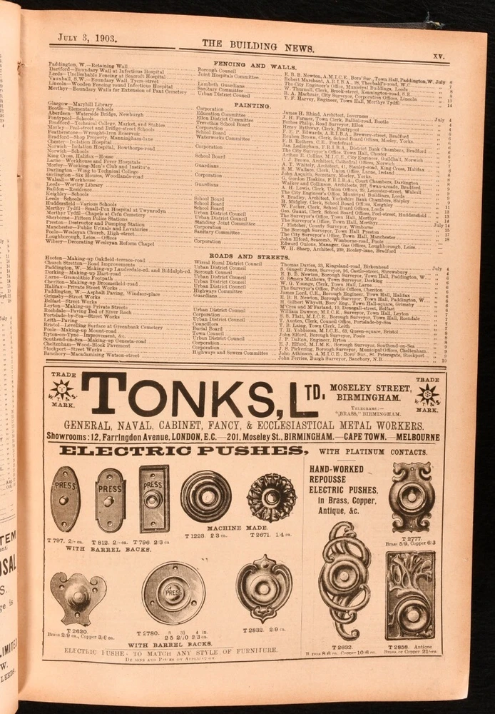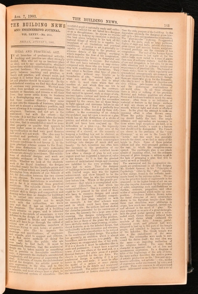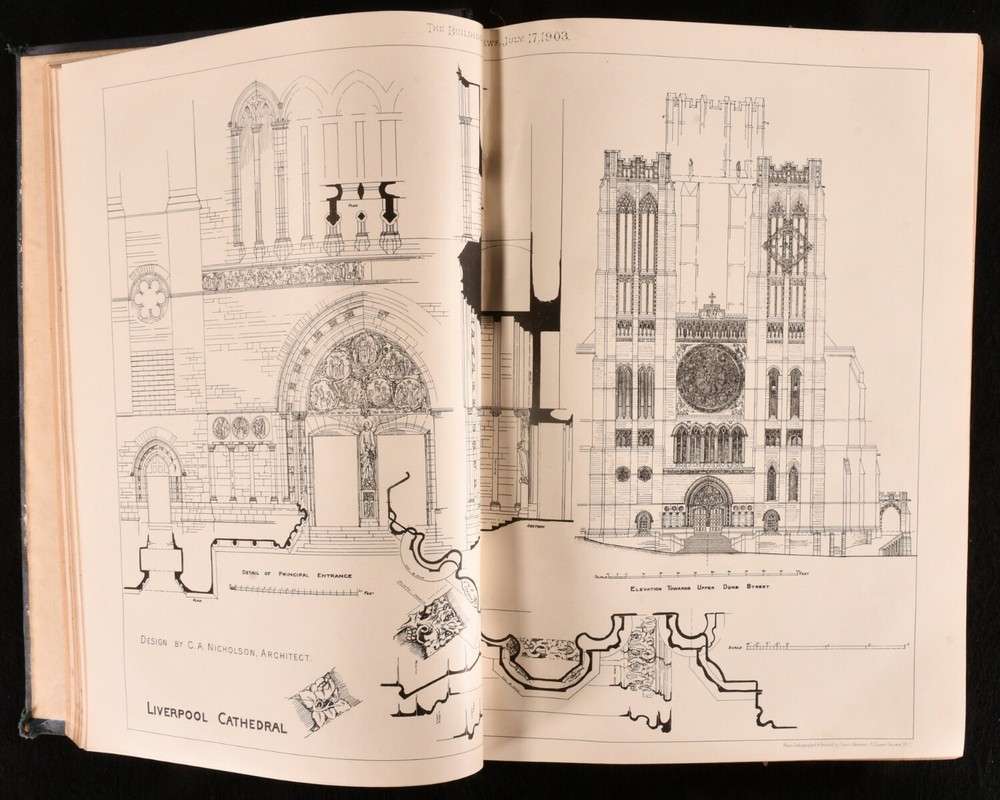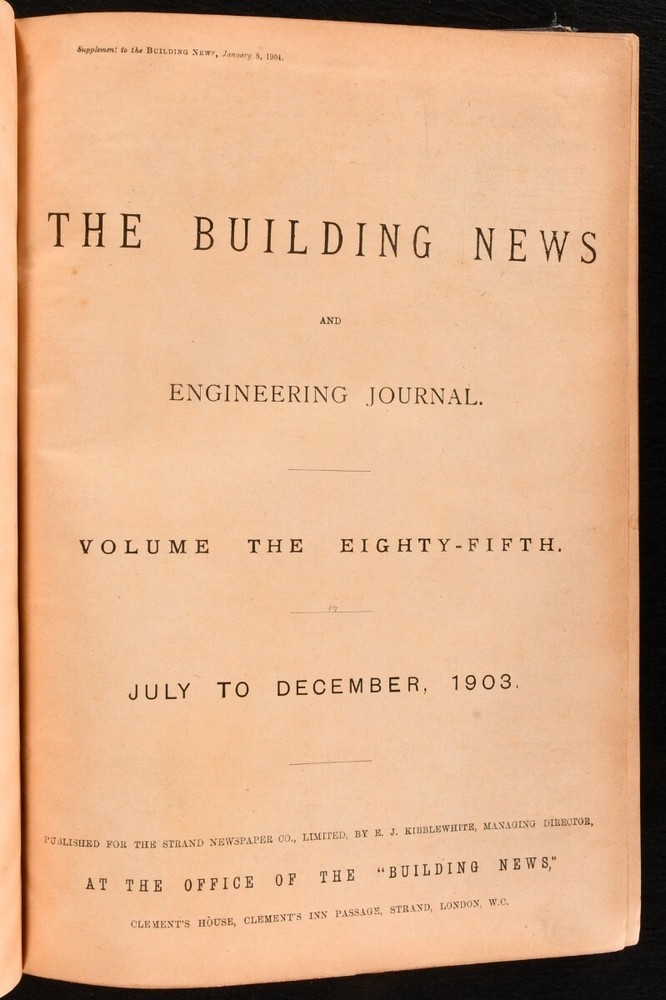 Click here to see our other books! The Building News and Engineering Journal: Volume the Eighty-Fifth, July to December 1903 Not Stated 1903 Strand Newspaper Co., Limited By E. J. Kibblewhite : London 13" by 9.5" viii [1], 2-888, xv-xviii pp SUMMARY A very scarce early twentieth century volume of an important architectural periodical, illustrated throughout with impressively detailed architectural plans of such impressive British buildings as Liverpool Cathedral. First Edition,Folding Plates,Illustrated,Leather Binding,Very Scarce Overall Condition: Good Only This book weighs 4 KG when packed UK Postage: £ 4.49 US Postage: £ 39.99 EU Postage : £ 26.99 European Postage: £ 36.99 Asia Postage: £ 65.99 Worldwide Postage: £ 99.99 DESCRIPTION The very scarce volume LXXXV of architectural periodical 'The Building News and Engineering Journal', with this volume covering each issue published between July and December, 1903. Founded in 1854, this publication was published under several titles during its history, appearing under this name from 1863 onwards, until 1926 when it was merged with 'The Architect', forming 'The Architect and Building News'. These issues are illustrated throughout, featuring attractive engravings of building facades and interiors, and a wealth of impressively detailed technical diagrams and architectural plans. With one hundred and twenty five plates, many of which are double page, and a further twenty six folding plates. Amongst the fascinating architectural locations discussed and illustrated with plates of architectural plans are a number of plans of Liverpool Cathedral, the Hammersmith Central Library, hospitals in Glasgow and Bedford, and the Blackpool Technical school. With numerous contemporary advertisements throughout. CONDITION In a half calf binding with cloth covered boards. . Externally, a prior owner has attached masking tape to joints. Loss to back strip tail, and rubbing to board extremities. Hinges lightly strained but holding firm. Internally, firmly bound. Pages generally clean, with the odd spot. Overall Condition: Good Only GLOSSARY OF TERMS Overall Condition (Dustwrapper condition rating is shown after that for the book itself, where a dustwrapper is present) Fine - Very well preserved copy showing very little wear Very Good Indeed - Only one or two minor faults, really a very attractive copy Very Good - Quite a wide term meaning no major faults but probably several smaller ones often expected given the age of the book, but still a respectable copy Good - Meaning not very good. Some more serious faults as will be described in the condition report under 'condition' Good Only - Meaning one or more faults that could really do with repair Fair - As with good only above but with other faults leaving a compromised copy even after repair Poor - Really bad and possibly seriously incomplete. We only sell books in this condition where their rarity or value makes them attractive none the less. Major defects will be described. GUARANTEE We offer a full money back guarantee on our descriptions. Please ask for details and conditions. We prefer PAYPAL. If you pay via PAYPAL we will post the item off the same or the next working day with the postage you have selected. Please note we cannot accept USD cheques