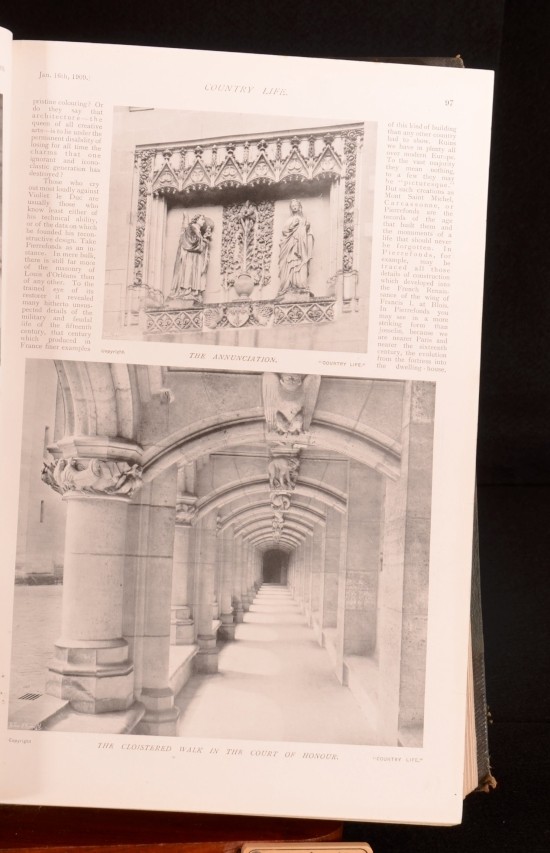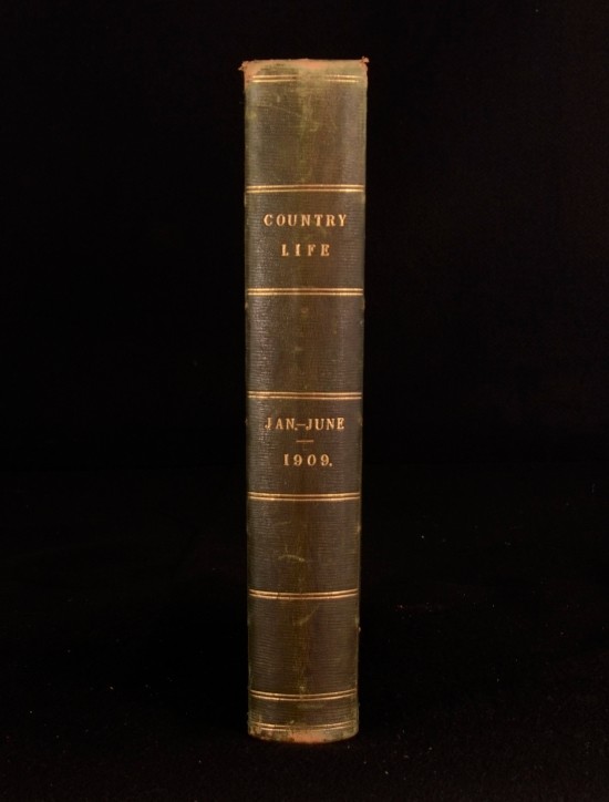 Click here to see our other books! Country Life The Journal for All Interested in Country Life and Country Pursuits Various 1909 The Office of Country Life : London 14.5" by 9.5" 960pp SUMMARY A collected copy of the Country Life Journal from 1909. Leather Binding Overall Condition: Good This book weighs 6 KG when packed UK Postage: £ 3.99 US Postage: £ 47.99 EU Postage : £ 28.99 European Postage: £ 49.99 Asia Postage: £ 79.99 Worldwide Postage: £ 159.99 DESCRIPTION Containing all issues between January and June of 1909. Country Life is a British weekly magazine which launched in 1897. It frequently covers topics such as architecture and furnishing of country estates, hunting, gold, racing and other sports. CONDITION In a half straight-grained morocco. Externally, sound with rubbing at extremities and joints. Wear to head and tail of the spine. Spine faded. Internally, generally firmly bound. Pages bright though cockled, with occasional spotting heavier to first and last few pages. Overall Condition: Good GLOSSARY OF TERMS Overall Condition (Dustwrapper condition rating is shown after that for the book itself, where a dustwrapper is present) Fine - Very well preserved copy showing very little wear Very Good Indeed - Only one or two minor faults, really a very attractive copy Very Good - Quite a wide term meaning no major faults but probably several smaller ones often expected given the age of the book, but still a respectable copy Good - Meaning not very good. Some more serious faults as will be described in the condition report under 'condition' Good Only - Meaning one or more faults that could really do with repair Fair - As with good only above but with other faults leaving a compromised copy even after repair Poor - Really bad and possibly seriously incomplete. We only sell books in this condition where their rarity or value makes them attractive none the less. Major defects will be described. GUARANTEE We offer a full money back guarantee on our descriptions. Please ask for details and conditions. We prefer PAYPAL. If you pay via PAYPAL we will post the item off the same or the next working day with the postage you have selected. Please note we cannot accept USD cheques