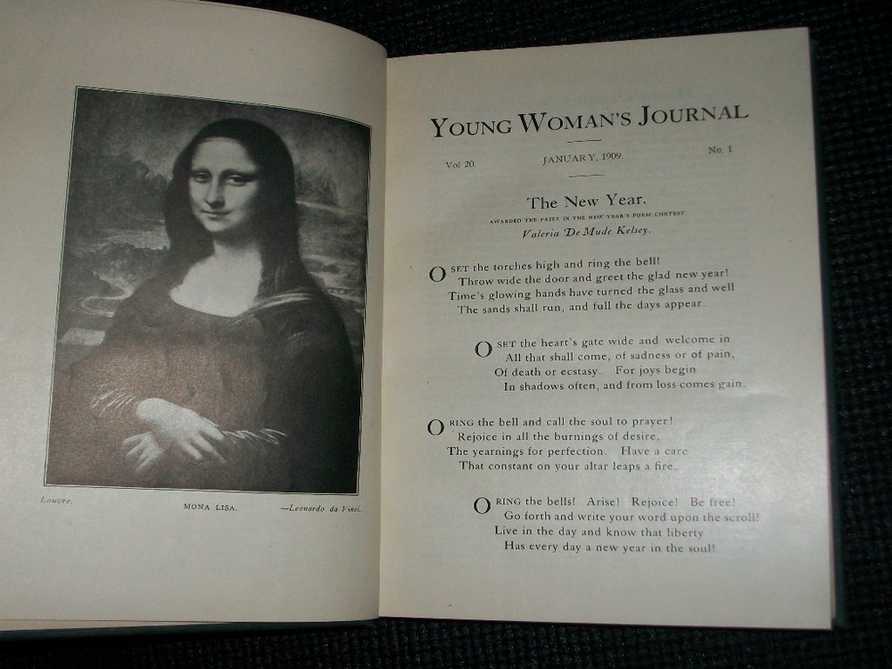 THE YOUNG WOMAN'S JOURNAL Volume twenty This book contains every issue of the Young Woman's Journal printed for the year 1909. It measures 6 1/2" x 9 1/4" and is 640 pages. Condition: Used, Very Good The hardback cover has white stains on the spine. The inside front cover has black marks on it and the front fly page has a Ward name stamped on it. The binding is tight. The pages are in excellent condition, no noticed writing, tears, or creases. SEE MY STORE FOR MORE GREAT ITEMS Please read description carefully and look closely at all pictures. If you have questions or concerns ALWAYS send messages through Ebay messaging and NOT my email address. I am happy to entertain offers but NEVER include shipping in your offer price. Shipping cost is always as stated in item listing. Shipping and Handling Shipping is figured by exact USPS shipping cost, delivery confirmation cost, and $2.00 packaging and handling fee. * I do offer combined shipping based on the weight of the books. To receive the shipping discount items MUST be paid for together. This is an Ebay rule, not mine . To do this, please place items in your Ebay cart and then you will be invoiced for all items together * If item is extremely large or needs special attention the packaging and handling fee might be more, this is very rare!