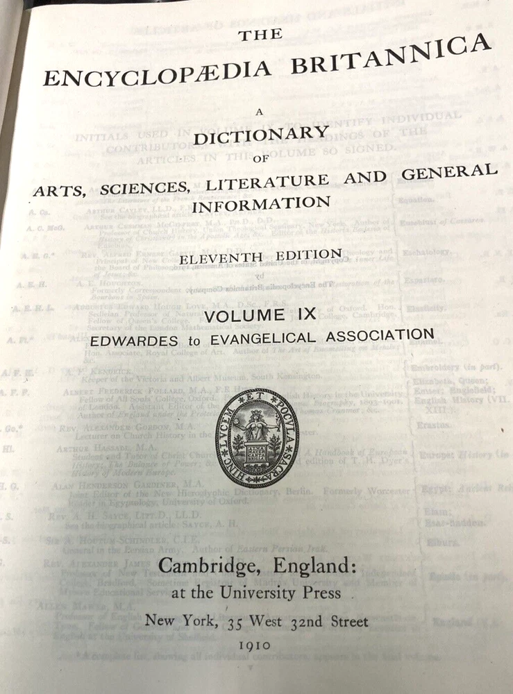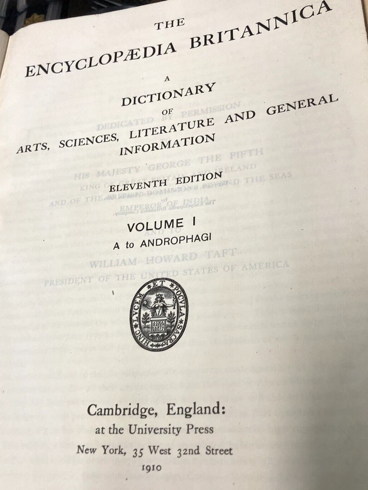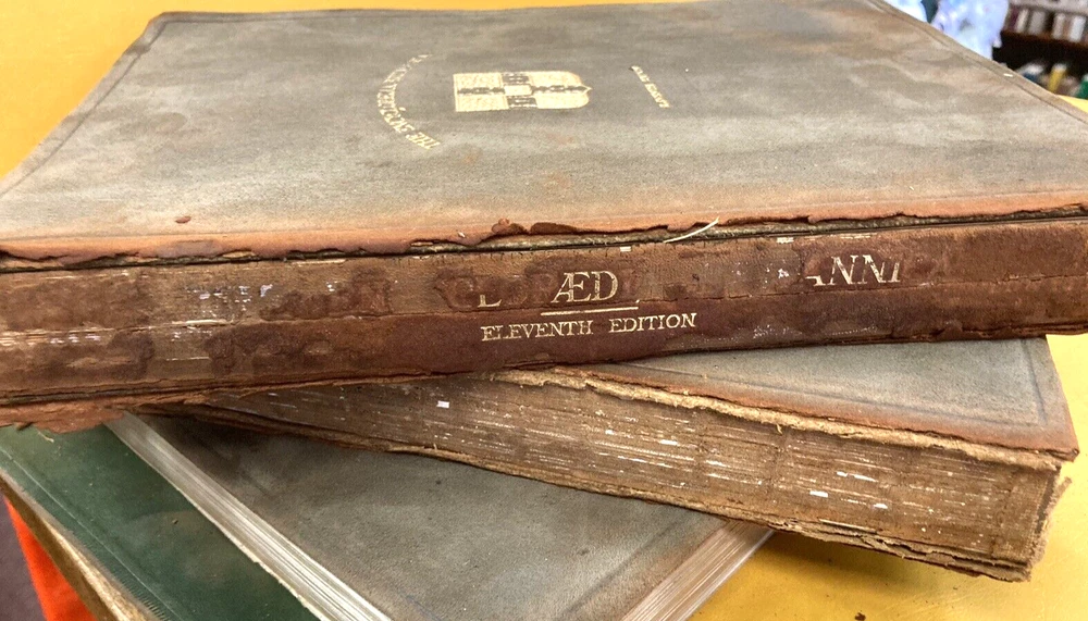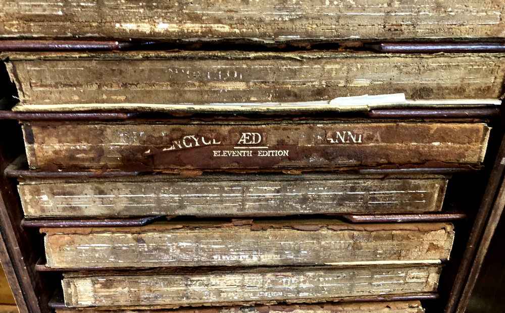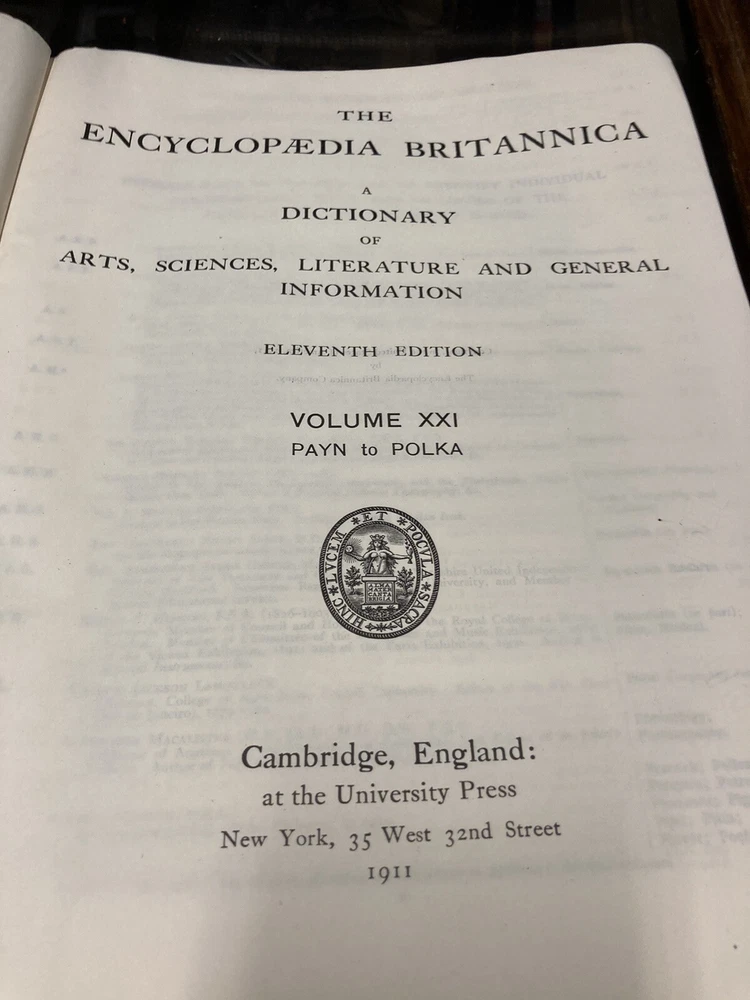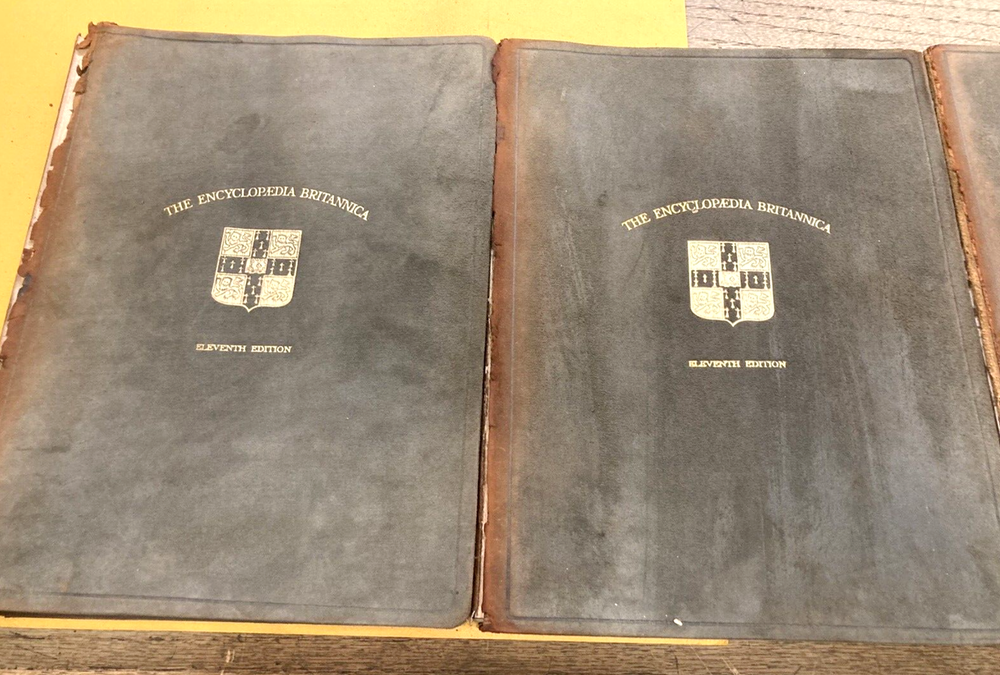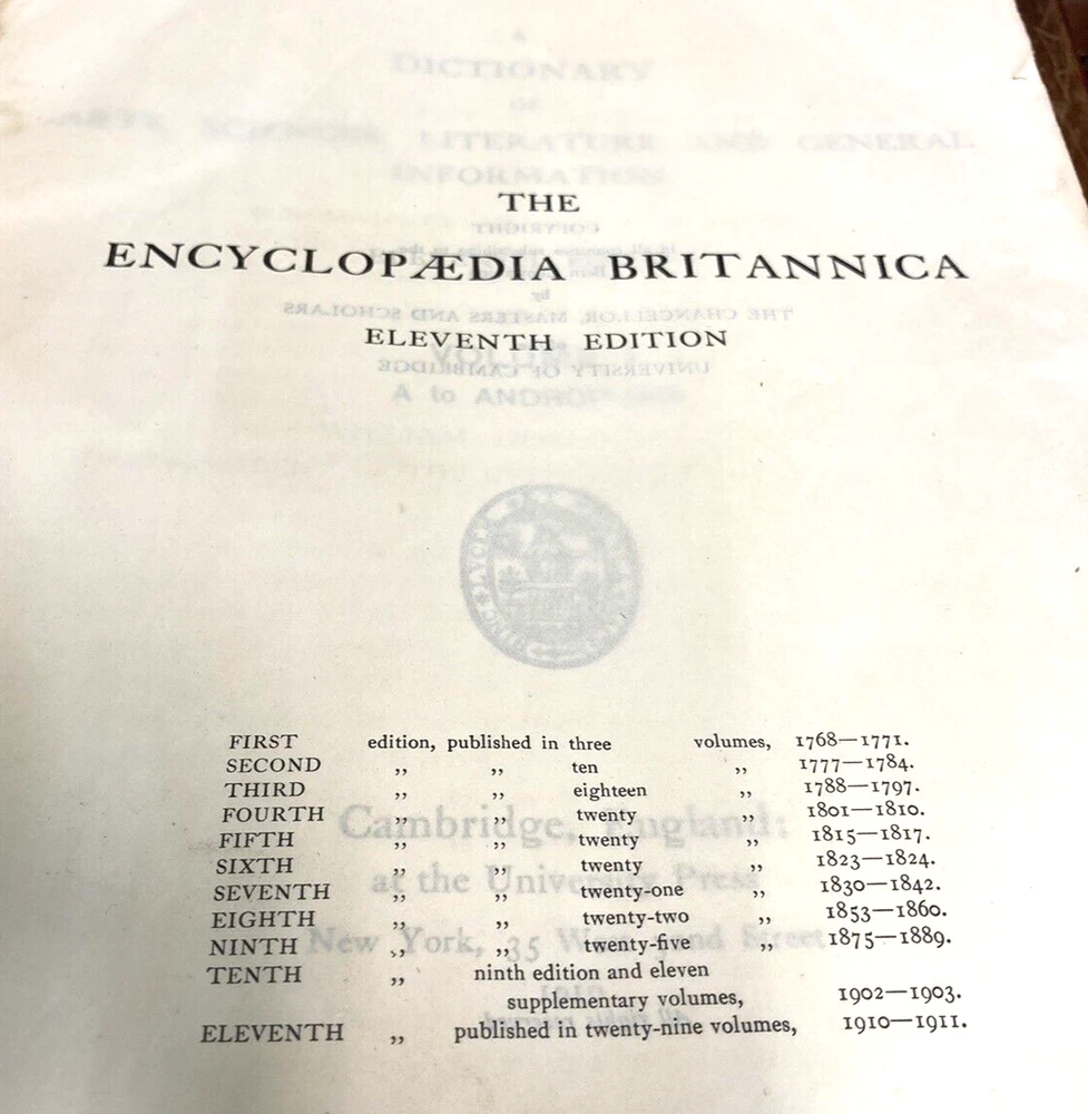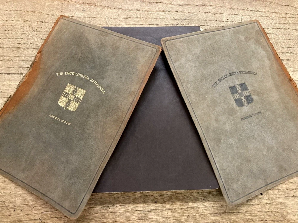 This BUY IT NOW is for a highly sough after 11th edition..1910..of the....ENCYCLOPEDIA BRITANNIACA...with it's original specially made bookcase.....29 volumes with leather/felt covers.....All these volumes are complete, with tight and clean pages...full of GREAT descriptions and colorful maps....THE front and rear covers are present but detached (pic)...most of the spines have issues...BUT all the volumes are wonderful presentations of histories, descriptions, maps, etc. I have listed this as a MAKE AN OFFER item, since I will let the books go separately without the bookcase....and I will ship the books (alone) depending on the offer....The LOCAL PICK UP is for the volumes and the bookcase..... Review all pics...email questions......