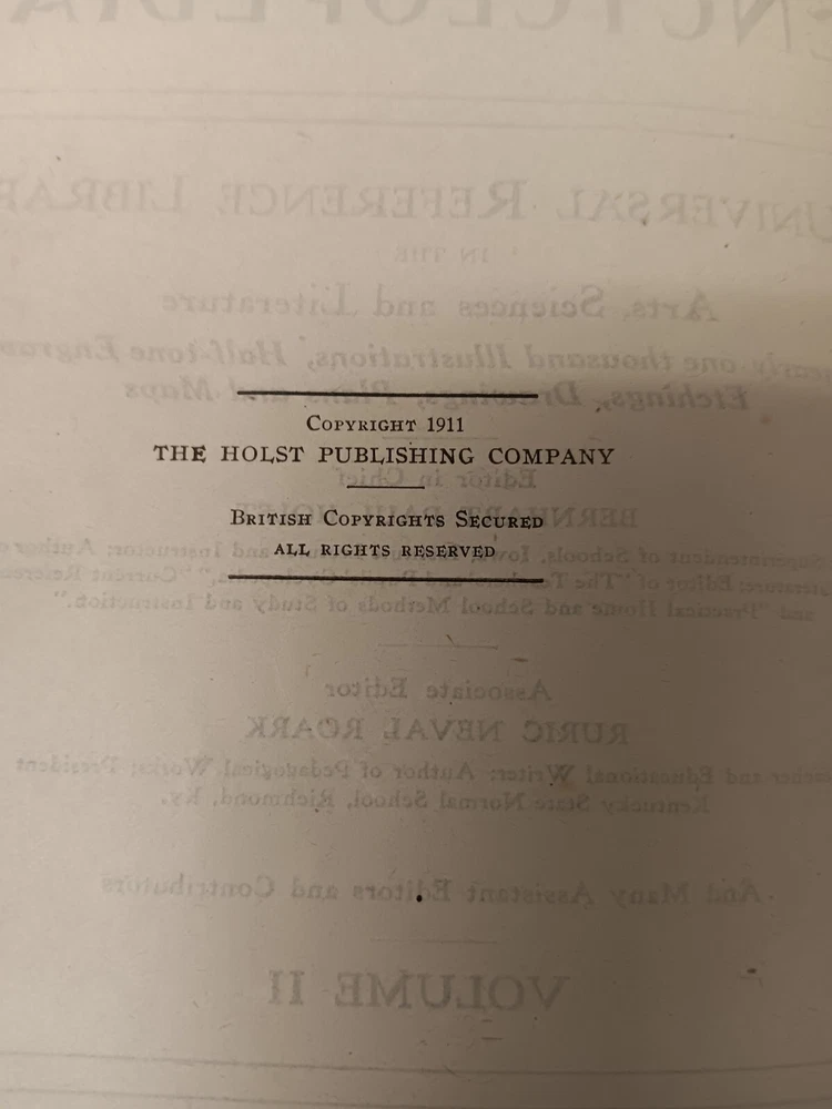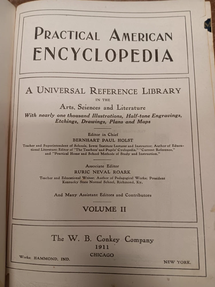 Check Out My Other Ebay Store For More Great Items https://www.ebay.com/str/pebles123?_trkparms=folent%3Apebles123%7Cfolenttp%3A1&_trksid=p3542580.m47492.l74602 https://www.ebay.com/str/mikesmess420?_trkparms=folent%3Amikesmess420%7Cfolenttp%3A1&_trksid=p3542580.m47492.l74602 https://www.ebay.com/str/mikeseverythingshop?_trkparms=folent%3Amikeseverythingshop%7Cfolenttp%3A1&_trksid=p3542580.m47492.l74602 Please Go Check Out My Other Ebay Store For More Great Items. https://www.ebay.com/str/pebles123?_trkparms=folent%3Apebles123%7Cfolenttp%3A1&_trksid=p3542580.m47492.l74602 1911 Practical American Encyclopedia Volume II I HAVE MORE IN MY EBAY STORE. We describe items as clearly and as detailed as possible ie: my pics I offer a 100% return policy minus shipping. If I miss something in the description it is an honest mistake I WOULD NEVER INTENTIONALLY MISREPRESENT PARTS - IT JUST ISN'T WORTH IT. PLEASE RESEARCH THIS ITEM BEFORE BIDDING SEE PICTURES ..... ANY ?? ..... PLEASE ASK ME Bid or buy with confidence, all items are sold subject to the buyer's inspection I have a liberal return policy and I am always happy to help after the sale! Our pictures are part of the description. Please examine them carefully. You get exactly what is pictured. WE DO NOT KNOW THE PREVIOUS OWNER AND IF THEY WERE SMOKERS OR HAD PETS WE PURCHASE VINTAGE ITEMS AND MOST PEOPLE WERE SMOKERS AND HAD WOOD AND COAL BURNERS AND HAD PETS IN THE 50s-NOW PLEASE KEEP THAT IN MIND IF YOU CANT HANDLE SMOKE But please keep in mind that I am not a Collector or Expert. Please contact seller immediately if unhappy with your purchase and before opening a case, leaving negative, neutral, or a low detailed seller rating 1, 2, or 3 and we will work with you to resolve the issue. I WILL SEND WITHIN 1 DAY PLEASE DO NOT GIVE BAD FEEDBACK FOR SLOW SHIPPING Item Shipped in 1 business day, not including weekends, and holidays. Items shipped economy, or media can take 2-6 weeks for delivery I WILL ACCEPT RETURNS FOR GOOD REASONS