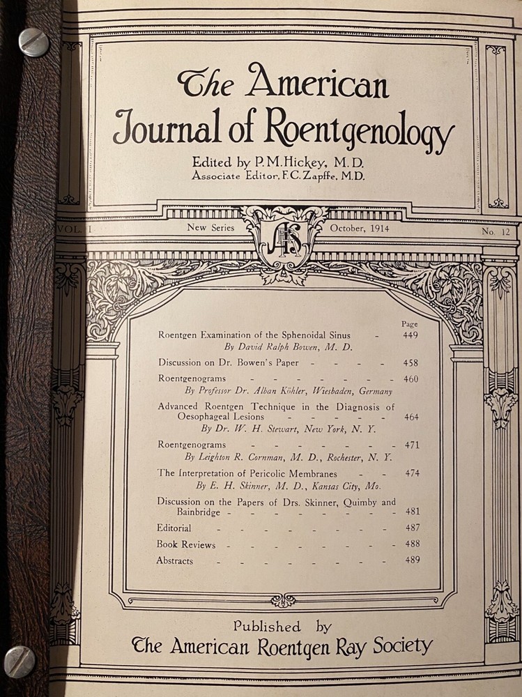 1913 American Journal Of Roentgenology Vol.1, No.1 Nov. 1913-Oct. 1914. Shipped with USPS Media Mail. Binding is in very rough shape, but the actual journals are in extremely good shape. No yellowing,...