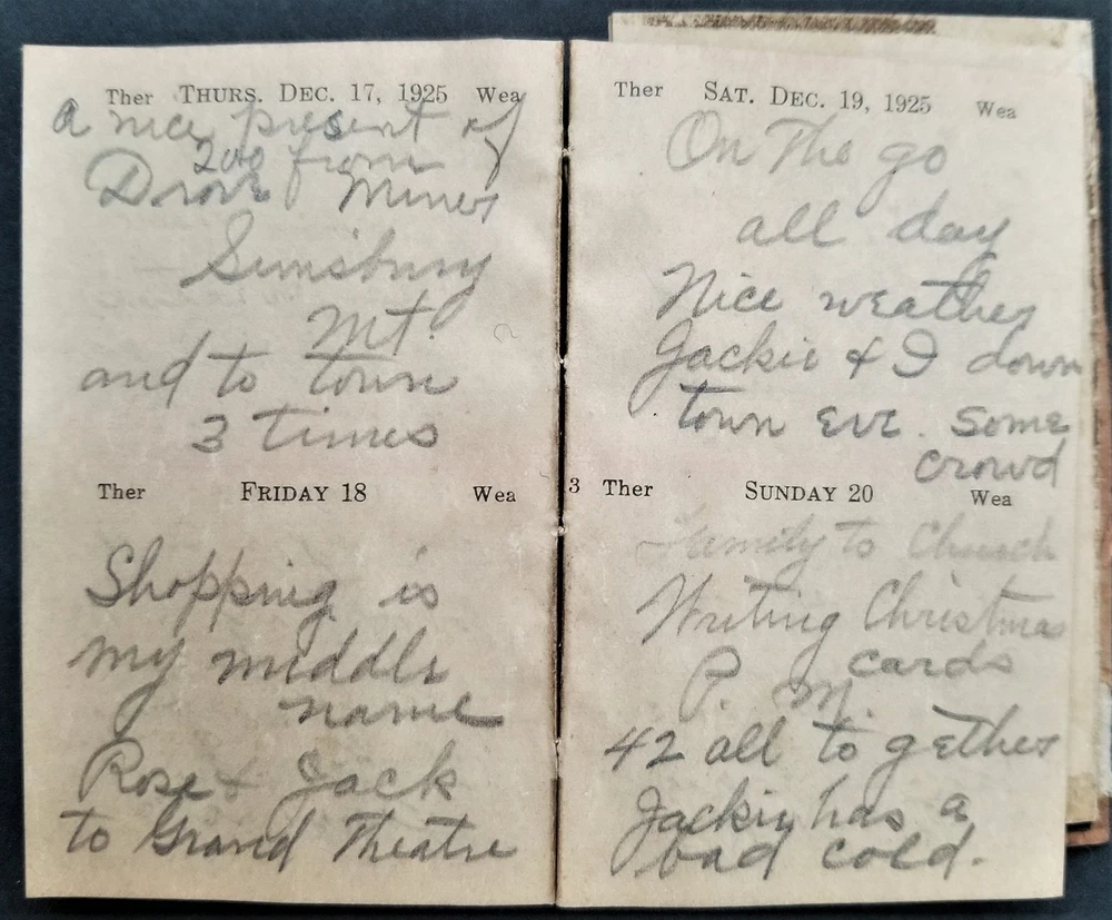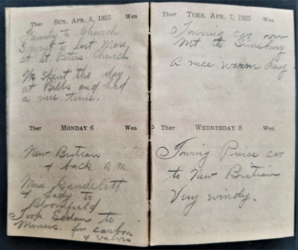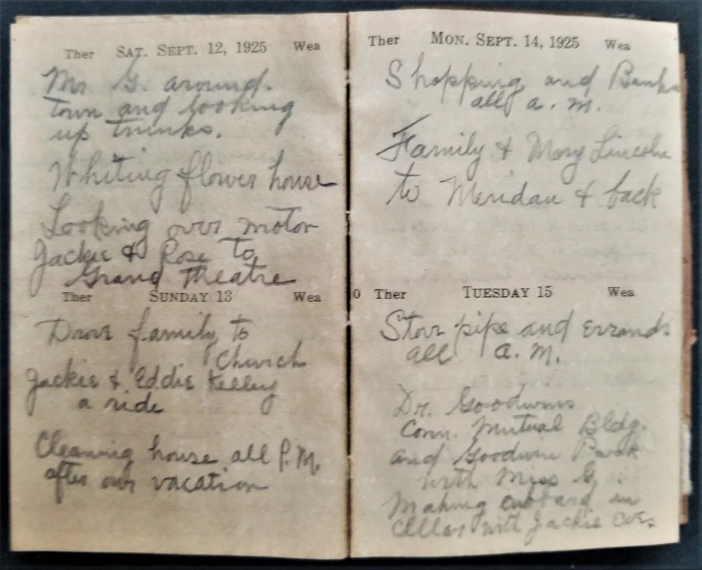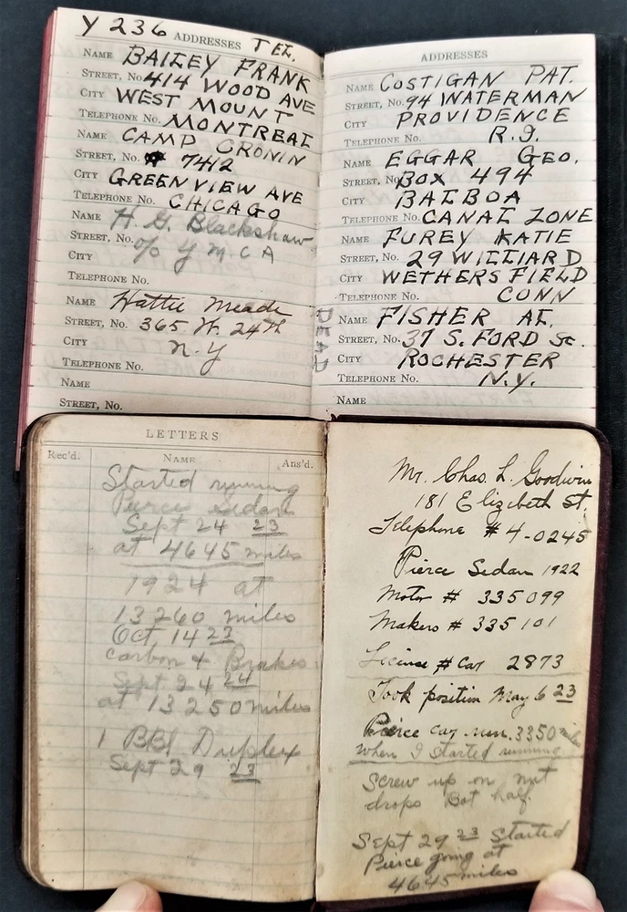 1920s LOT antique DIARY hartford ct GEORGE P MEADE 5pc diaries SCROLL DOWN for MORE PHOTOS in DESCRIPTION Click HERE to view or search ANTIQUE.COTTAGE listings. This listing is for the lot of diaries shown. Looks like most of the dates are filled out. You get the following years: 1920 pretty good cover. 1921 pretty good cover 1924 shiny gold page edges 1925 (cover separated into 3 pieces) 1929 - cover is pretty good with a little tear Name: George P Meade [Geroge P Weade] Birth Year: abt 1885 Gender: Male Race: White Birthplace: New York Marital Status: Married Relation to Head of House: Head Home in 1930: Hartford, Hartford, Connecticut, USA Map of Home: View Map Street address: Albany Avenue Ward of City: 5 Part of Block: 27 House Number: 62 Dwelling Number: 80 Family Number: 172 Home Owned or Rented: Rented Home Value: 25 Radio Set: Yes Lives on Farm: No Age at First Marriage: 30 Attended School: No Able to Read and Write: Yes Father's Birthplace: New York Mother's Birthplace: New York Able to Speak English: Yes Occupation: Chauffeur Industry: Private family Class of Worker: Wage or salary worker Employment: Yes Household Members: Name Age George P Meade 45 Bose E Meade 45 John J Meade 14 Excellent original early family, and/or town genealogy, history, antique, museum, collectible heirloom and/or ephemera. CONDITION : See listing description and photos. Covers are fragile with wear and some tear. - International buyers are responsible to pay VAT or other Taxes to their countries as required. - eBAY collects and remits sales tax on behalf of several states. If you are a dealer, you can write to eBay to file a form to become tax exempt. LOC: LOC2: 78-MULTI-TMK Powered by SixBit's eCommerce Solution