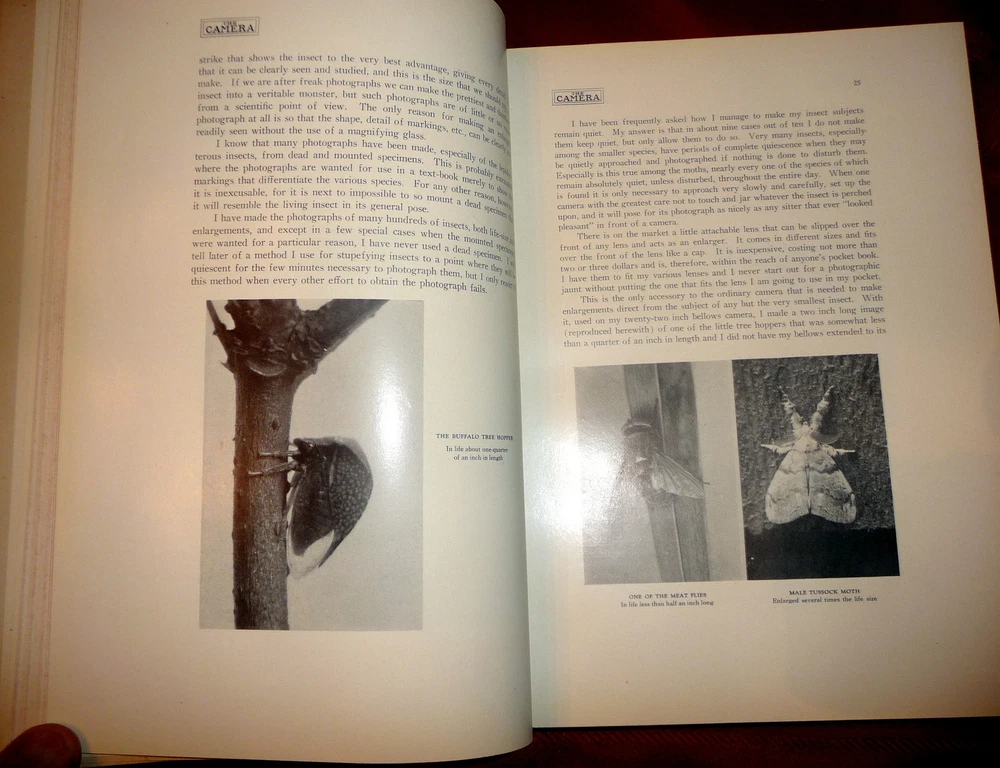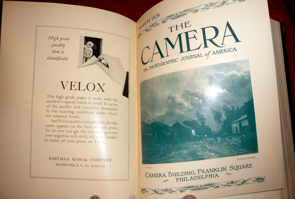 1928 The Camera / Photographic Journal of America. Chambers 2 bound Volumes Click to Enlarge Click to Enlarge Click to Enlarge Click to Enlarge Click to Enlarge Click to Enlarge Click to Enlarge Click to Enlarge Click to Enlarge Click to Enlarge Click to Enlarge Click to Enlarge Click to Enlarge Click to Enlarge Click to Enlarge Description: The Camera The Photographic Journal of America An Illustrated Magazine Devoted to the Advancement of Photography Edited by Frank V. Chambers Volume Thirty-Six January to June 1928 AND Volume Thirty-Seven July to December 1928 Frank V. Chambers, Philadelphia, 1928. First editions. Hard cover volumes. Three-quarter leather over cloth-covered boards with gilt spine titles, quartos, 384 + 386 pages plus hundreds of advertising pages; b&w photographs and photography & camera-related illutrations. Each volume includes the Annual Index and each of the 12 bound issue is complete with the original wrappers. THE CAMERA was founded in 1897 by Frank Chambers. It merged in 1923 with THE PHOTOGRAPHIC JOURNAL OF AMERICA . Published monthly, with the volume number ranging from 6 to 12 issues at various times. The monthly journal was largely concerned with technical considerations, it reproduced b&w photographs by amateurs and accomplished Pictorialists. Scarce 1928 bound volumes of the important photography journal. CONDITION: Good Covers and Fine Contents. (Leather chipped and rubbed, cracked at spine joints, severe crackling and peeling of leather on spine, worn at corners and spine ends. Company name and signature of original owner on blank front endpapers. The Contents are essentially Fine; Clean, complete and intact with light age toning of paper. The bindings are tight.) Check our other auctions and store listings for additional unusual items. ( Click here to view all of our auctions ) Shipping and Payment Information Shipping : DOMESTIC Domestic Media Mail shipping, including Delivery Confirmation and Insurance, is standard. This applies to any address in the US and Puerto Rico, as well as to APO addresses. Media Mail, available only for domestic shipping, is trucked to its destination, and shipped by boat to Alaska, Hawaii and Puerto Rico, On the average it takes 3 to 10 days to arrive, depending on the distance and the vagaries of the US Postal Service. Shipments to Alaska, Hawaii, APO and other off-shore addresses take longer to arrive. During the pre-Christmas season, Media Mail is subject to delays. When filling out the Ebay Detailed Seller Ratings, please keep in mind that the sometime slow arrival is due to the performance of the Postal Service and not to any tardiness on the part of the seller. For expedited domestic mailing, Priority Mail shipping can be arranged at an additional cost. For most books, we charge between two and nine dollars for this service, including delivery confirmation and insurance. For heavy sets or high-value books, the charge may be higher. INTERNATIONAL For international shipping, we urge bidders to request quotes of shipping costs before bidding. We will also specify international shipping options and prices after the conclusion of the auction. We will try to provide a range of options but buyers should be aware that all shipments are via air mail and shipping of heavy books can be expensive. COMBINED SHIPPING For international transactions, combined shipping of multiple lots can substantially reduce postage. This is especially the case for M-Bag shipments of up to 11 lbs and for multiple volumes that will fit into a single Priority Mail flat rate box. For the above options, the postage rate is fixed independently of the weight. INSURANCE All of our domestic shipments are fully insured. Payment : No credit cards except through PayPal. Paypal payments should be in US Dollars but Euros are also acceptable if prior agreement is obtained. As of October 2008, Ebay is imposing the requirement that all payments be made via Paypal. We understand that this requirement may be a problem to some of our customers and we will do our best to accommodate their needs. inkfrog terapeak Listing and template services provided by inkFrog