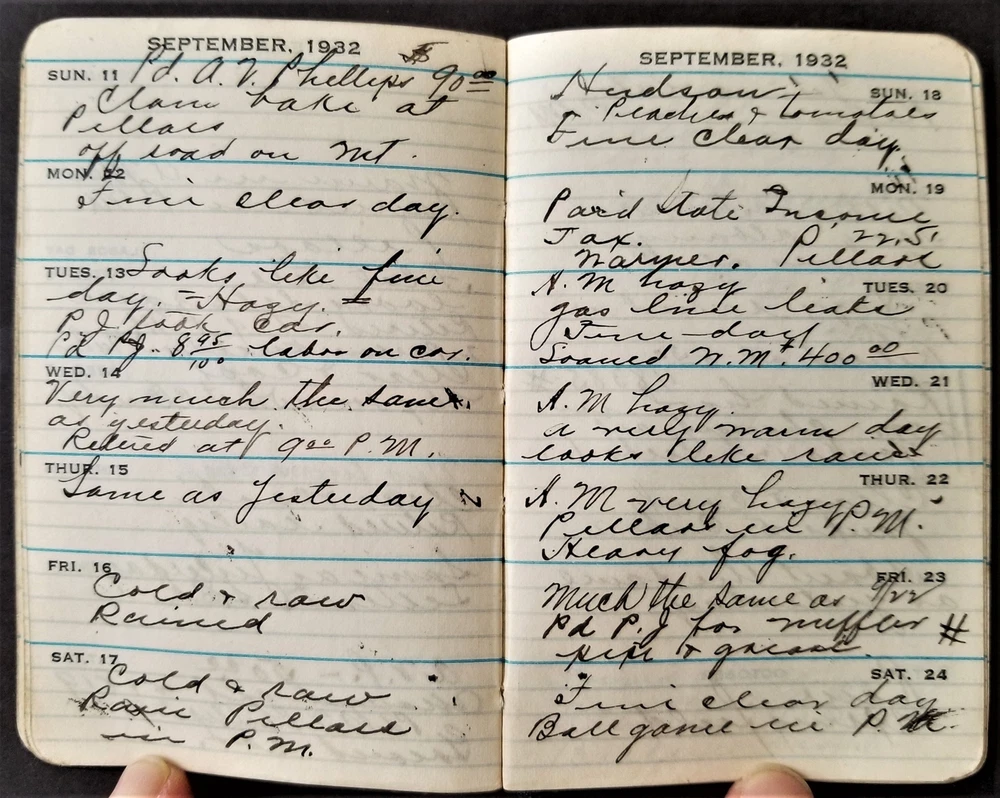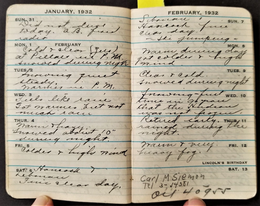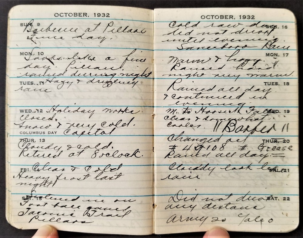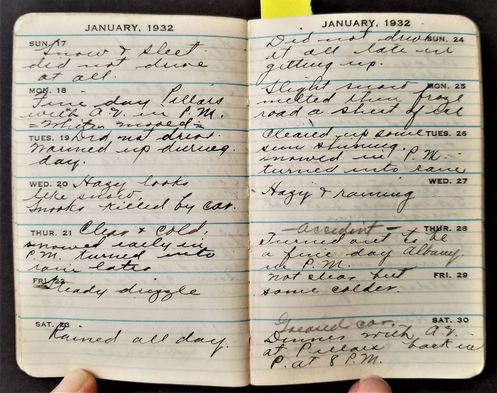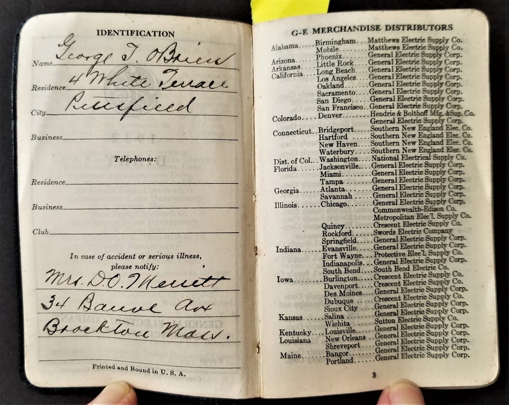 1932 antique DIARY Pittsfield ma Geo OBrien in leather general electric journal SCROLL DOWN for MORE PHOTOS in DESCRIPTION Click HERE to view or search ANTIQUE.COTTAGE listings. This listing is for leather GE journal which measures approx 4-3/8"x3". Daily notes handwritten, much about weather, and some other little tidbits from George O'Brien of Pittsfield Massachusetts. There are additional pages of maps and other, and a couple other handwritten pages with notes. Excellent original early family, and/or town genealogy, history, antique, museum, collectible heirloom and/or ephemera. CONDITION : See listing description and photos. - International buyers are responsible to pay VAT or other Taxes to their countries as required. - eBAY collects and remits sales tax on behalf of several states. If you are a dealer, you can write to eBay to file a form to become tax exempt. LOC: LOC2: SMALLBOOKS07-TMK Powered by SixBit's eCommerce Solution