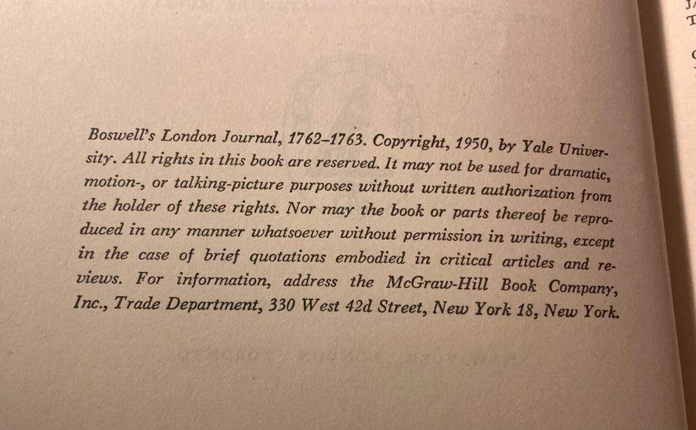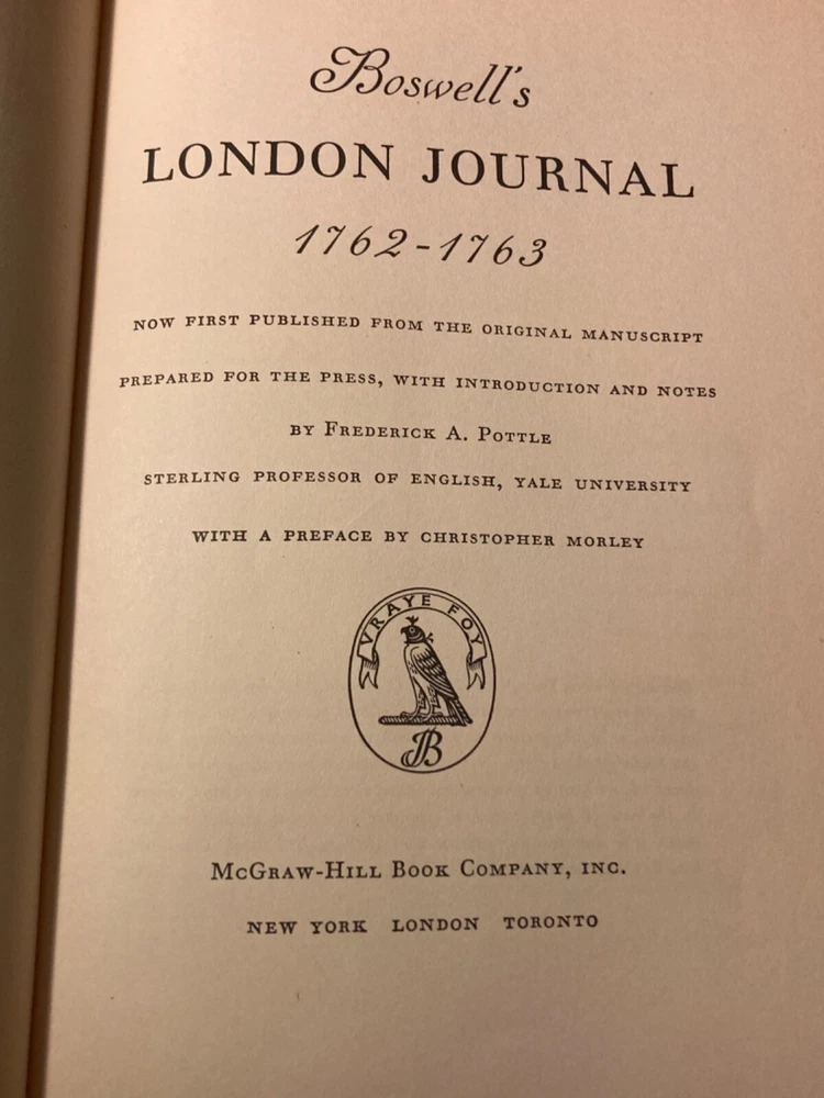 1950 Yale editions: first published from the original manuscript. Prepared for the press, with introductory notes by Frederick A. Pottle (sterling professor of English, Yale University) w/ preface by Christopher Morley Very nice condition. Light wear on the edges of the marbled boards. Fine leather spine in great condition. Binding is strong. No loose pages. No foxing of pages. No smoke odors. No Board Separation. You certainly won’t be disappointed with condition. Please see all photos and feel free to reach out with any questions/offers you might have. And as always, your items will come well packaged to ensure no damage during transit. I’ve only just started selling here on eBay, but I’ll be uploading 1000s of items (mostly collectible and/or rare books) over the next year. Give my account a follow to periodically get alerted when new items are uploaded. Roughly 5-10 new items will be uploaded a day… no common theme: just a random assortment of rarities, oddities and collectibles (mostly books) I will always strive to give repeat customers better deals whenever possible