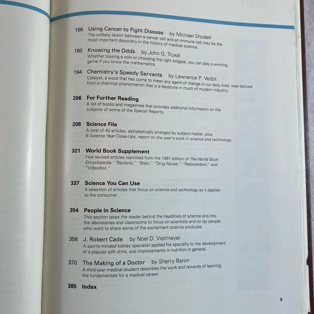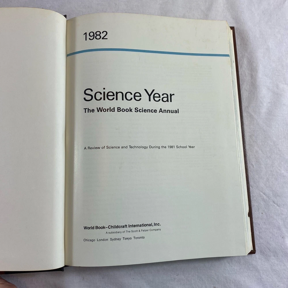 This special edition encyclopedia from 1981 is a must-have for anyone interested in the topic of science. The book is beautifully bound in faux leather and features illustrations throughout. Published by World Book Encyclopedia, the book covers a wide range of topics in the field of science, making it a valuable resource for young adults and adults alike. The vintage book, titled "1982 Science Year” is part of the "World Book Science Year" series. It is written in English and contains information on various scientific topics, including biology, chemistry, and physics.