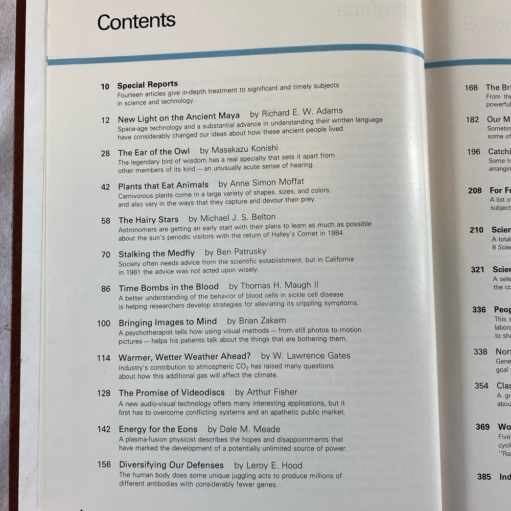 This special edition encyclopedia from 1982 is a must-have for anyone interested in the topic of science. The book is beautifully bound in faux leather and features illustrations throughout. Published by World Book Encyclopedia, the book covers a wide range of topics in the field of science, making it a valuable resource for young adults and adults alike. The vintage book, titled "1983 Science Year” is part of the "World Book Science Year" series. It is written in English and contains information on various scientific topics, including biology, chemistry, and physics.