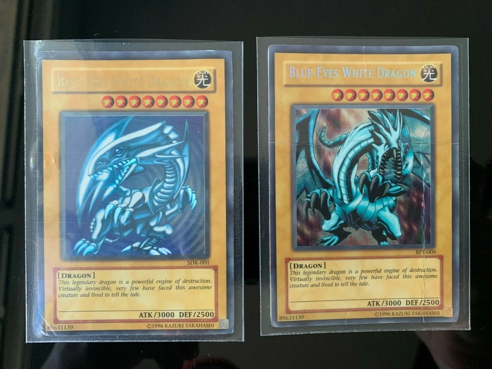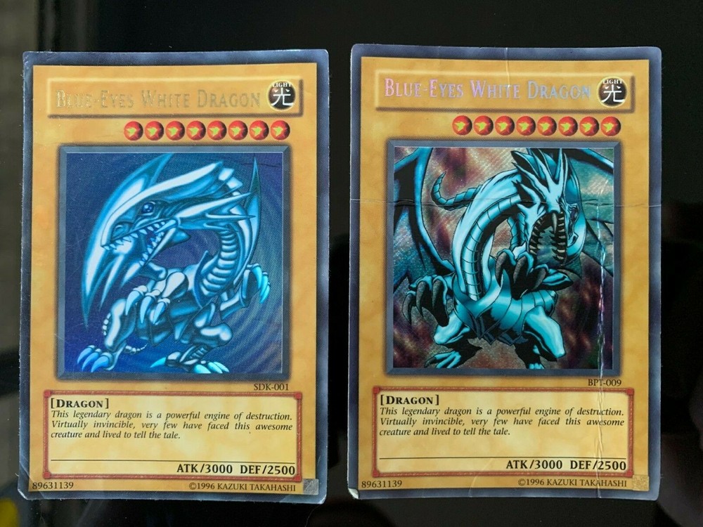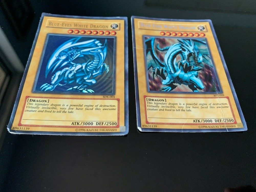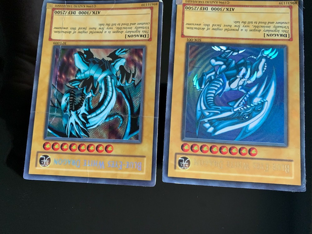 1996 Yu Gi Oh - Blue-Eyes White Dragon Secret Rare BPT-009 & SKE-001. Damaged corners and creases across. Thank you....