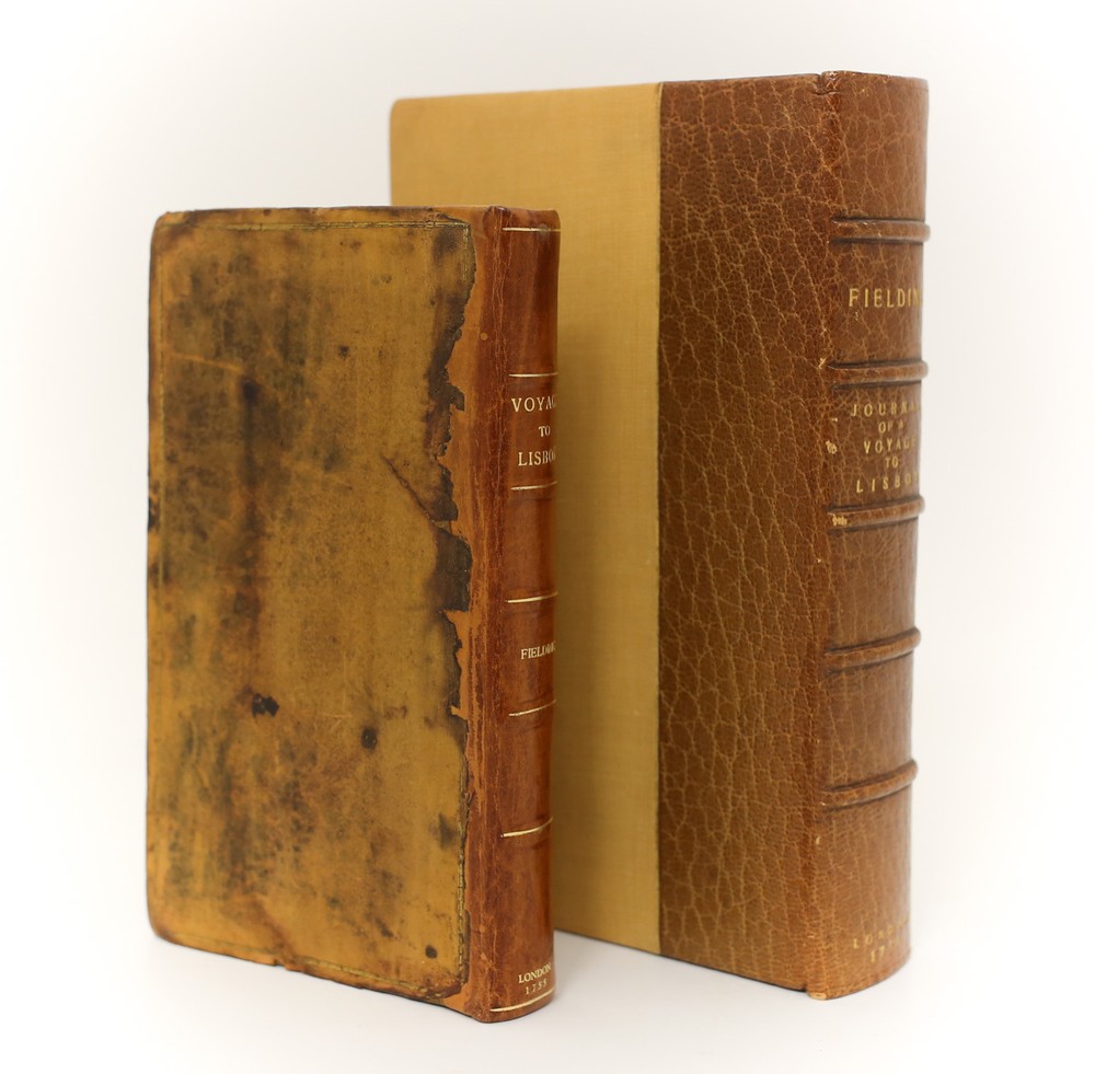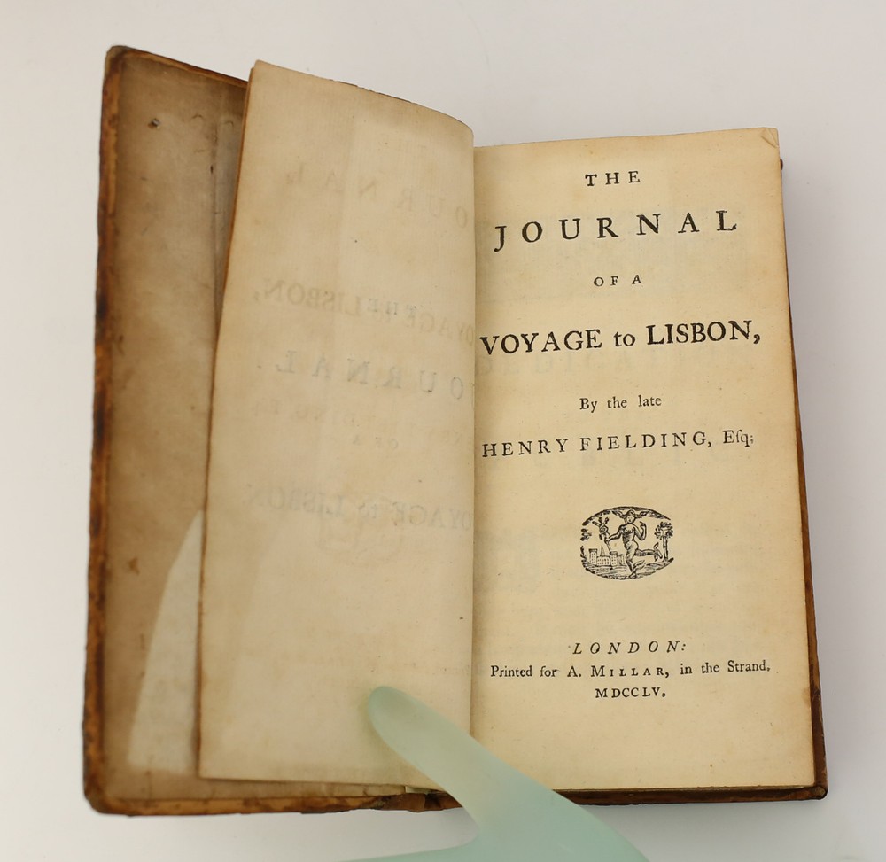 Description: Fielding, Henry 'The Journal of a Voyage to Lisbon'. A Millar, London, 1755. 1st Edition Leather Hardback book w/ New Spine, brown binding and cloth. Gold lettering. Leather and cloth slipcase, 228pp. Weight 8oz. Measures Approx. Book 4 x 6.25 x 1inches Condition: Spine replaced, leather cover edgeworn, discolored, darkened. Endpapers darkened, foxing, chipping. Foxing to pages. Tight. Slipcase has some shelf wear, split to the hinge. Please view photos, and contact us with questions or inquiries. sch96 We have a fine selection of quality items for sale at Amphora Art & Antiques. International as well as domestic customers are welcome - please contact us with questions regarding shipping or listings, and we will assist you quickly. All items can be inspected in-person or are available for pickup from our large Wilmington, CA warehouse with no additional fee or charge. The authenticity of all items listed are guaranteed to be as represented - all efforts are taken to ensure accurate and descriptive condition reports and photographs. We reserve the right to use another shipping carrier other than what is listed to ensure your purchase arrives safely. Fedex cannot ship to a P.O. Box. Please contact us before or upon purchase if you have a preferred shipping carrier.