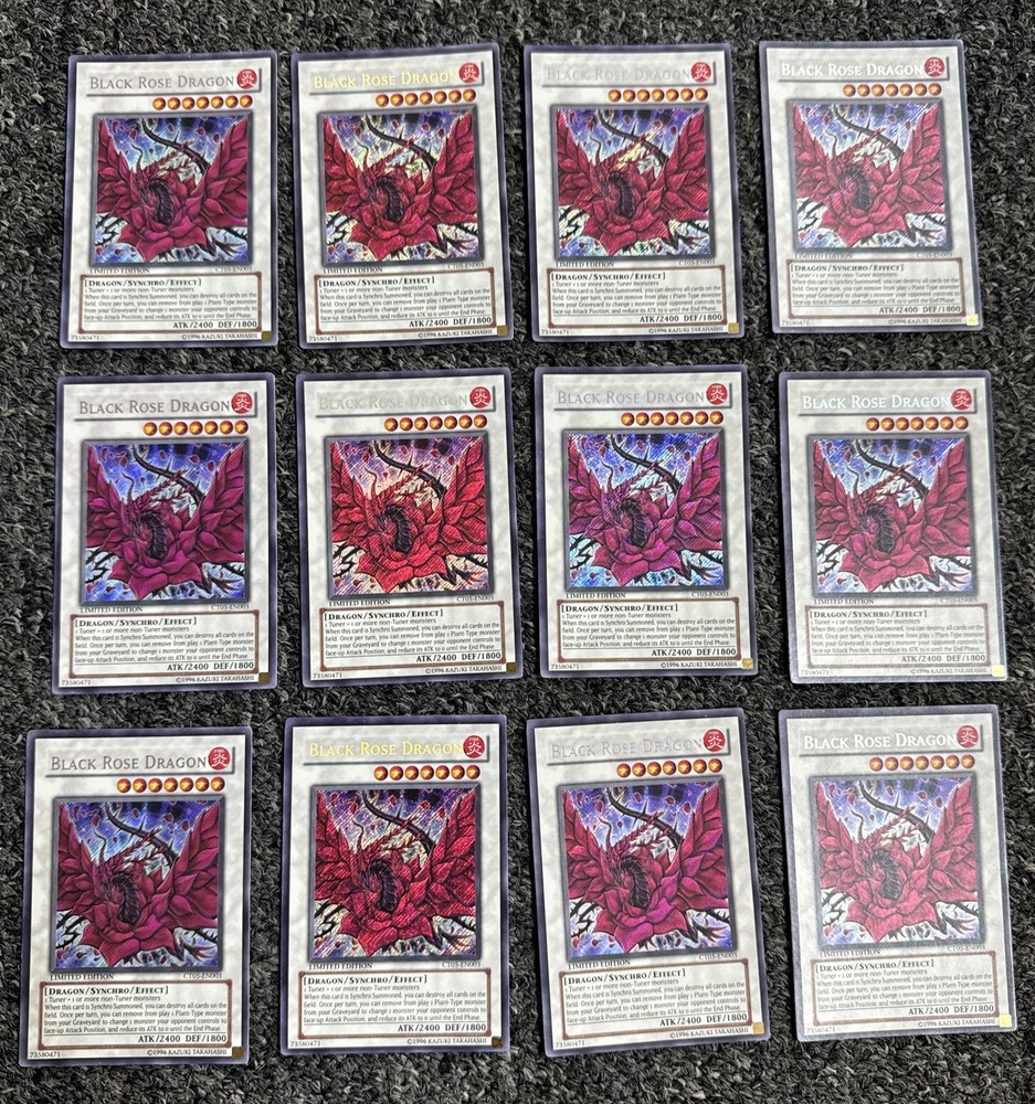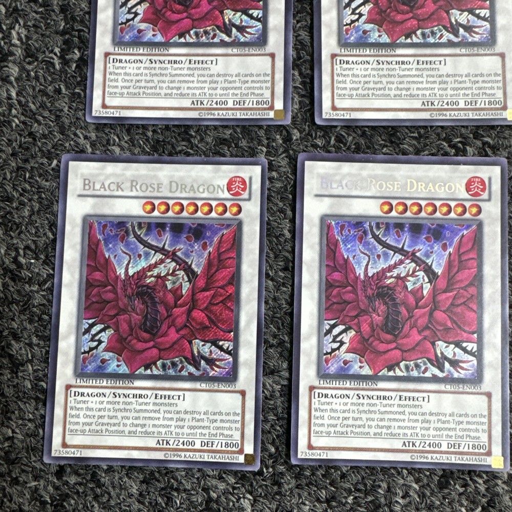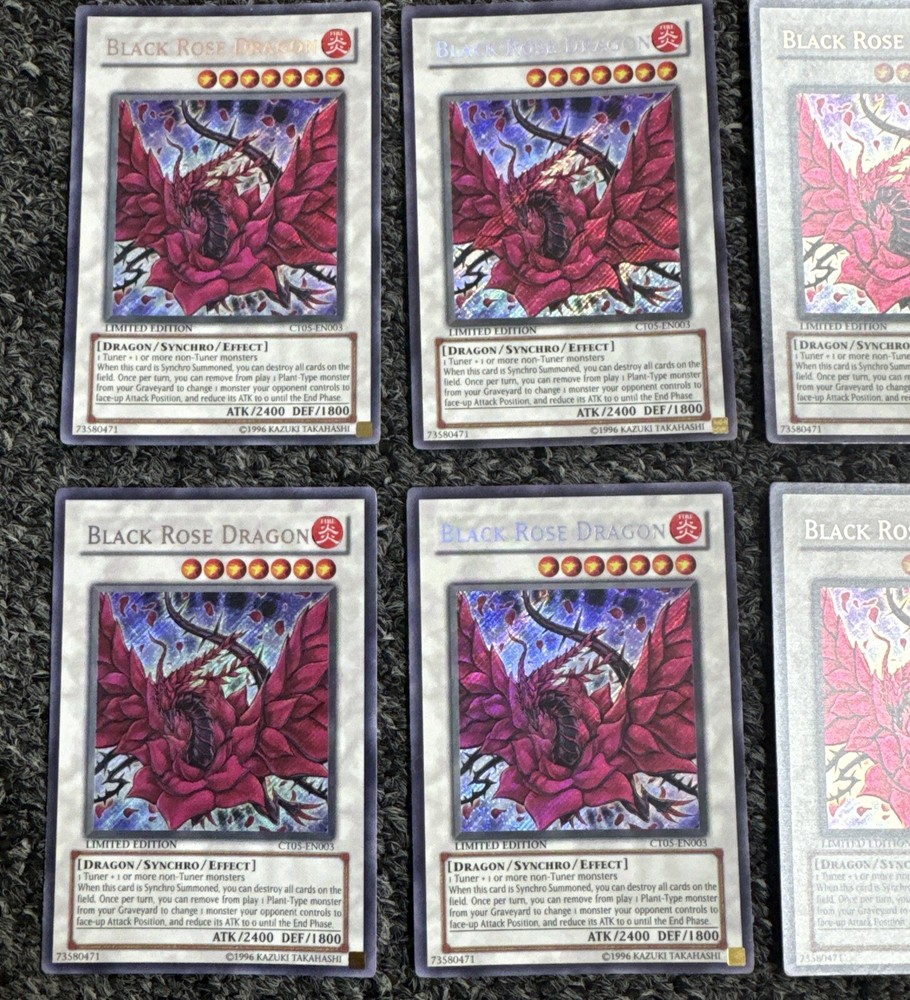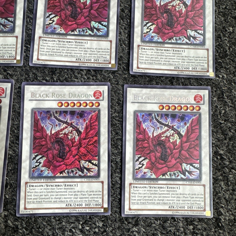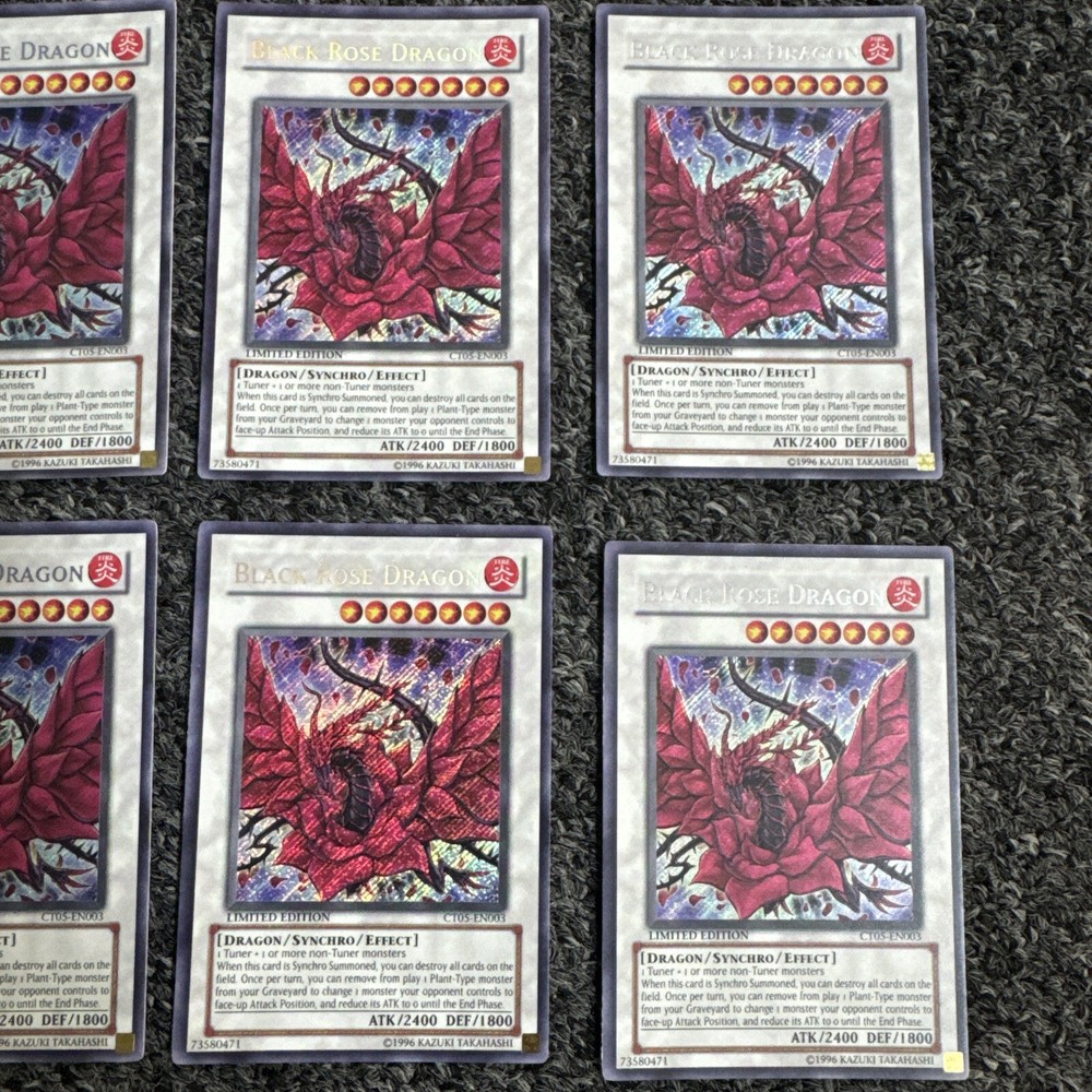 1x Black Rose Dragon CT05-EN003 Secret Rare Yugioh LP. Some have a few light scratches on back and a few tiny indents on back. You receive ONE card per purchase. ***I will consider REASONABLE offers. If you offer 50% off or more I will not consider that a reasonable offer, and will be less likely to consider a lower price. Please do not ask me for a best price and counter with something way lower. I do combine shipping but do not ask for a shipping discount on a single item. We calculate shipping based on weight, size, and location.