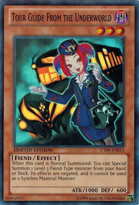 Condition: HP Rarity: Super Rare Limited Edition Tour Guide From the Underworld - CT09-EN013 - Super Rare - Limited Edition IMAGE IS A STOCK IMAGE. PLEASE SEE CONDITION INFO &GRADING DESCRIPTION Domestic Shipping First Class FREE!!! + $0.00 for each additional auction Priority $12.00+ $0.00 for each additional auction International Shipping First Class $7.00+ $0.00 for each additional auction Card Grading Mint/Near Mint (M/NM): Cards in Near Mint condition show minimal to no wear. Excellent (EX): Cards in Excellent condition may have minor wear, or even just slight scuffs or scratches. There are no major defects. Light Played (LP): Cards in Lightly Played condition show moderate wear. Cards in Lightly Played condition may have moderate border wear, mild corner wear, water damage, scratching or scuffing, creases or whitening, minor dirt buildup, or any combination of mild examples of these defects. Played (P): Cards in Played condition show a severe amount of wear. Played condition can include cards that have creasing, border wear. Heavy Play (HP): Cards in Heavily Played condition can exhibit a bend, or crease that may make the card illegal for tournament play, even in a sleeve. Cards in Damaged condition may have extreme border wear, have been written on or major inking extreme corner wear, heavy scratching or scuffing, folds, creases or tears.
