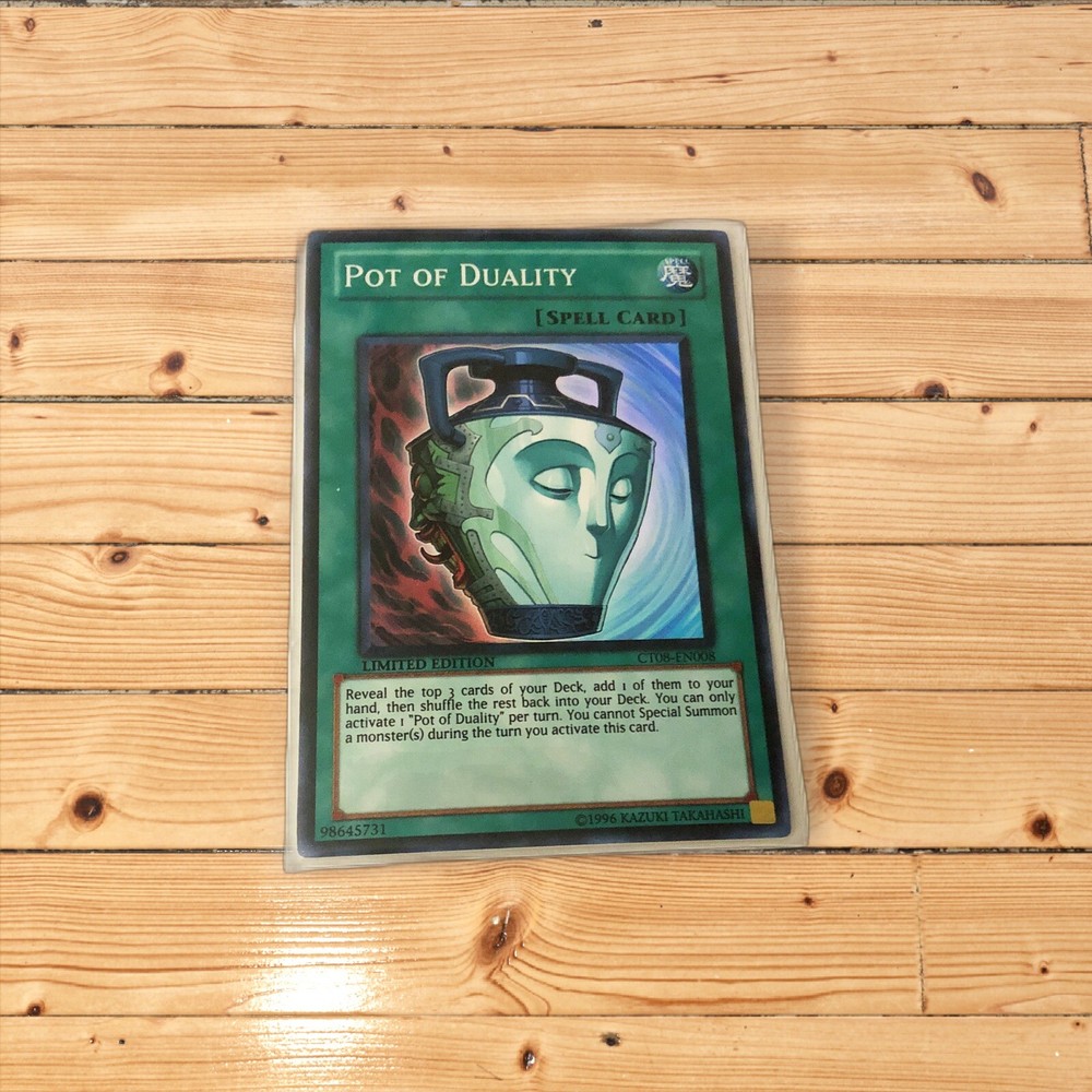 1x Yu-Gi-Oh! Pot of Duality - CT08-EN008 - Super Rare - Limited - NM. Please make sure to review all photos attached of the current condition of the item posted, before placing a bid or purchasing on the current lot item Card was placed directly into Sleeve and Top Loader/ Top Loader will be included with purchase. Shipping from: Canada Shipping to: Canada, USA All card(s) are shipped in a hard plastic top-loader sleeve, securely taped. All item(s) in the listing are 100% Konami TCG authentic and are ready for tournament use. Photo(s) are of the actual item(s). Shipped from a smoke-free and pet-free home. Seller does not provide combine shipping discounts. Returns NOT accepted. All sales are final. Payment method(s) accepted: PayPal Seller reserves the right to cancel, modify or remove the listing at any time.