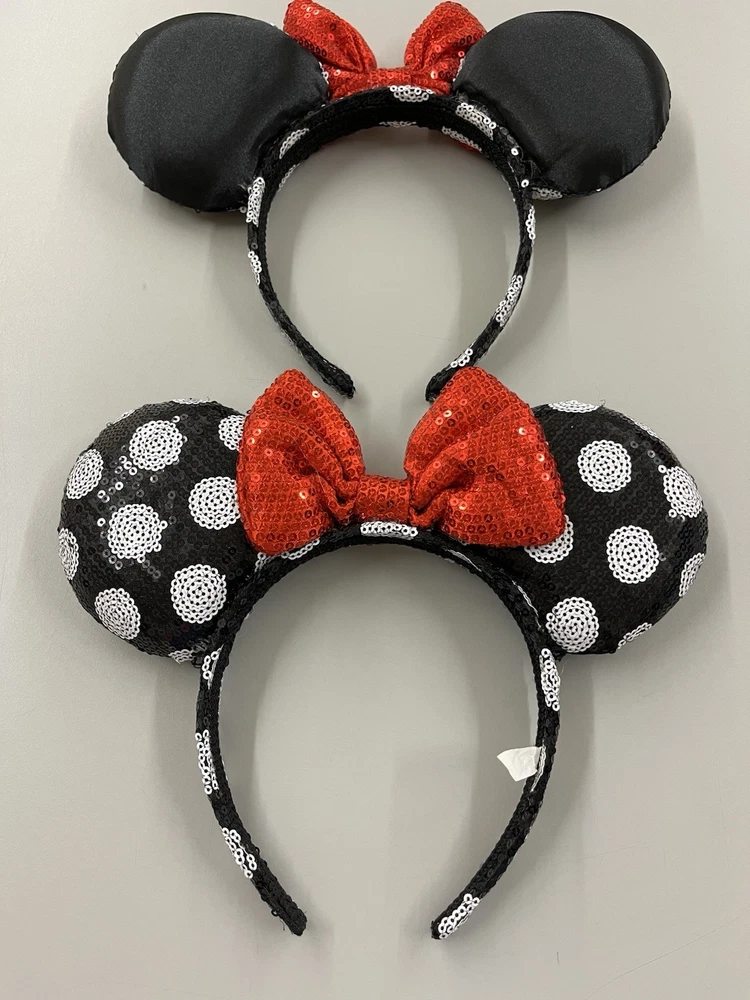 Add a dash of Disney magic to your outfit with these charming polka dot headbands, featuring the iconic Minnie Mouse design that's sure to delight fans of all ages. These one-size headbands, suitable for both kids and adults, are adorned with sequins for a touch of sparkle and are perfect for any visit to Disney Parks or just adding a whimsical flair to your everyday look. Crafted with care and detailed attention, these headbands boast a vibrant red color with classic black ears, capturing the essence of Minnie's timeless style. Whether you're dressing up for a special event or simply want to wear your love for Disney on your sleeve—er, head—these headbands are a fantastic accessory for any Disney enthusiast.