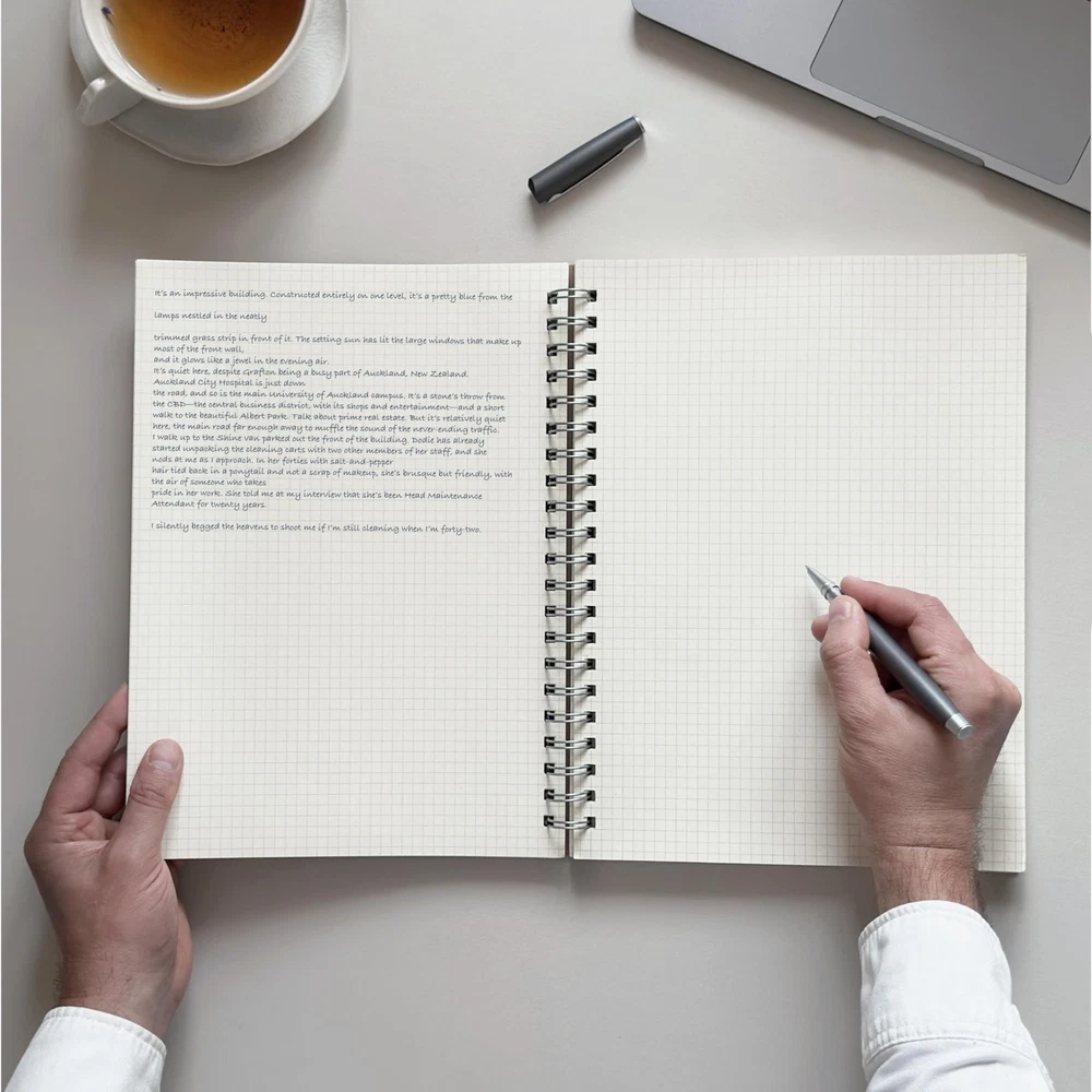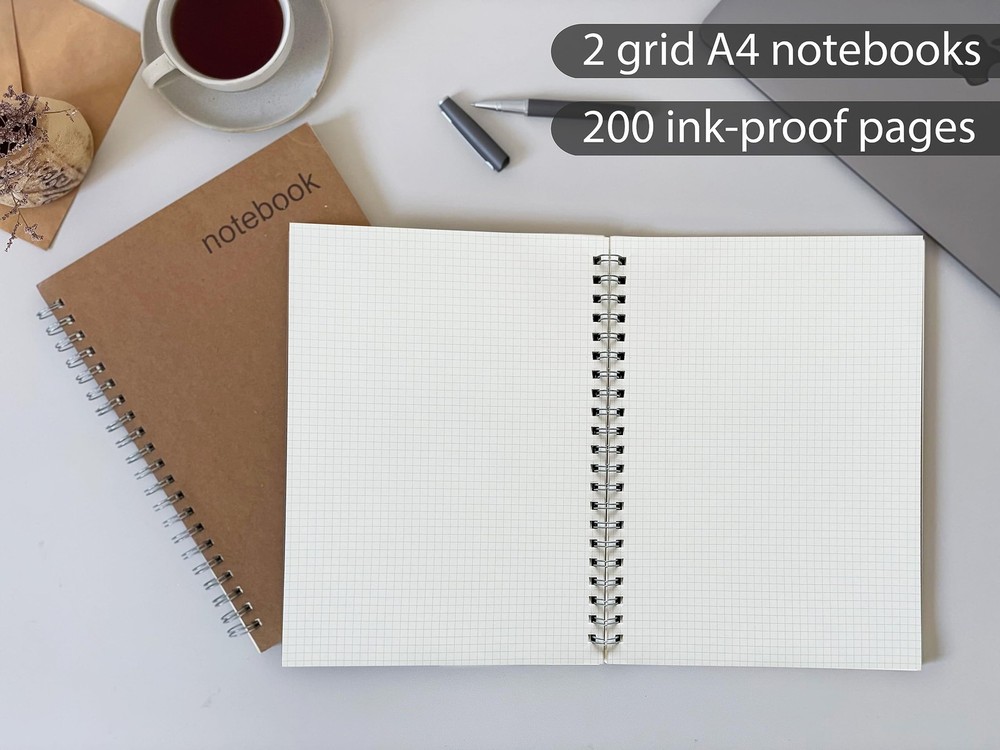 Elevate your mathematical, scientific, and creative pursuits with the 2-pack grid paper large spiral notebook. Designed to cater to the needs of engineers, artists, and thinkers alike, this notebook offers a world of structured inspiration. SPIRAL GRAPH PAPER NOTEBOOK KIT: A4 notebook kit comes with square graph quad ruling, offering the ideal setup for math, science, lab and engineering tasks. HIGH-QUALITY PAPER: With 200 pages of ink-proof 100gsm paper, your computation and sketches remain vibrant and smudge-free. The thick graphing paper of this notebook set guarantees a luxurious feel under your pen or pencil. LAY FLAT GRID NOTEBOOK: Whether you're sketching intricate diagrams or plotting complex data points, the precise grid pattern and lay flat layout will guide your hand with accuracy. JOURNAL REFILL: This large squared notebook pack makes it incredibly easy to refill your large leather sketchbook or journal. Simply integrate them into your favorite leather cover. DESIGNED BY ARTISTS - INSPIRED BY PEOPLE: Our large spiral journal set is designed by artists and inspired by people, providing you with the best journaling experience possible.