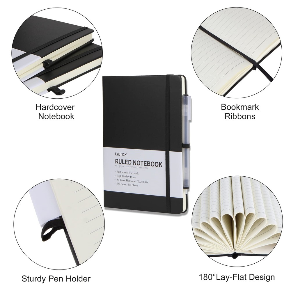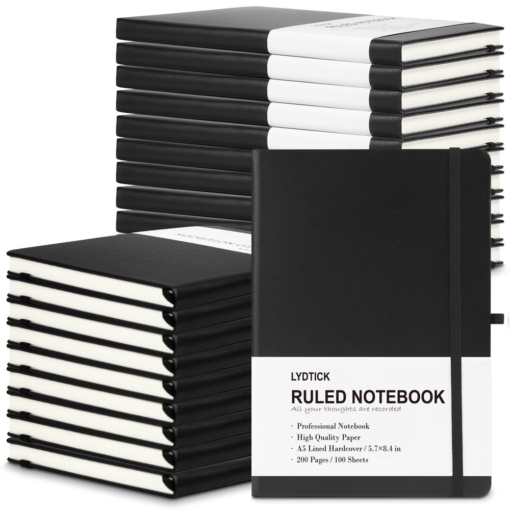 📚VALUE BULK: You will get a total of 20 pack A5 size black notebooks in bulk. With a multi-pack you'll never run out and always have an extra on hand for the home, office, and they are great ideals for back-to-school supplies. 📚PREMIUM QUALITY: brand journal's surface leather is soft and smooth, will protect your journal to last for years. The inner pages are made of 80 gsm thick acid-free paper and cut evenly with minimal ghosting/bleeding. Easy to lay-out flat 180° for comfortable writing and reading. 📚HARDCOVER LEATHER JOURNALS: Professional black durable faux leather notebook journals. The notebooks measure 5.7"x8.4", and these college-ruled notebooks are all blank inside with 200 lined pages (100 sheets), which would be convenient for daily usage. 📚ORGANIZED DESIGN: Each notebook has a pen holder, which is pretty convenient to place a pen. Each ruled journal hardcover notebook has an elastic band to keep pages secure and a page marker/ribbon bookmark to keep organized. 📚BEST CHOICE: These journals are great choices for women, men, girls, boys, and teens. These Hardcover notebooks are suitable for a travel journal, meetings, doing scrapbooks, diary and more, also can be used as class notes for students or learners, office and school supplies.