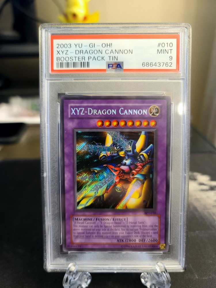 2003 YU-GI-OH! XYZ DRAGON CANNON BPT-010 PSA 9 MINT Card Info 2003 Yu-Gi-Oh! XYZ Dragon Cannon BPT-010 PSA 9 MINT. Please use the drop-down to select which of the 3 PSA slabs you wish to purchase. The price listed is PER SLAB and not the price for all 3. Shipping NOTICE!!! I ONLY SHIP TO EBAY AUTHENTICATED ADDRESSES. Please do not ask me to change the shipping address or I will cancel the transaction. ----------------------------------------------------------------- 99% of all my items ship via USPS. I also use UPS/FedEx as alternatives when USPS cannot cover insured value. All orders typically ship within 3 business days, sometimes sooner. Contact Please feel free to contact me with any questions and/or concerns prior to purchase. Should there be any issues with your shipment upon receipt, please contact me right away. Email responses are usually same day unless received in the evenings (Pacific Time) or on weekends 2003 Yu-Gi-Oh! XYZ Dragon Cannon BPT-010 PSA 9 MINT The slab wil be secured in bubble wrap and placed into a box with ample padding to ensure you receive your card without any issues. CLICK HERE to check my store for more listings of ungraded or PSA/CGC graded loose non-sports cards, comics, as well as toys, collectibles, and more! Links & Other Information: ebay Store: https://www.ebay.com/str/thesmugglersoutpost General Contact: Click HERE Package Includes: Products purchased from this listing packed and secured as described in the shipping description at the top.