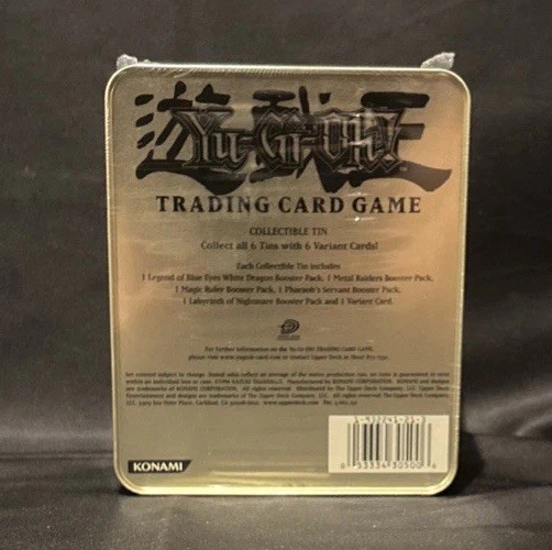 Unearth a piece of Yu-Gi-Oh! history with the 2003 Collector's Tin, featuring the iconic Joey Wheeler/Jinzo design. This tin is a must-have for collectors and enthusiasts alike, offering a nostalgic trip down memory lane. Fresh from the factory seal, the contents within are waiting to be discovered, just like it was over a decade ago. Each pack is in English and maintains the standard card size, perfect for seamlessly integrating into your existing collection. Proudly manufactured in the United States by Konami, this vintage set is a testament to the enduring legacy of the Yu-Gi-Oh! TCG. Whether you're looking to reminisce or complete your collection, this 2003 Collector's Tin is a treasure trove waiting to be unlocked.