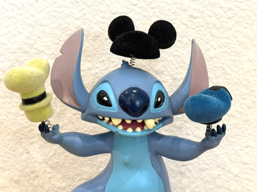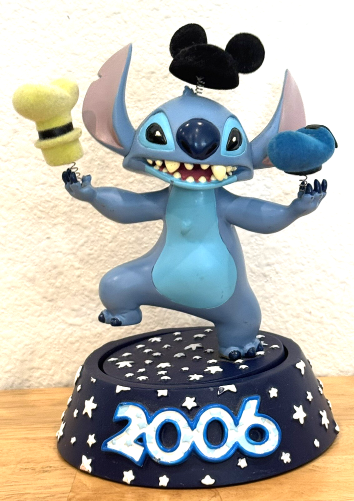 2006 STITCH BOBBBLEHEAD TILTING HAT WALT DISNEY WORLD MAGIC KINGDOM GREAT ESCAPE. MEASURES ABOUT 6.5"H X ABOUT 4" DIAMETER NOTE: IHAS A SMALL CHIP ON HIS LOWER LEFT LIP (SEE PIC). OTHERWISE IN VERY GOOD PRE-OWNED CONDITION. SHOWS SOME SHELF WEAR ON THE BOTTOM SHIPPING WILL BE $7.59 COMBINED SHIPPING FOR MULTIPLE AUCTIONS WON.