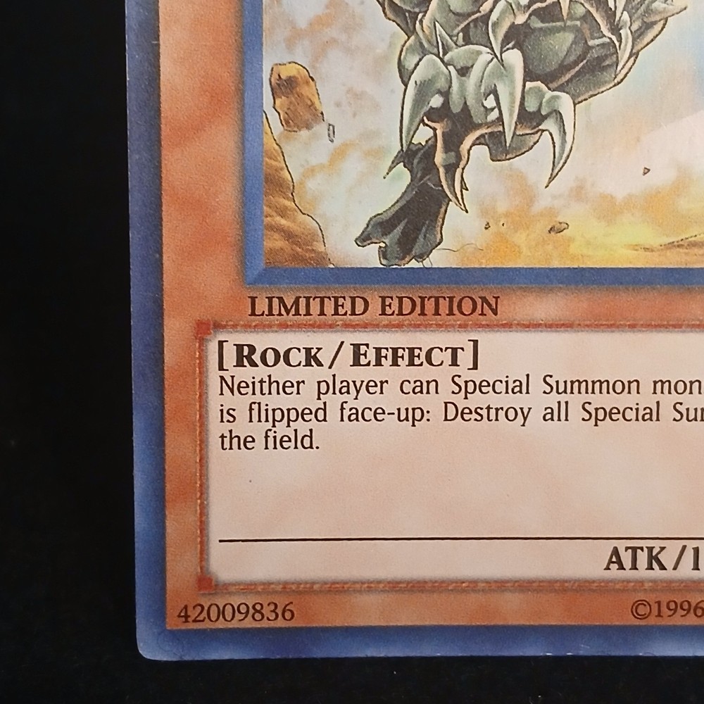 | Card Text | Neither player can Special Summon monsters. When this card is flipped face-up, destroy all Special Summoned monsters on the field. |
