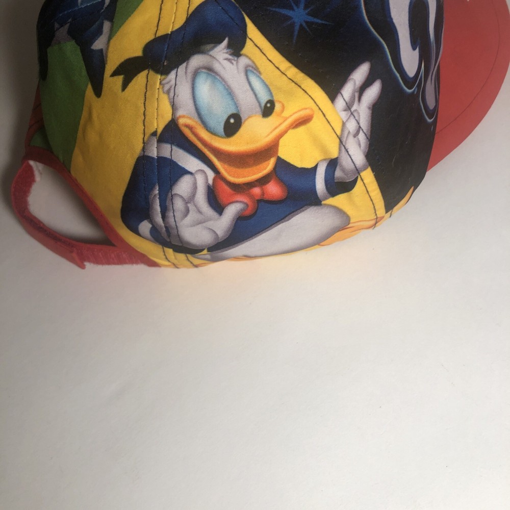 This colorful baseball cap is a must-have for any Disney fan! Featuring the iconic Mickey Mouse and Donald Duck character, this adjustable cap is suitable for both boys and girls. The cap is made by Walt Disney World - Disney Parks and is part of their contemporary collection. The cap is multi-colored and has a fun and playful design. It is perfect for everyday wear and would make a great addition to any Disney collection. The cap was manufactured in Taiwan in 2013 and is in excellent condition. Get your hands on this fun and stylish cap today!