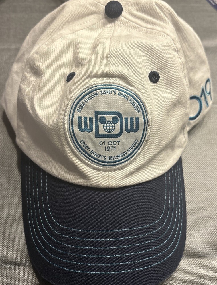 Add a touch of Disney magic to your wardrobe with this stylish white baseball cap from the Walt Disney World Parks collection. The cap features an adjustable claspback and is made of comfortable cotton fabric. The front of the cap proudly displays the iconic Walt Disney World logo in blue, celebrating the park's inception on October 1st, 1971. This unisex cap is perfect for any adult Disney fan and is part of the contemporary Disneyana collectibles. It's suitable for any casual occasion or Disney park visit. Made in China, this cap is in excellent used condition and has not been modified. Get yours now and show your love for the one and only Walt Disney World!