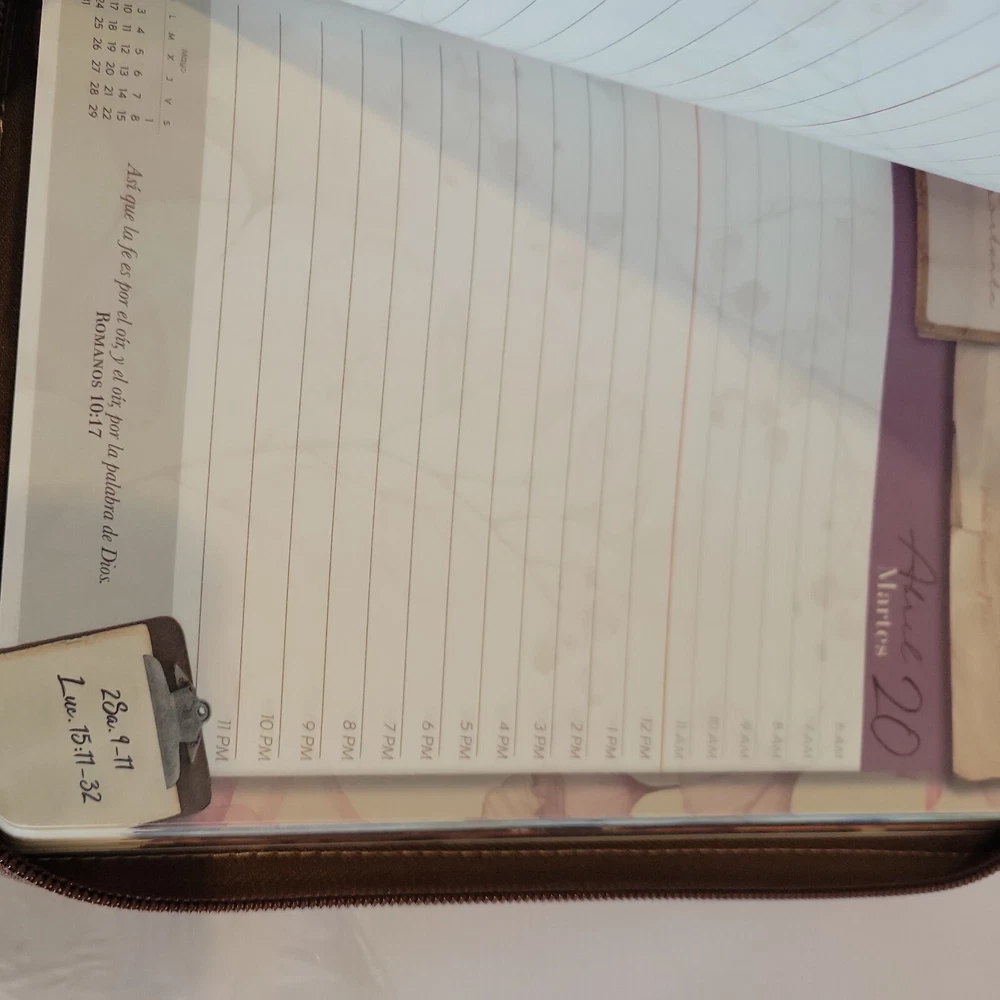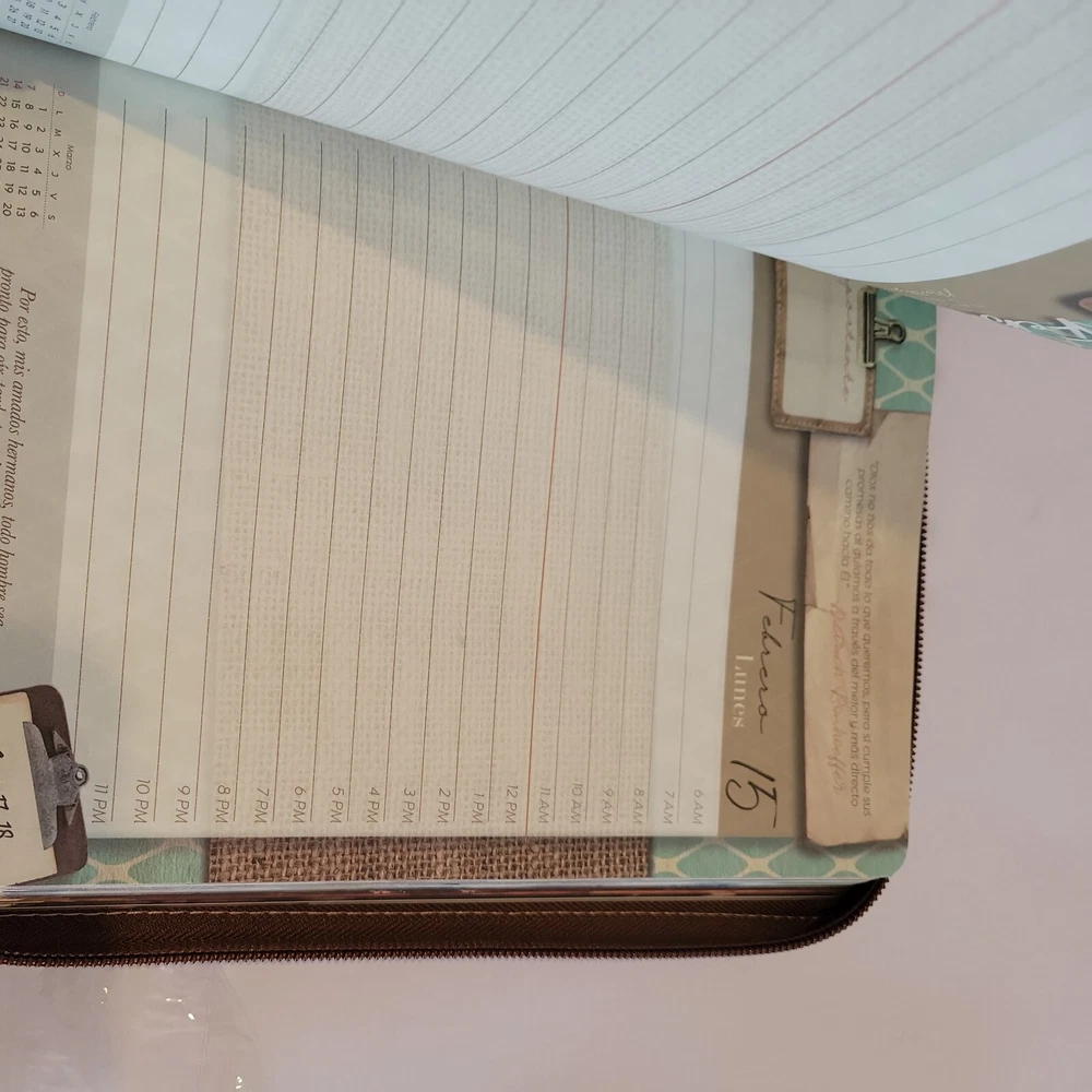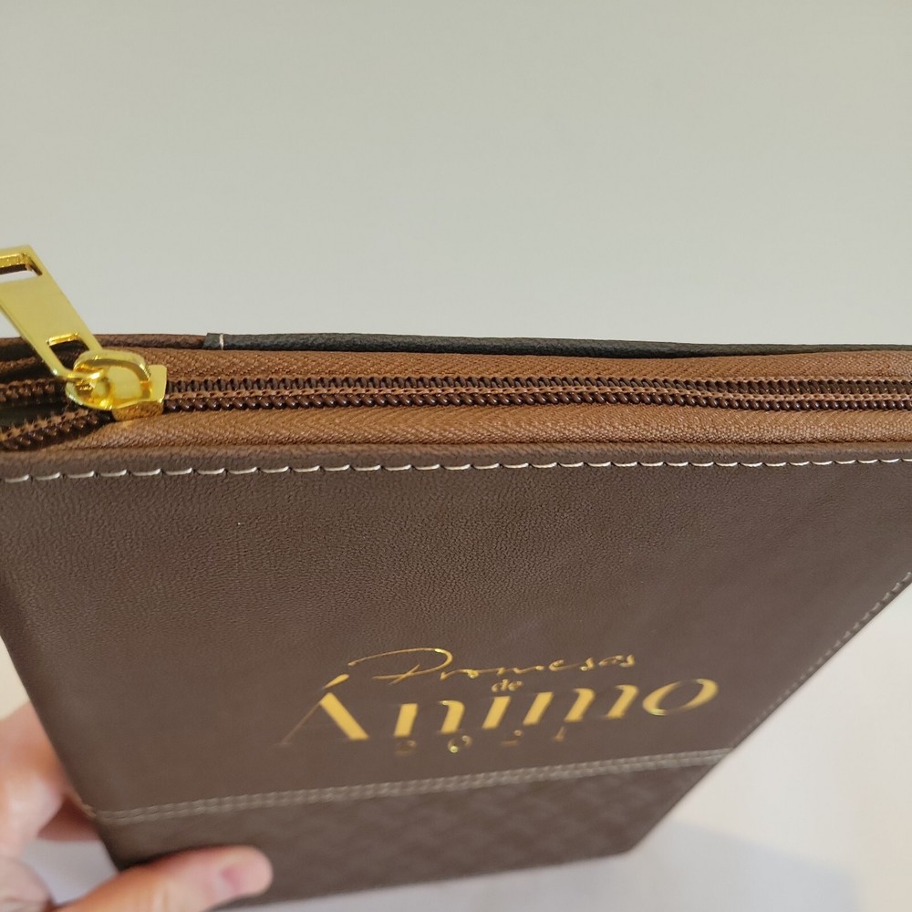 2021 ABBA Christian's Planner,Organizer,Notebook in Spanish Language in Leather Cover and Zipper.COLOR is Brown ( marron) with GREY. PROMESAS de ANIMO" Condition is "New".I have some is taped in plastic never opened ,and have no taped .,but all is new.Have in my page another colors. Shipped with USPS Media mail.