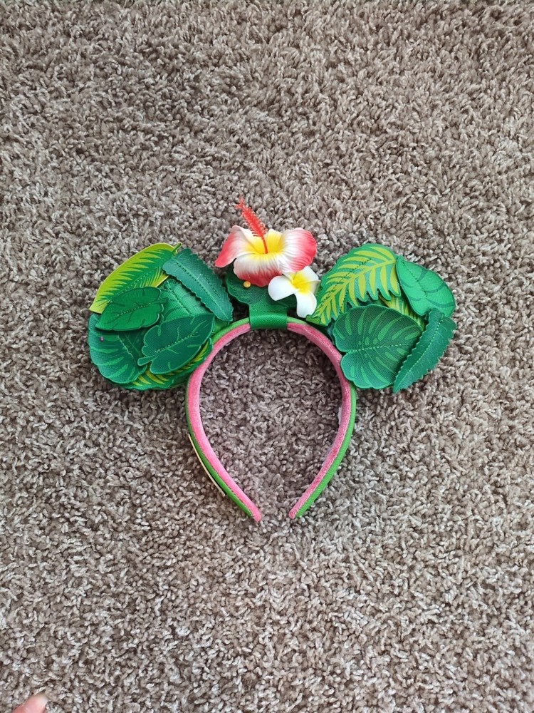 These Disney ears are a must-have for any fan! The tropical design is vibrant and fun, perfect for adding a little magic to your outfit. Lightweight and comfy, they stay put all day. Even though they're pre-loved, they still look great—no major wear at all. A fantastic find for Disney collectors or park-goers!